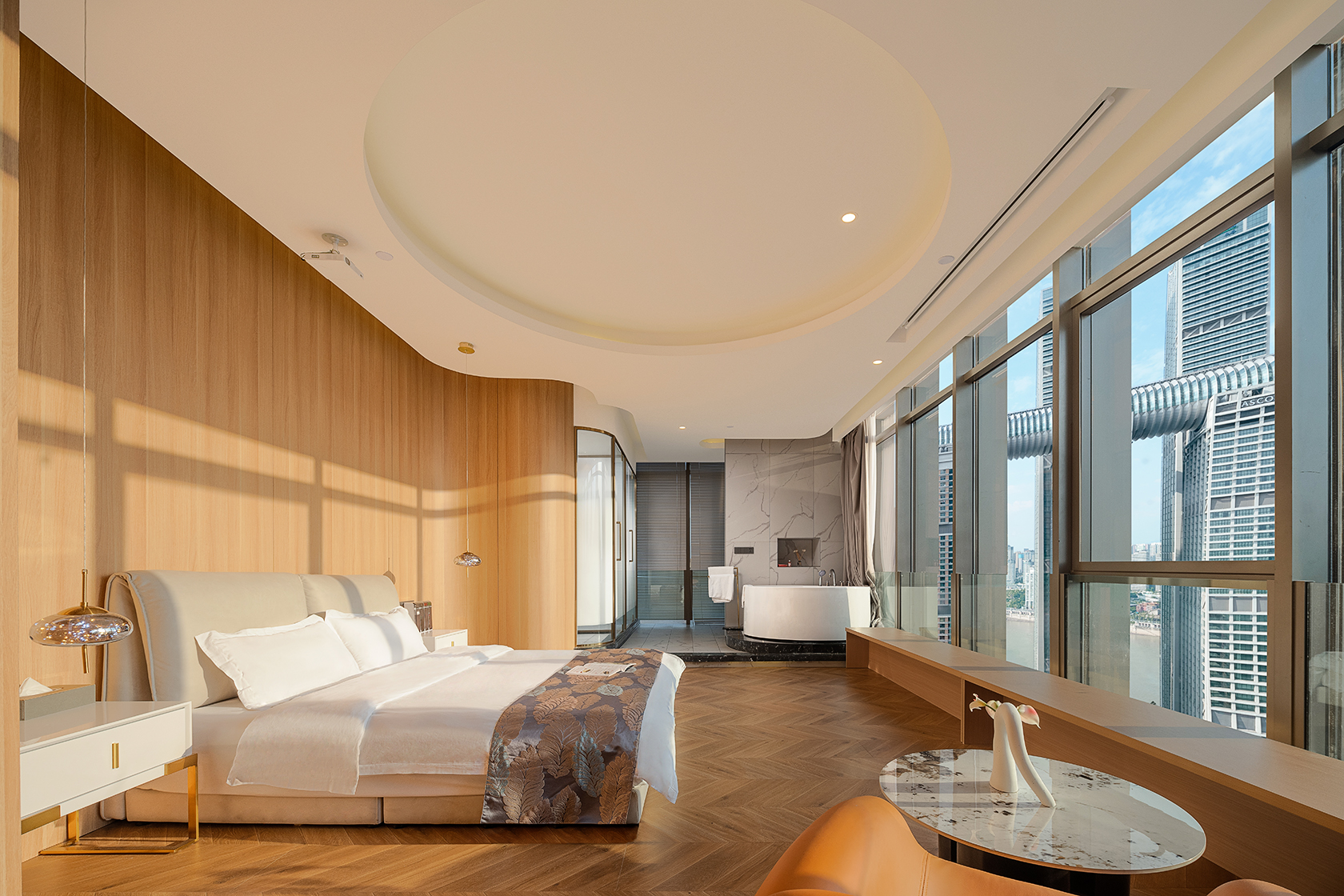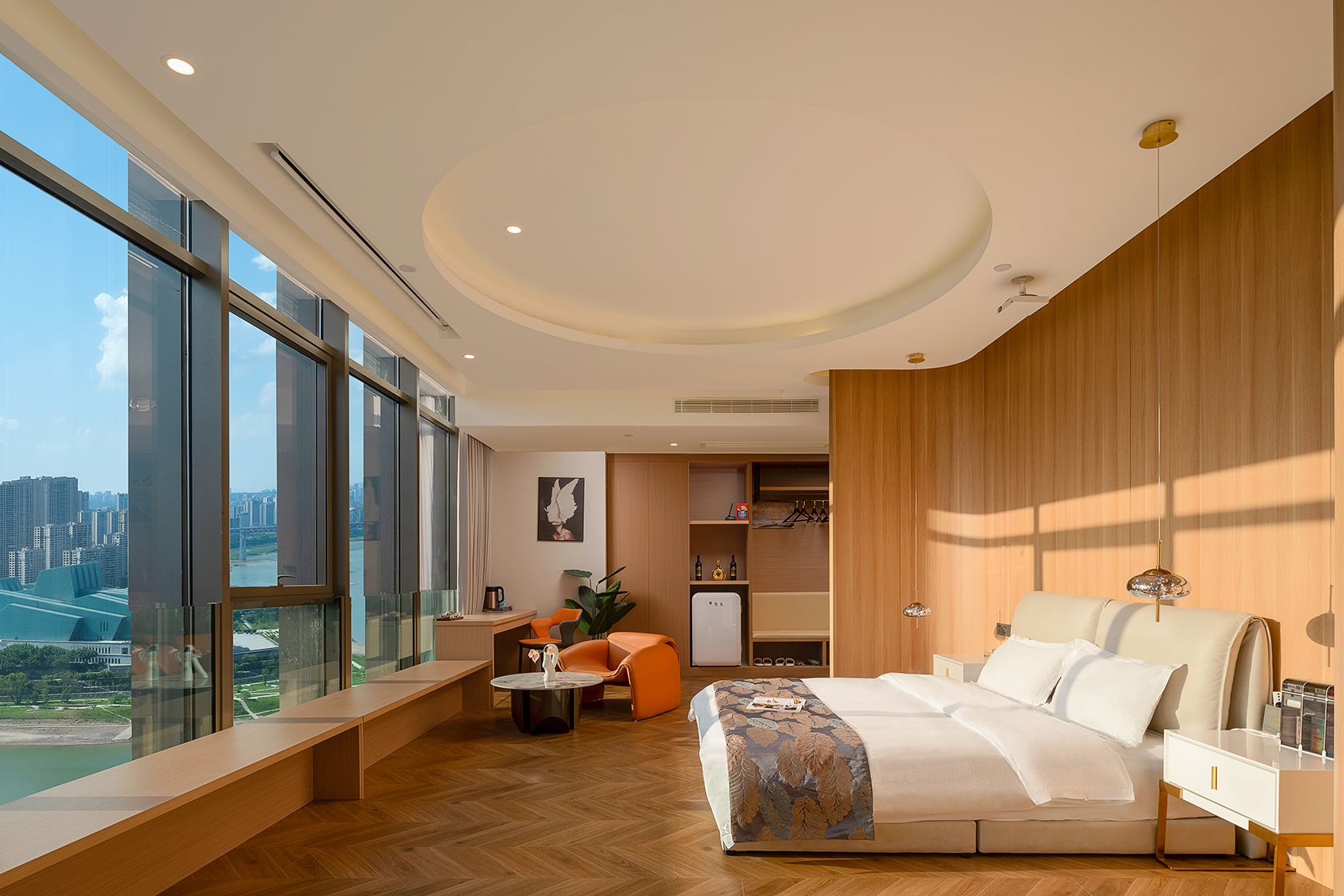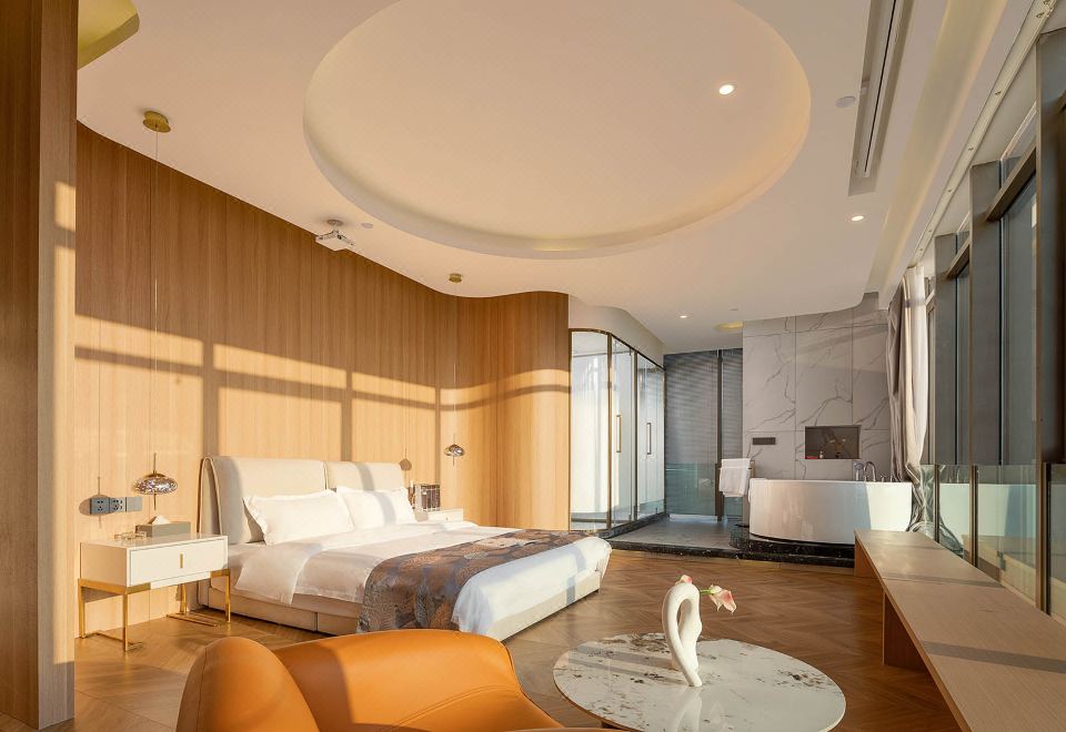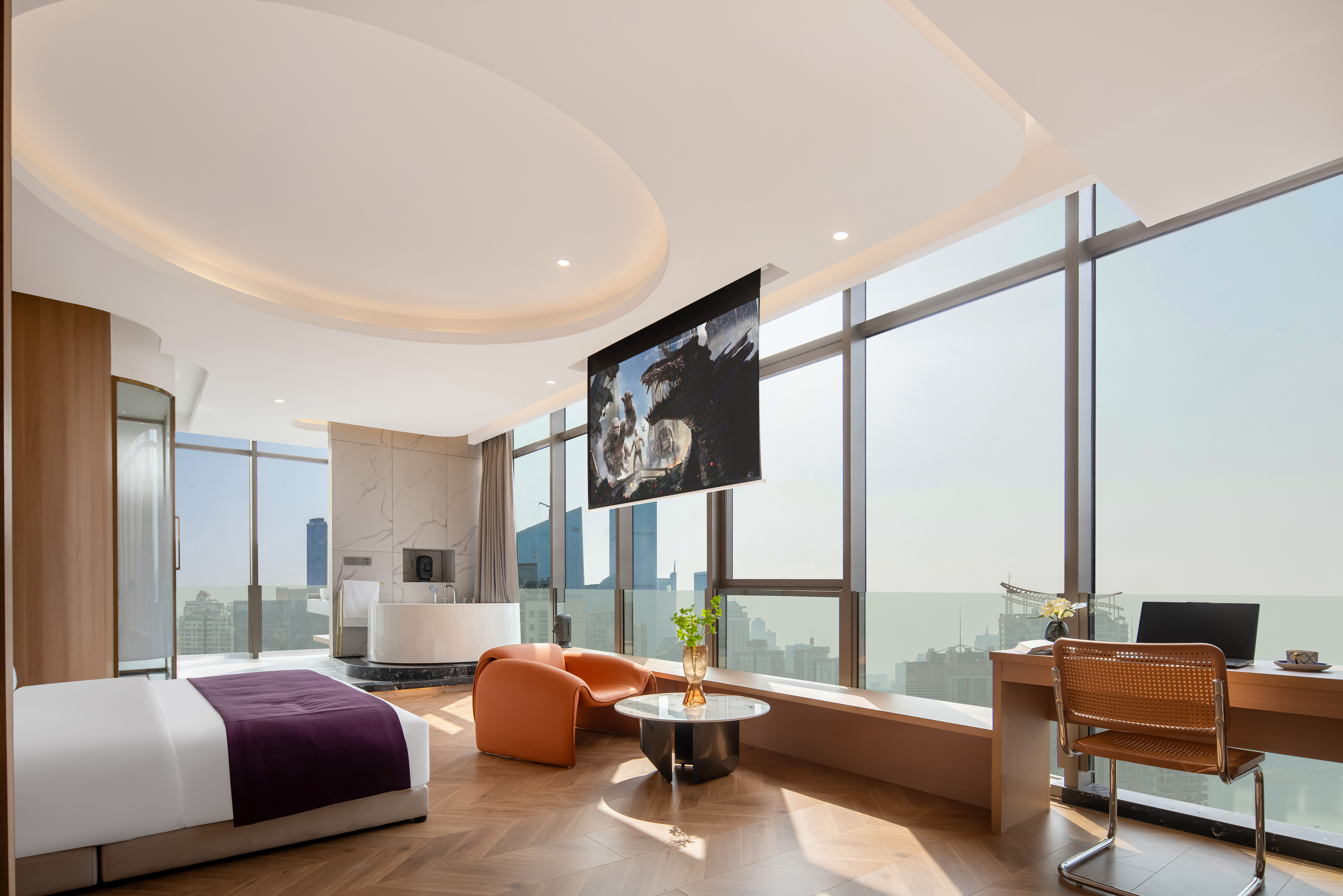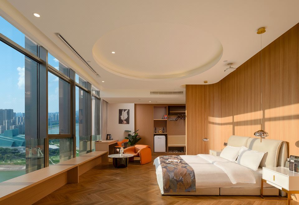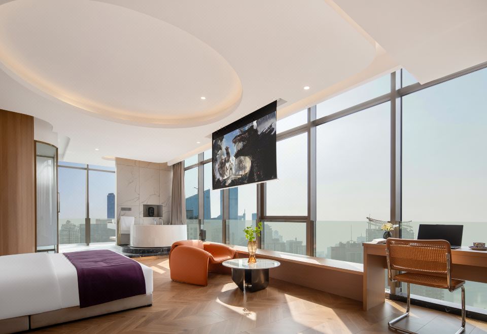 270°全景落日余辉江景双人浴缸大床房【超大影幕+全落地大窗+一线江景】