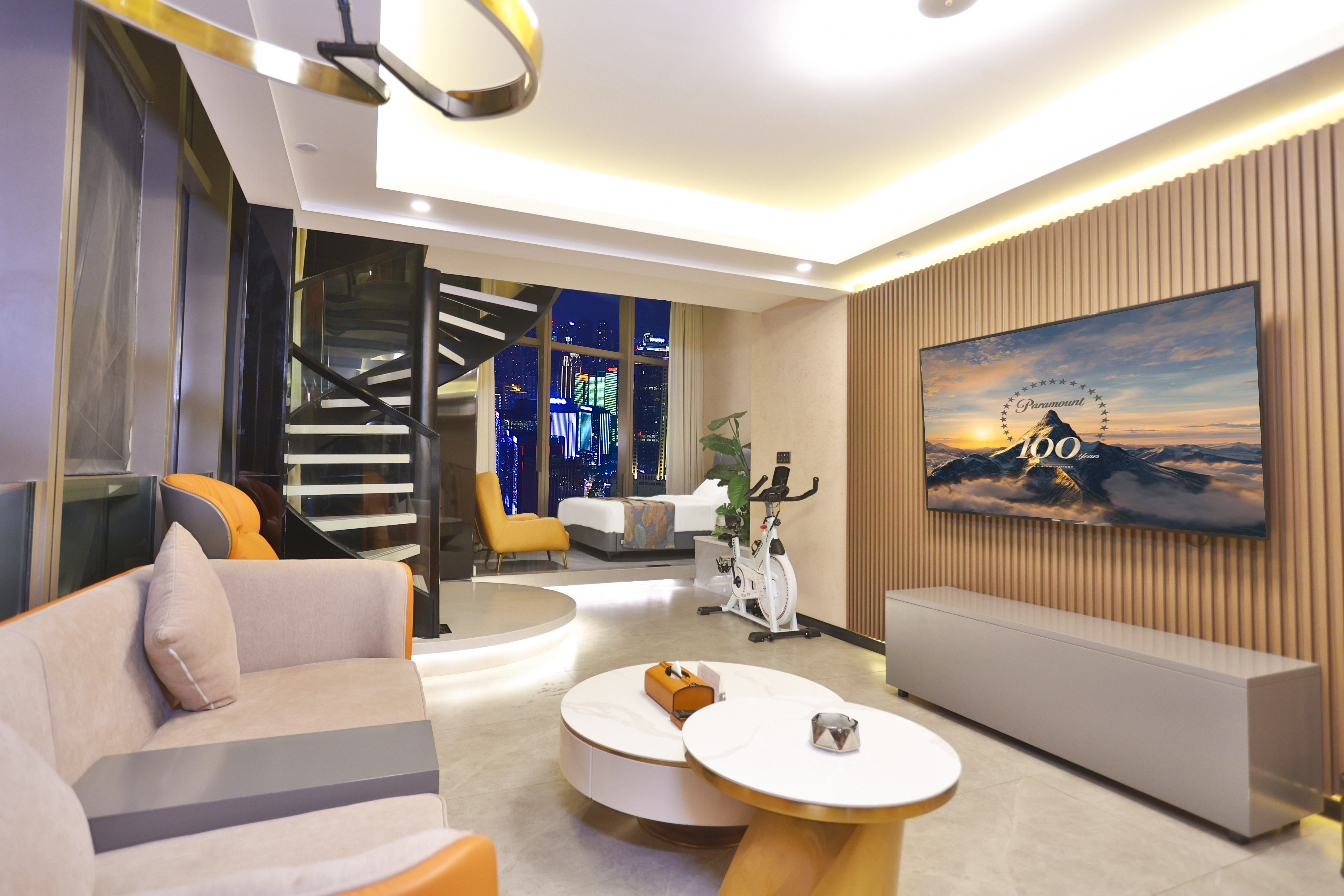 韻山·LOFT精緻雙卧套房(獨立雙卧+城市夜景+江景+冰箱)