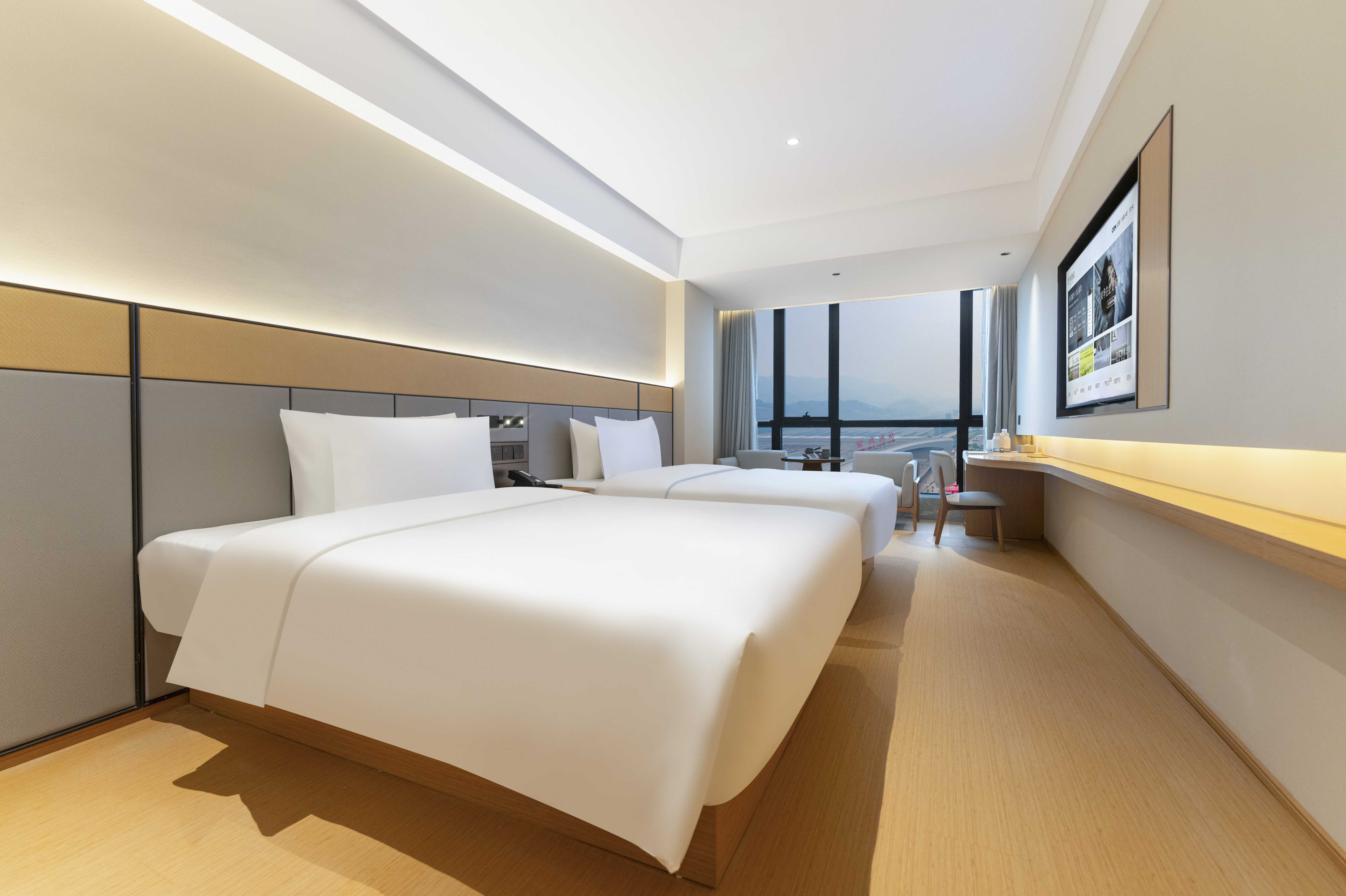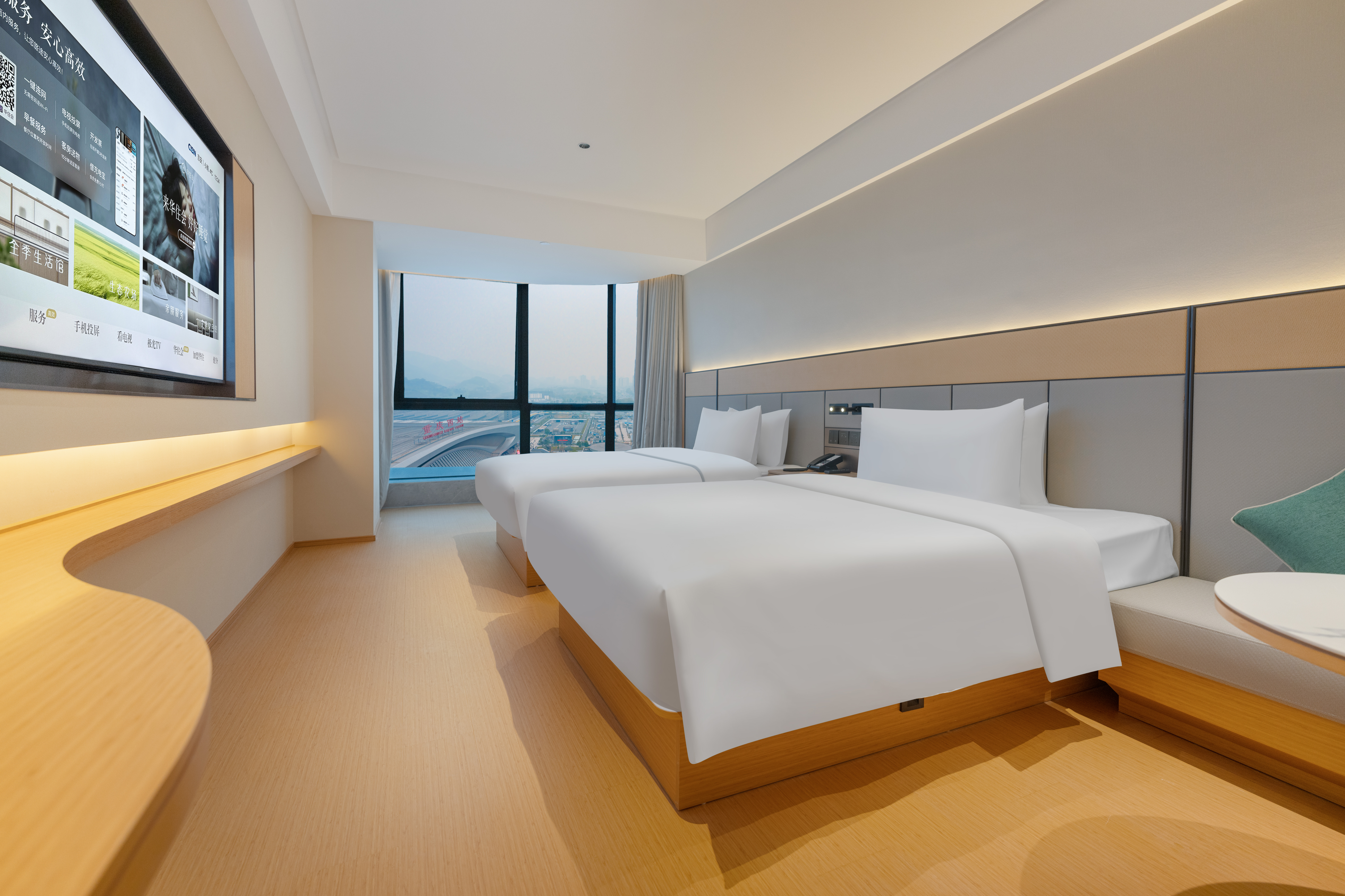 高級雙床房(小冰箱+落地窗+65寸電視投屏)