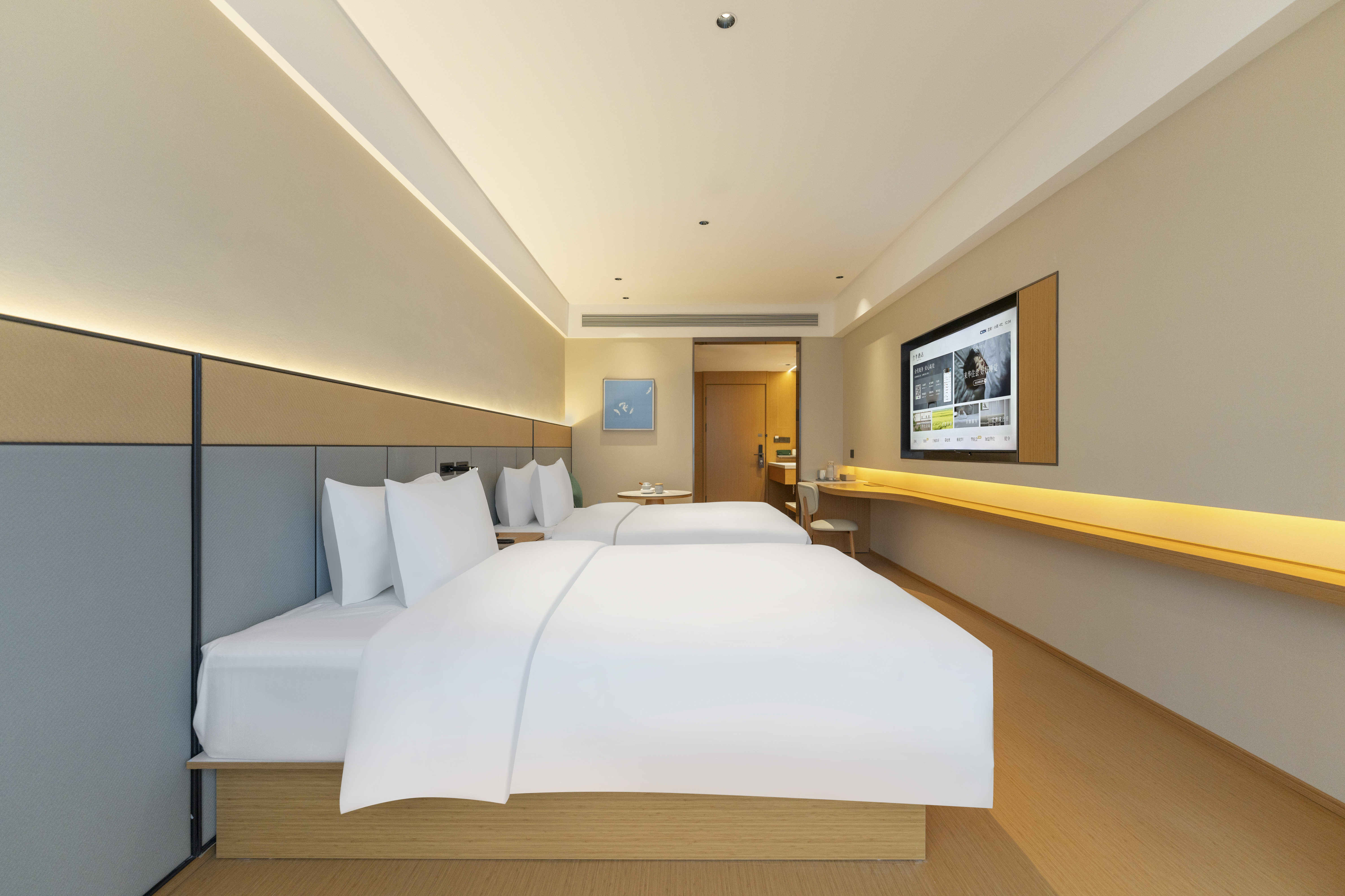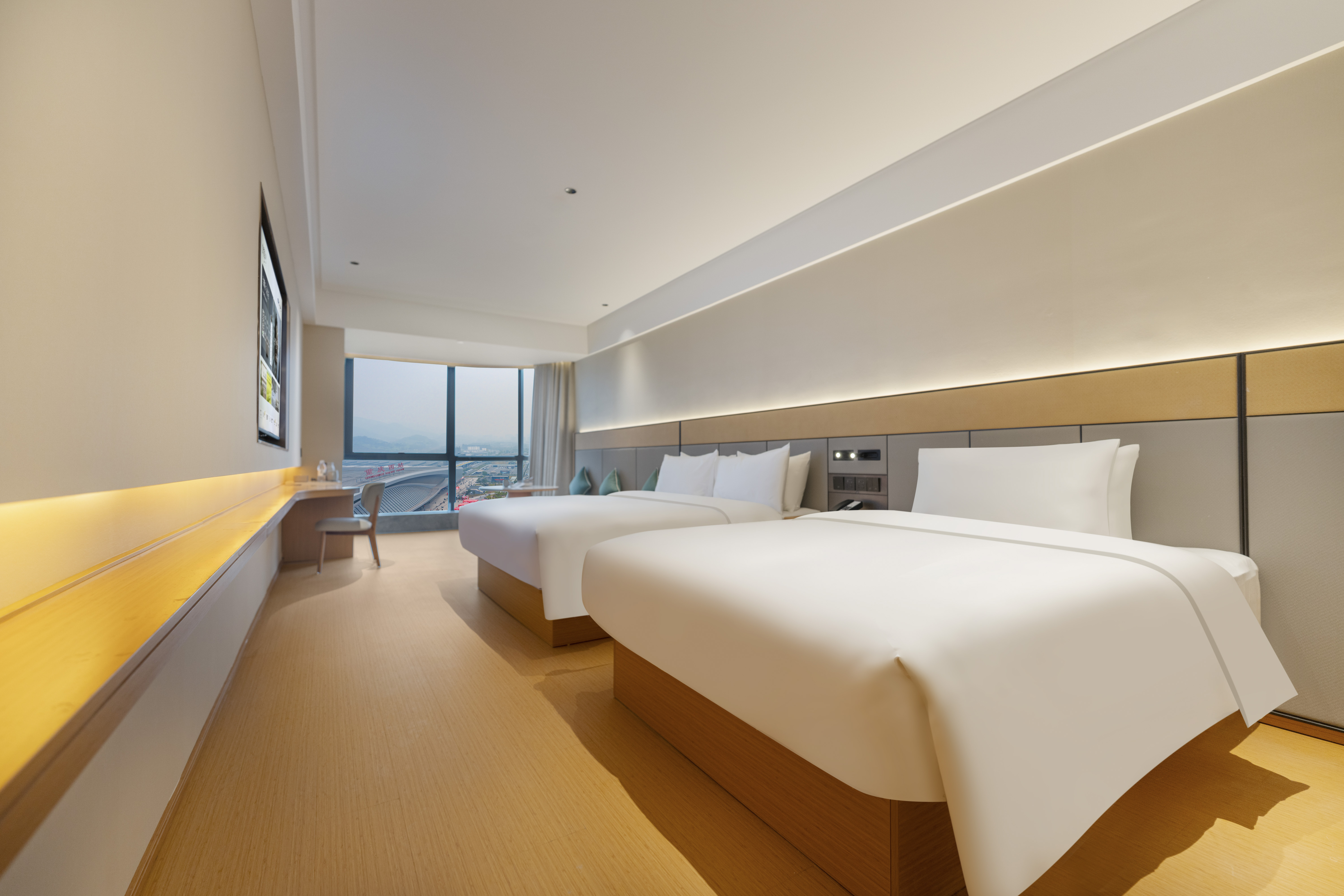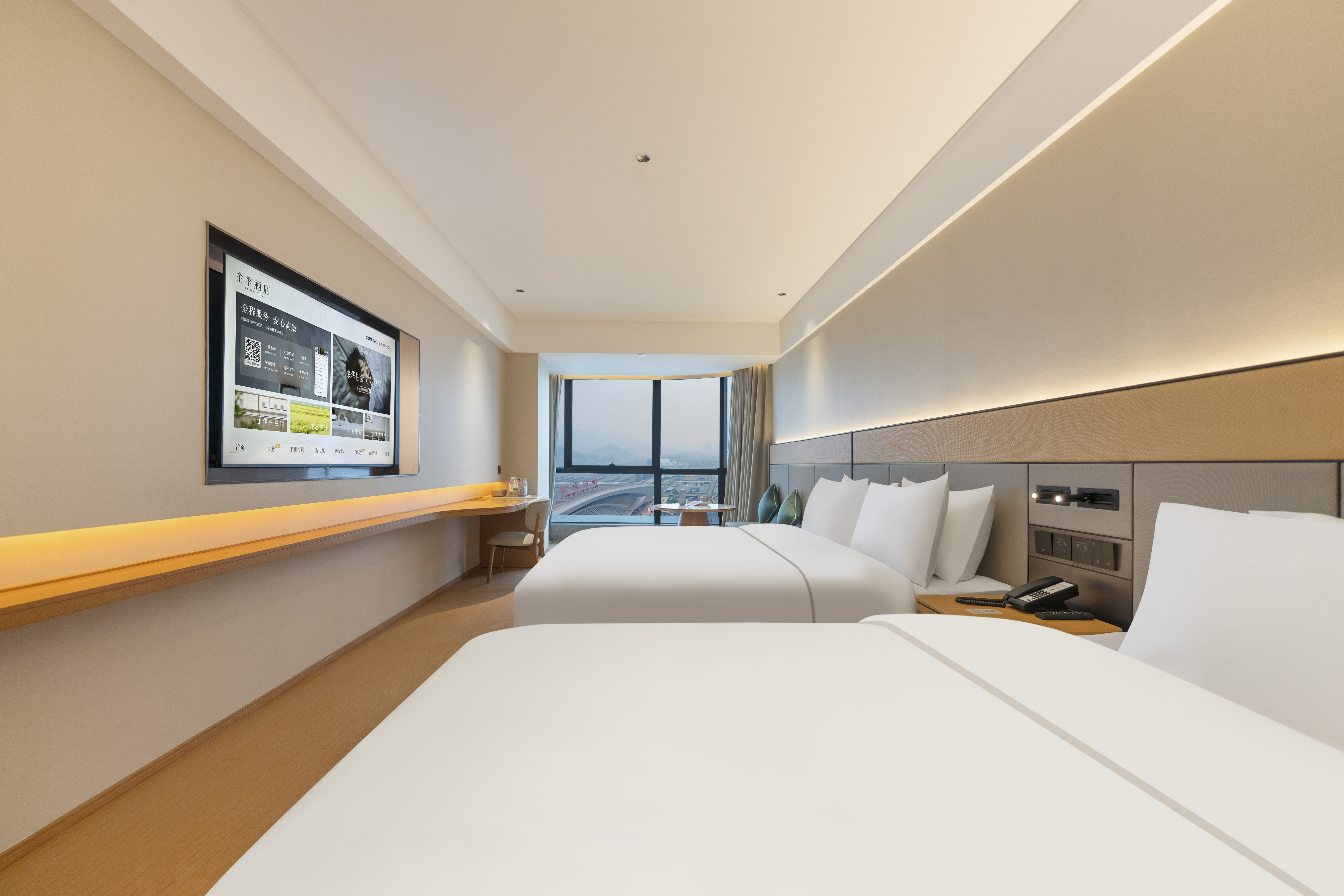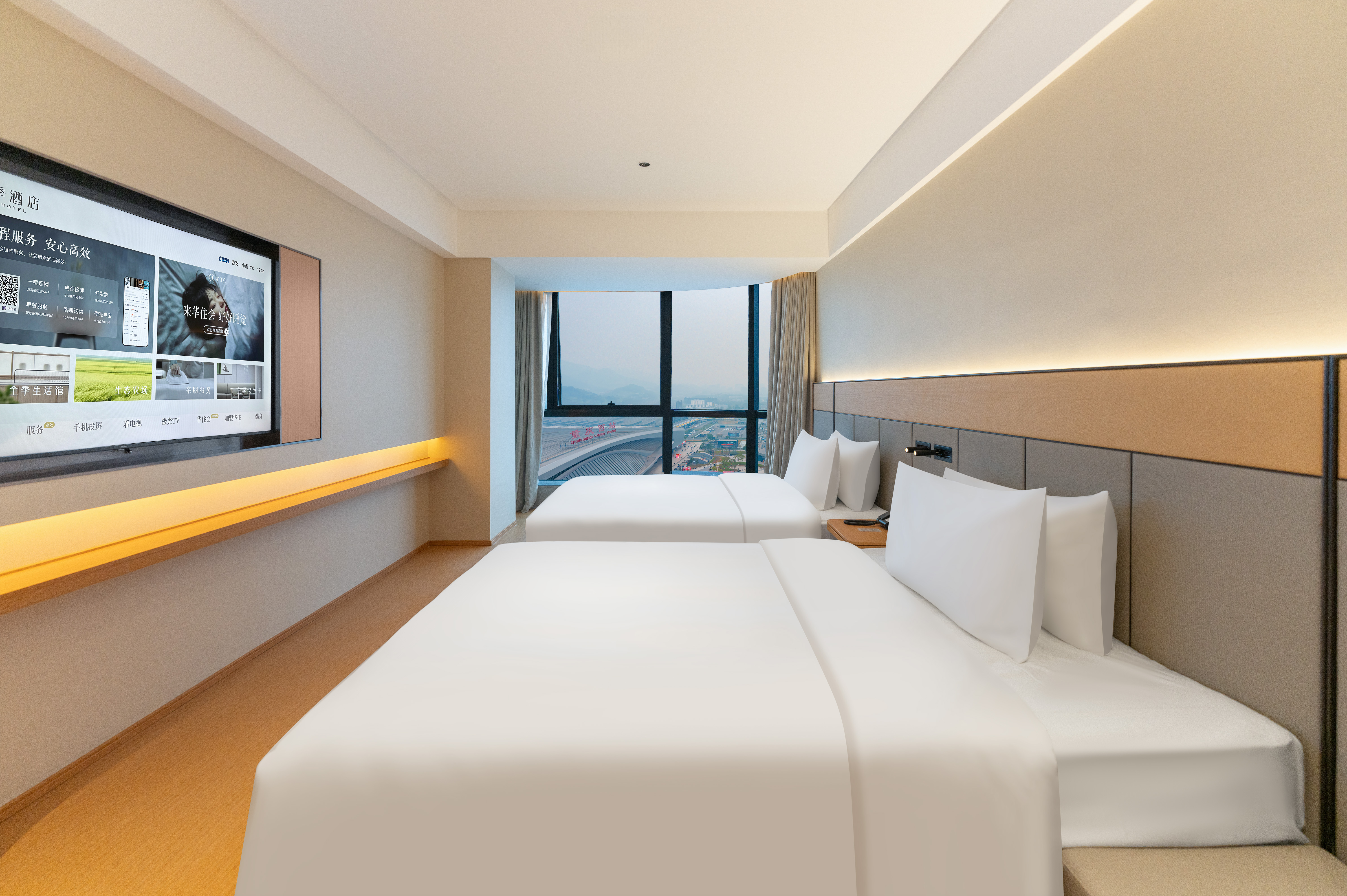商務雙床房(小冰箱+落地窗+65寸電視投屏)