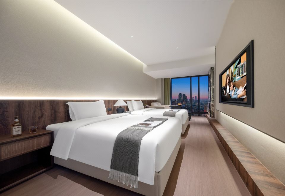 豪华双床房(高空落地景观+深睡床品+商务办公+品茶)