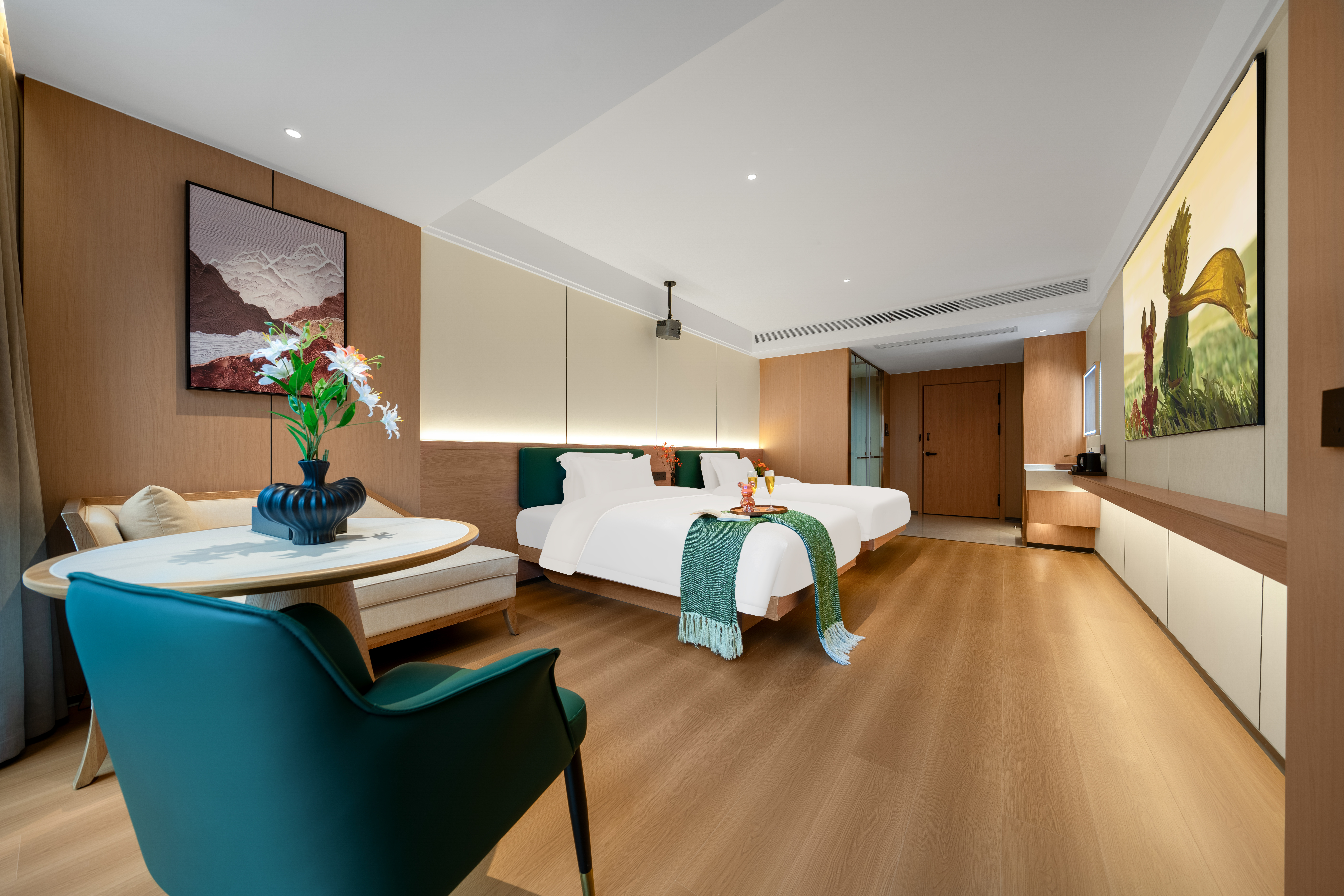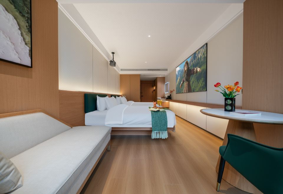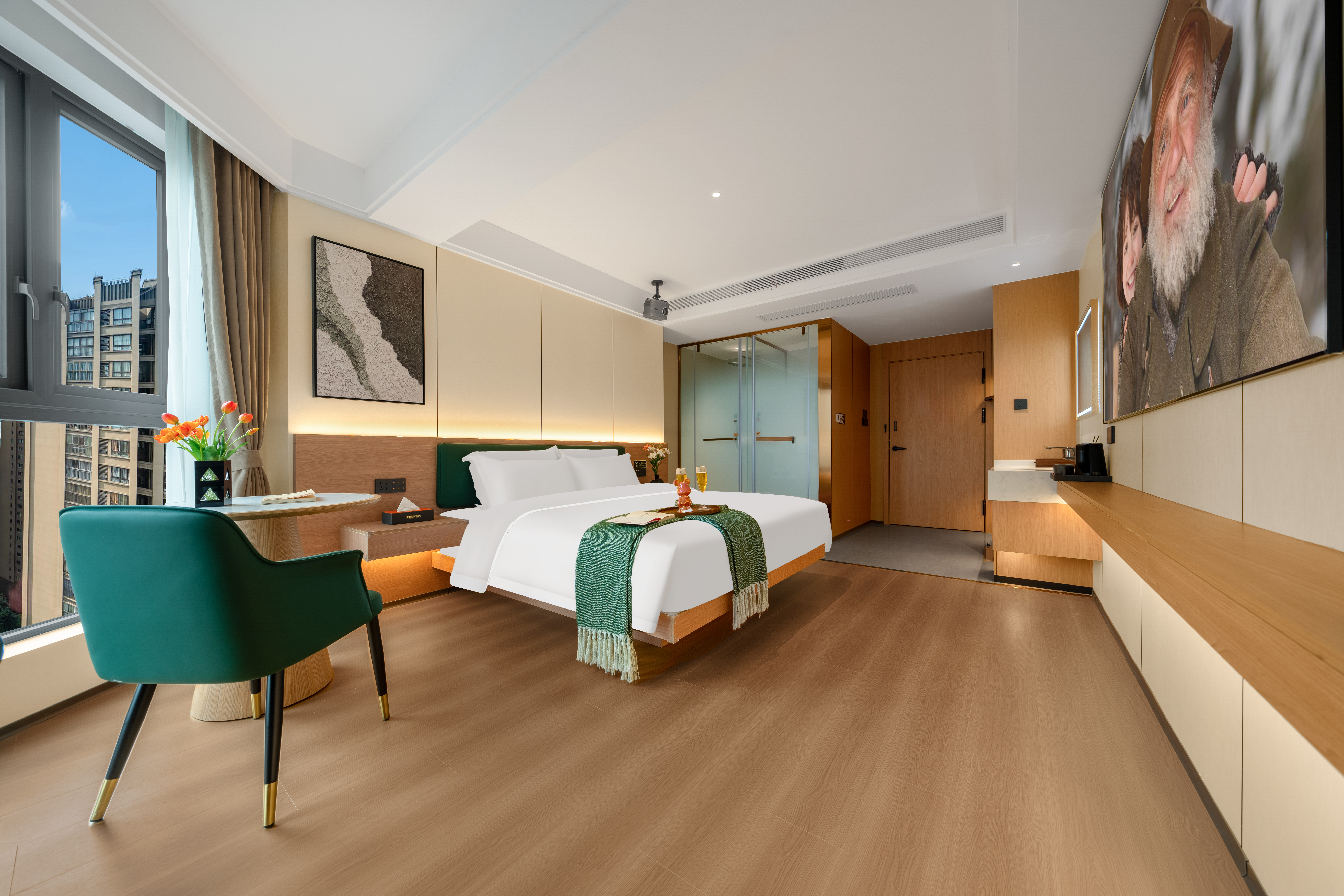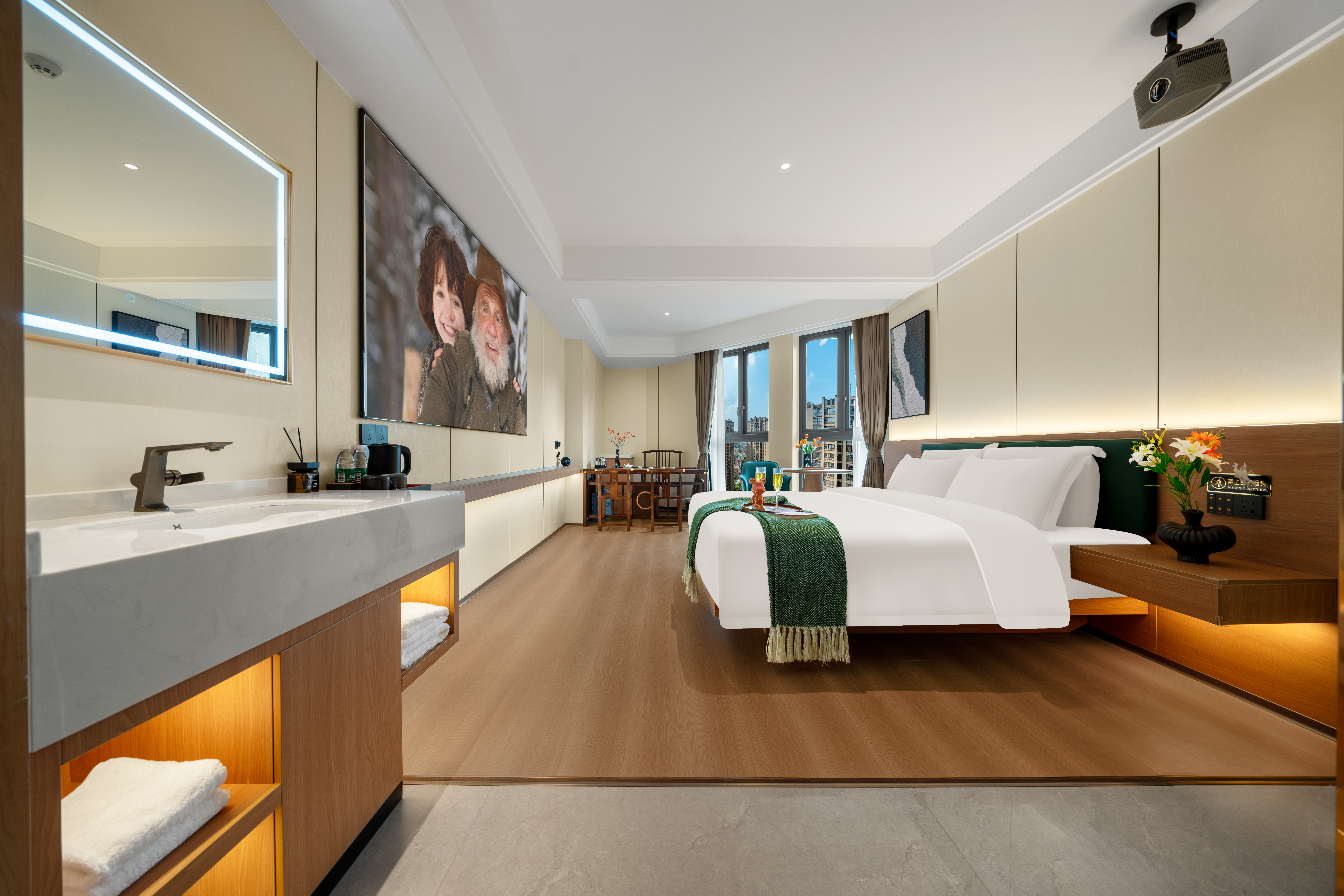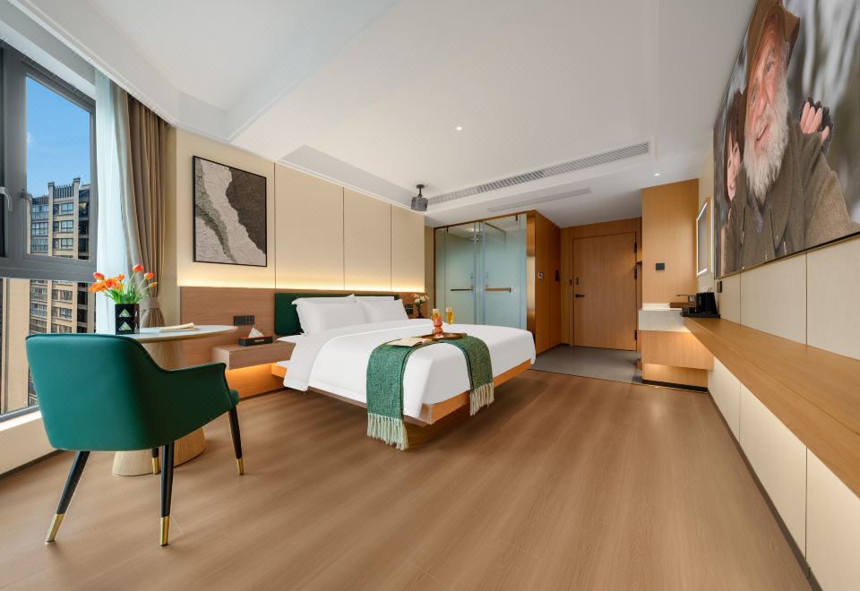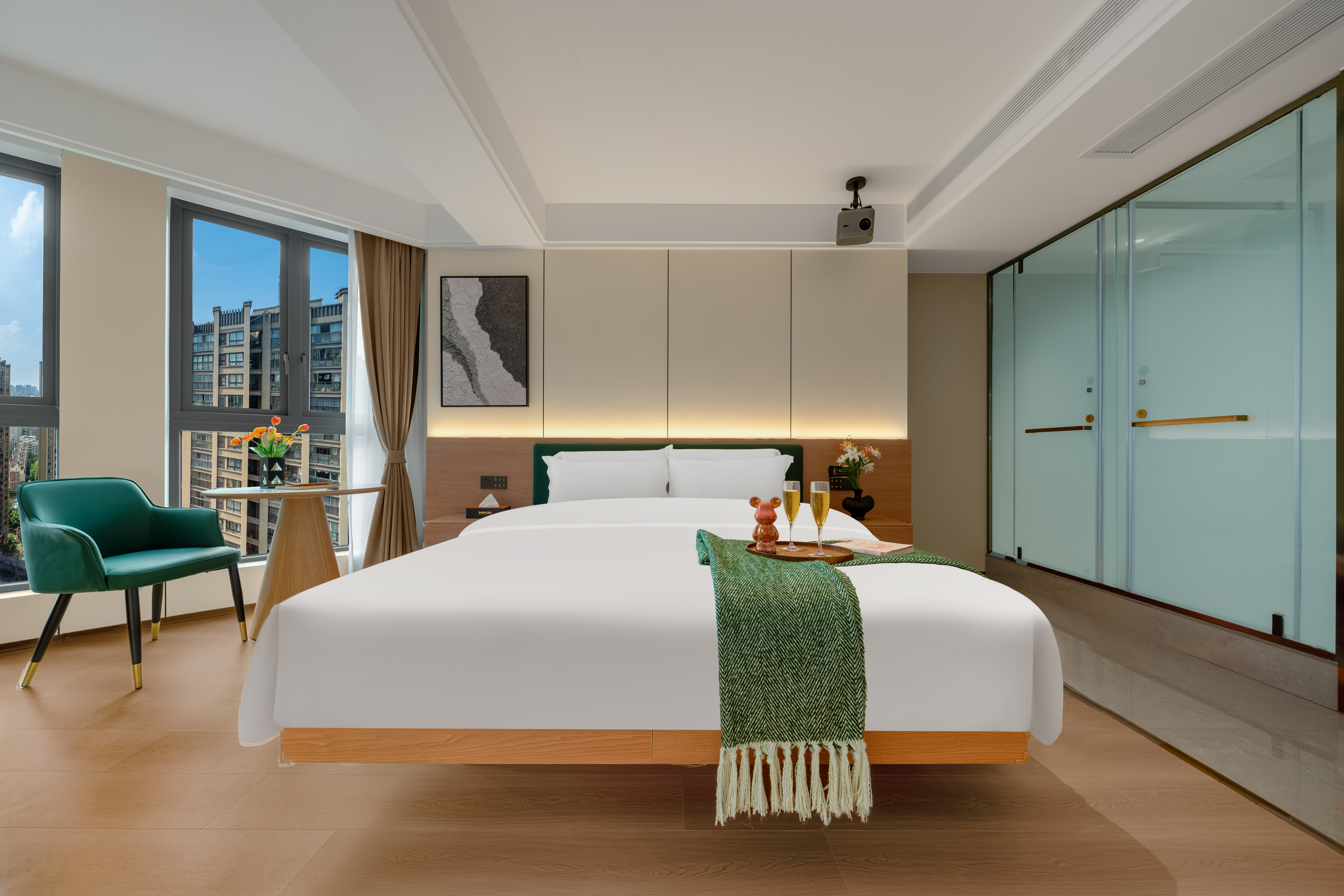 禪意輕奢智能大床房(高空城景+中式茶台+全屋智能)