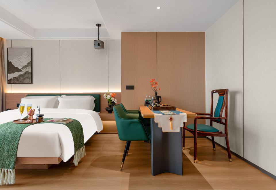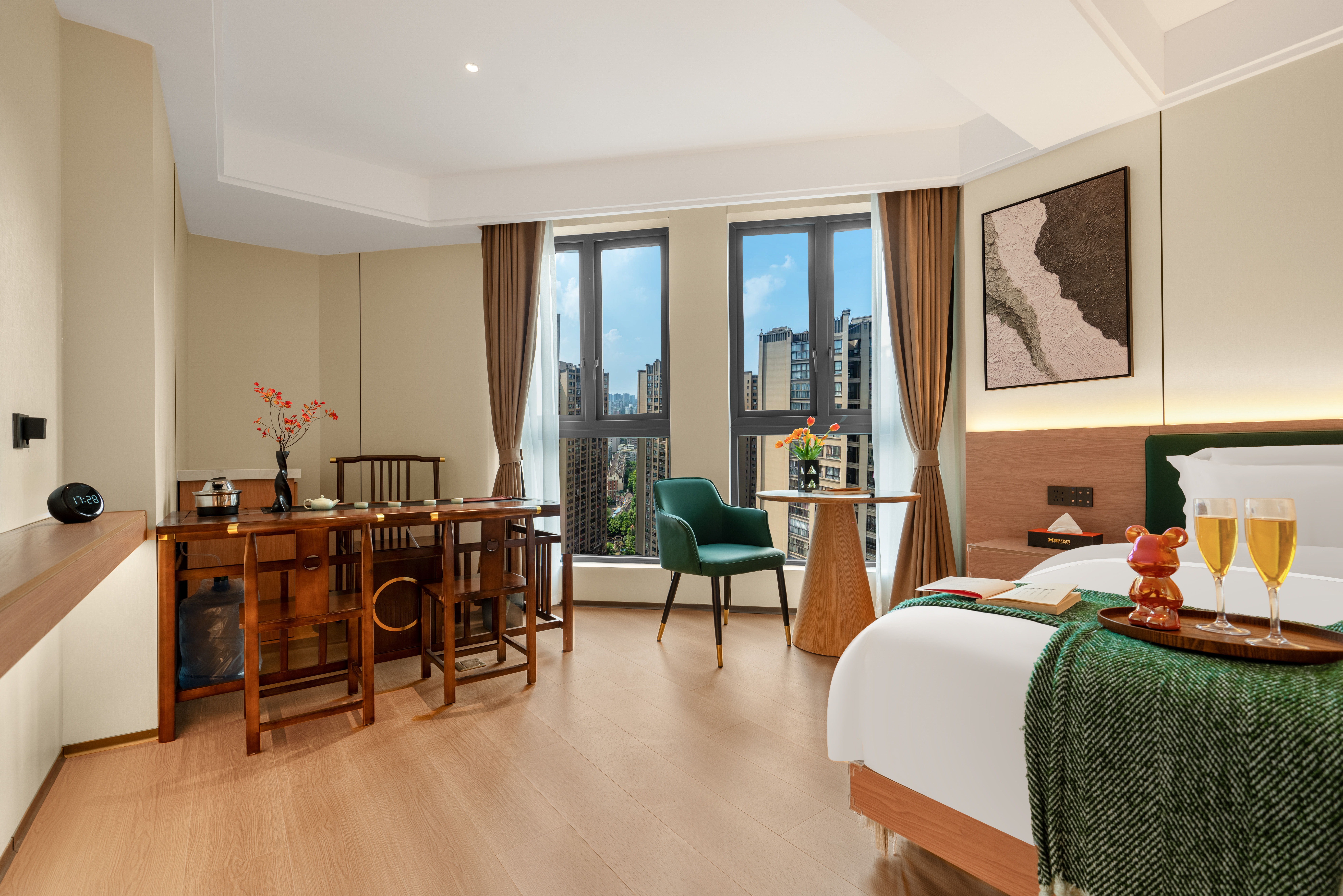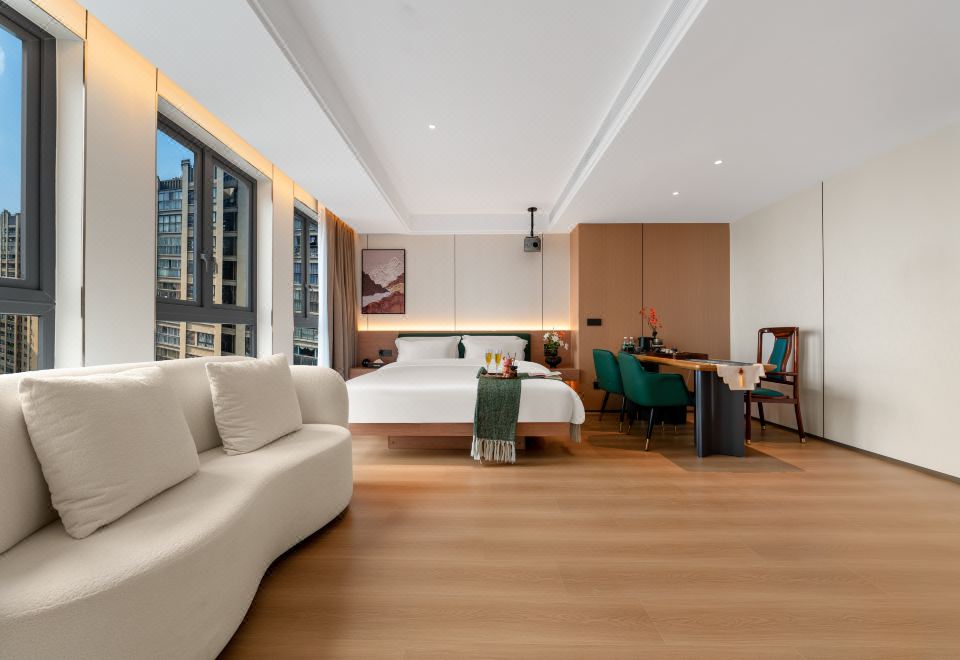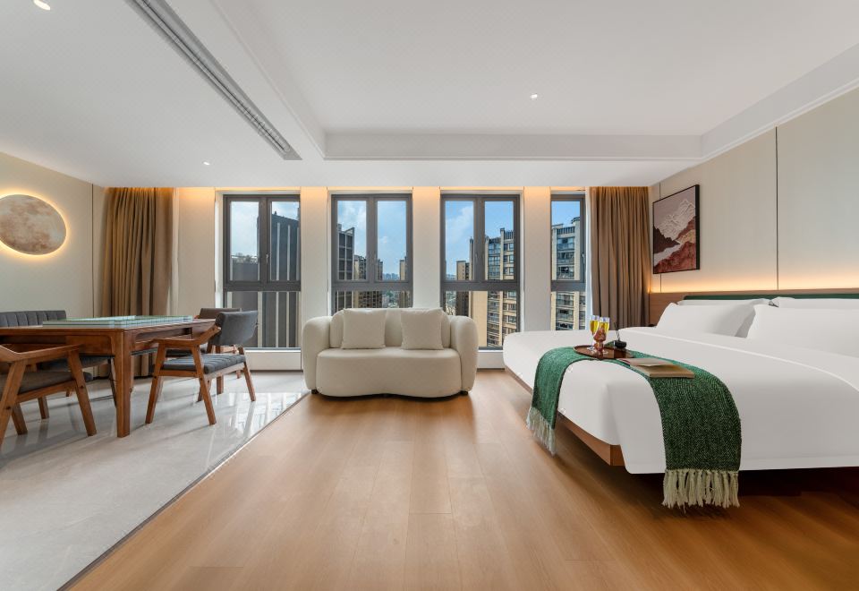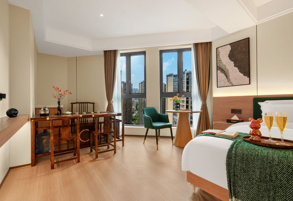 禪意輕奢智能大床房(高空城景+中式茶台+全屋智能)