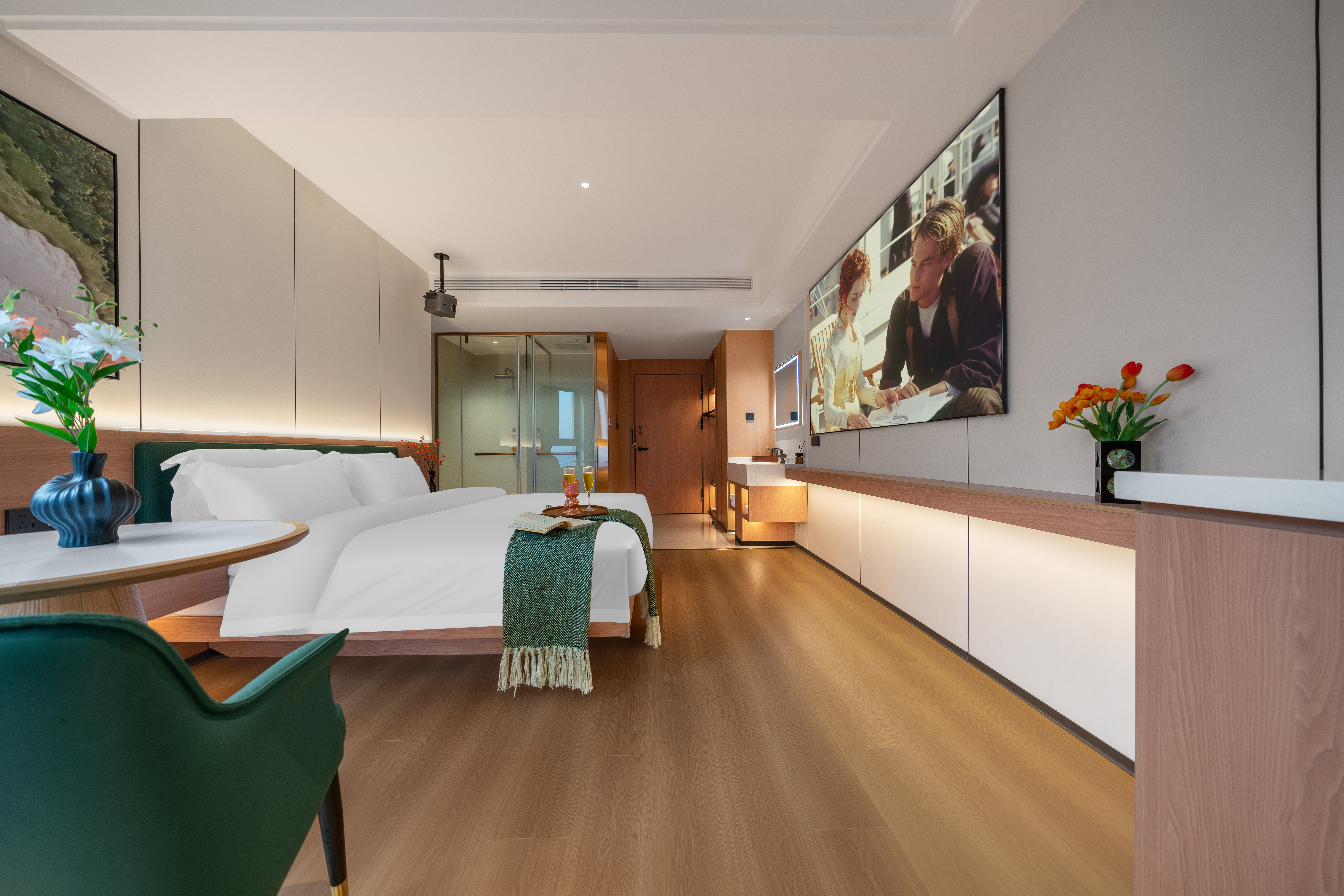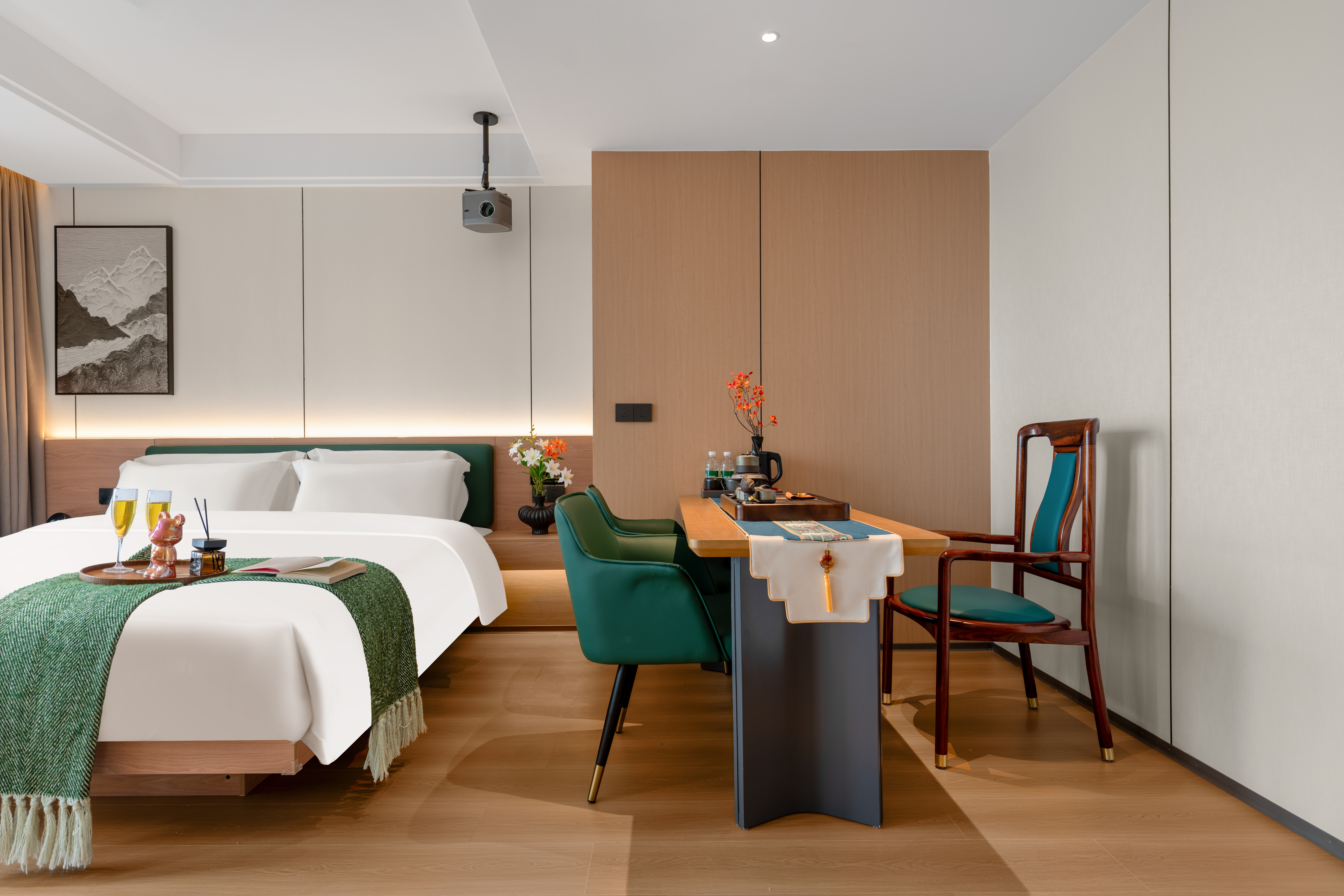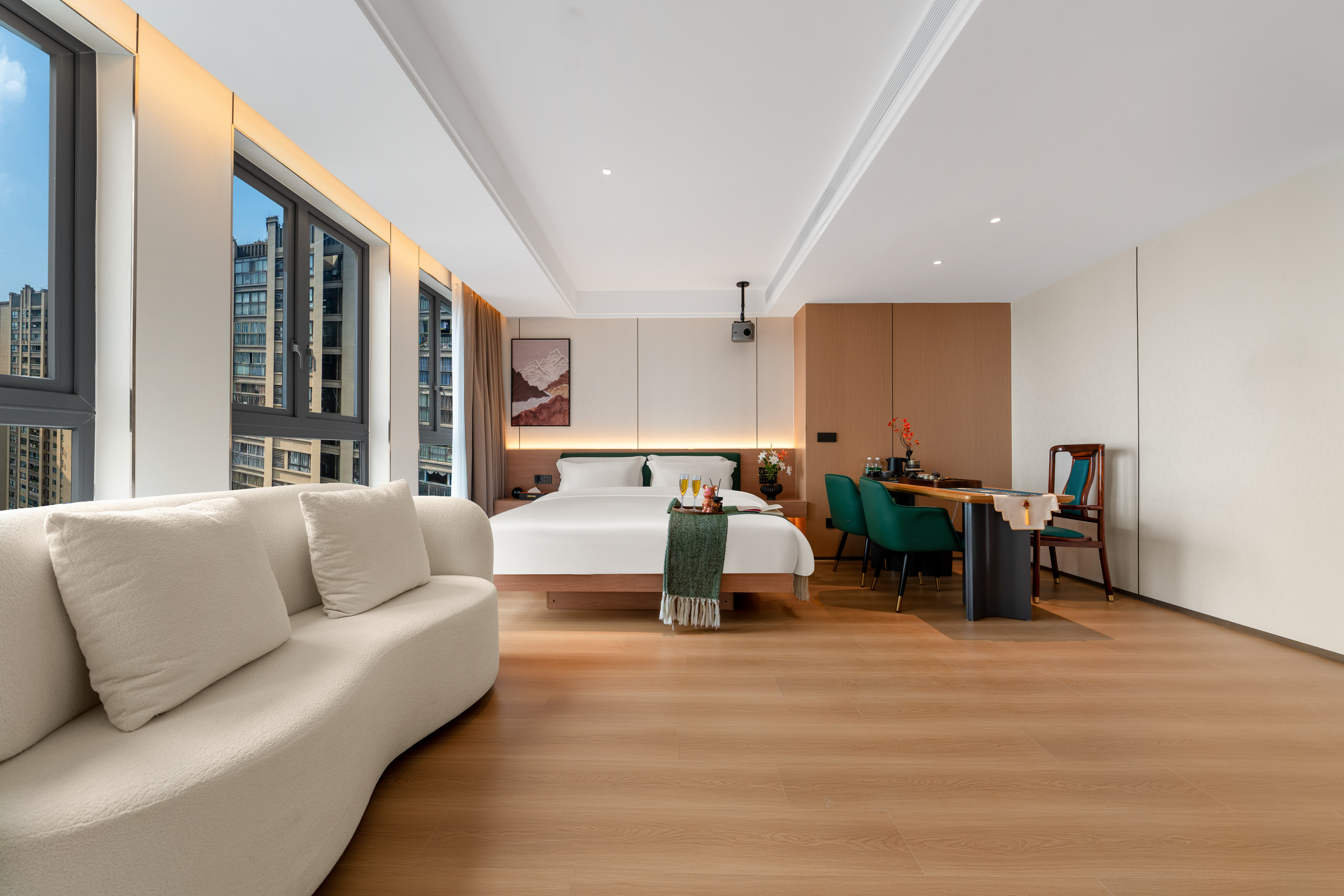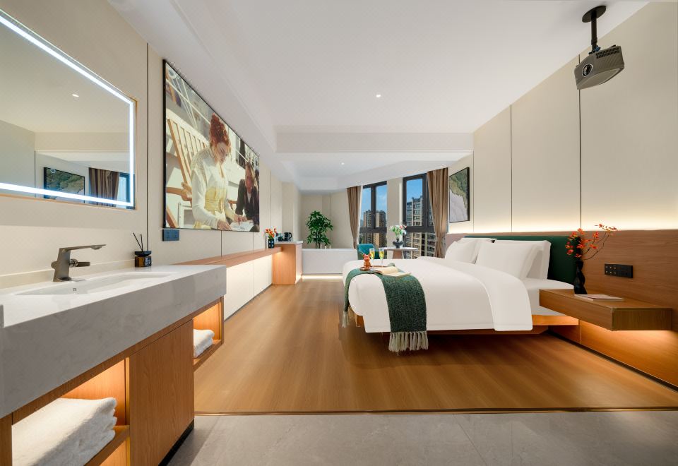 禪意輕奢智能大床房(高空城景+中式茶台+全屋智能)