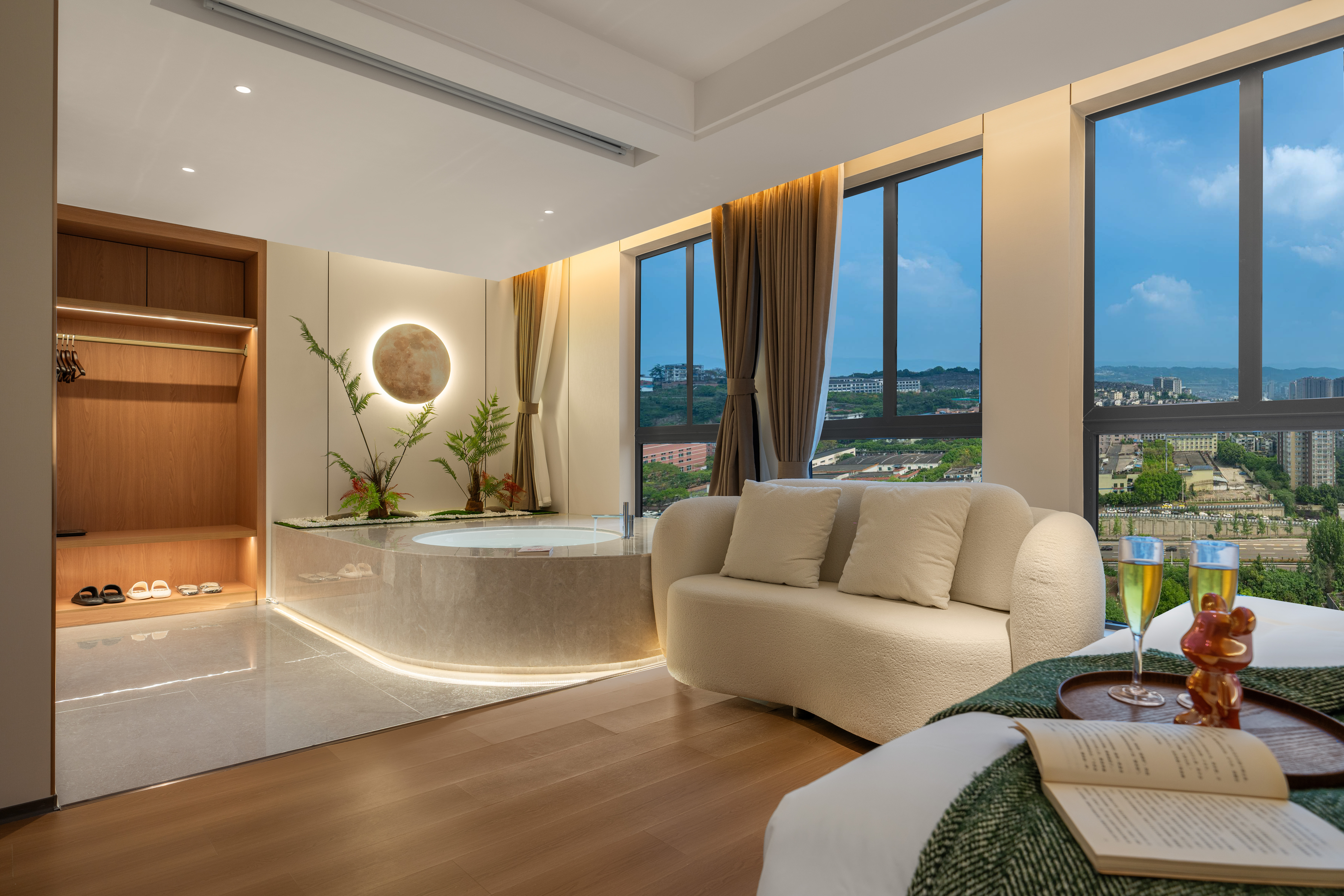 高空輕奢智能浴缸房(高空城景+中式茶室+智能馬桶)