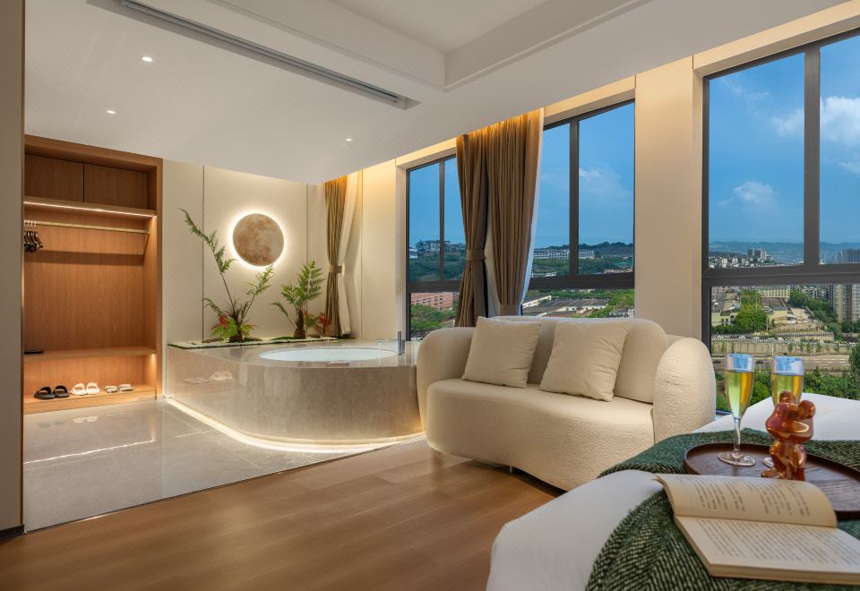 禪意輕奢智能浴缸套房(高空城景+中式茶台+全屋客控)