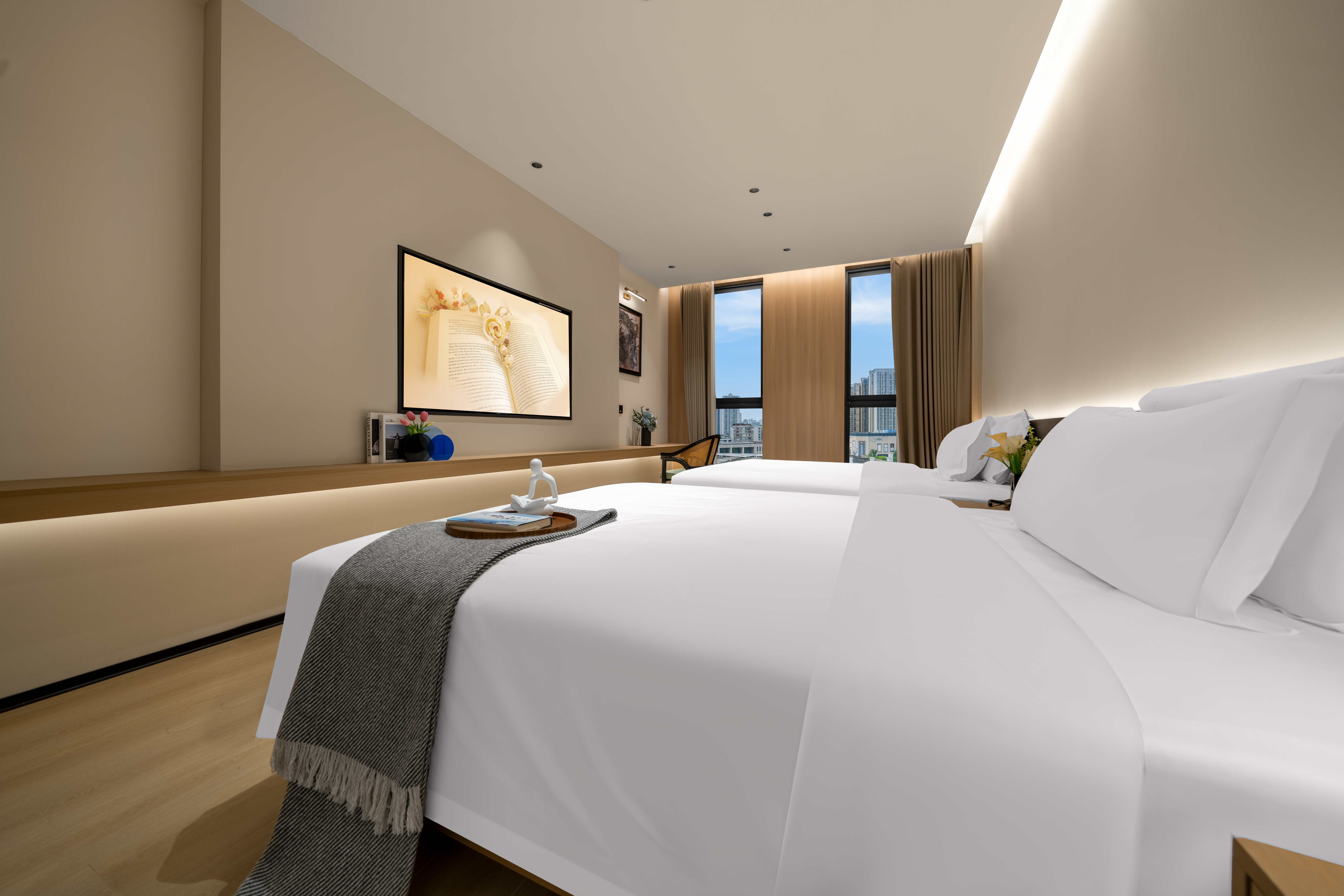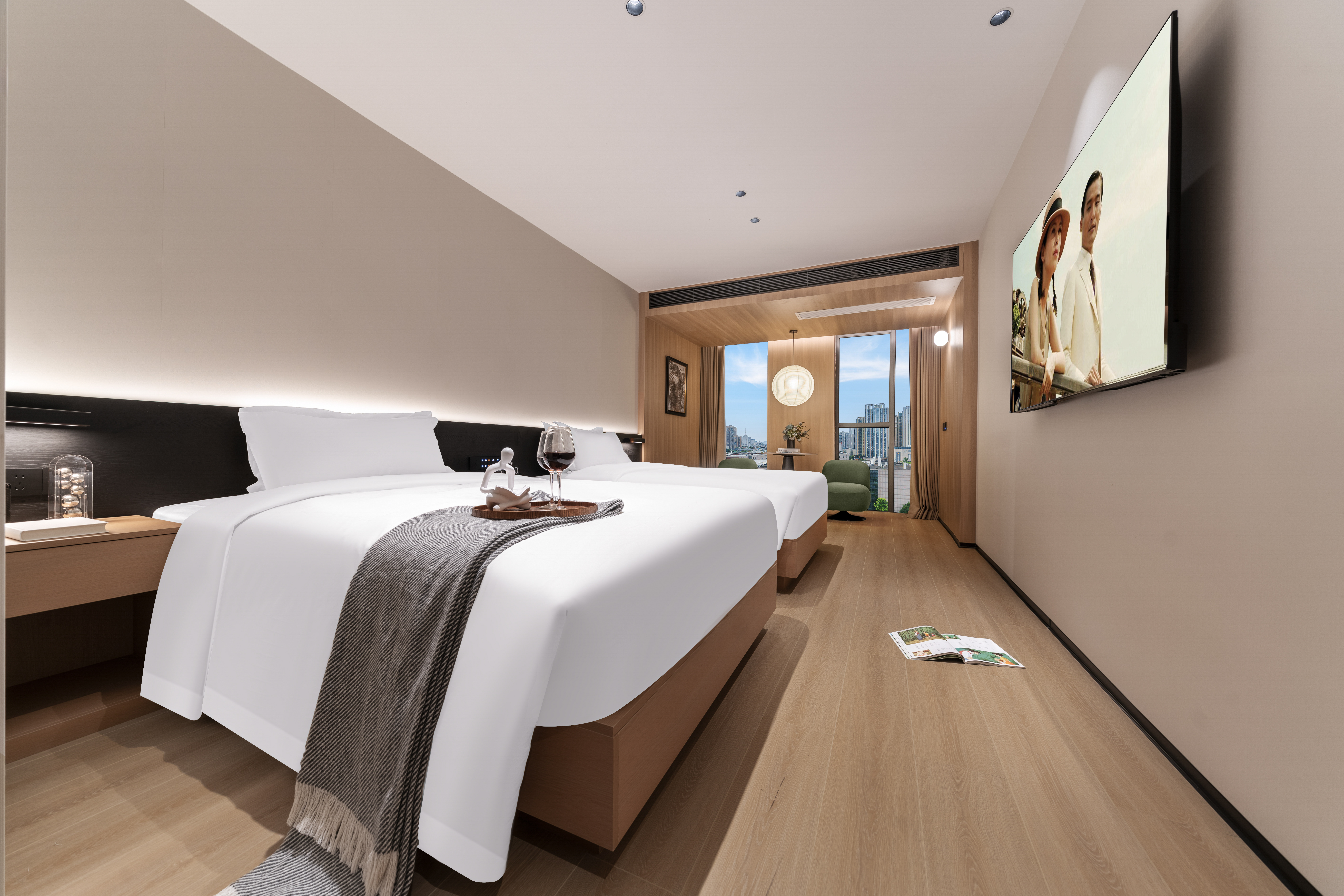 沐光|清雅雙床房·俯瞰觀江(金可兒床墊+旋轉沙發+橋景盡收)