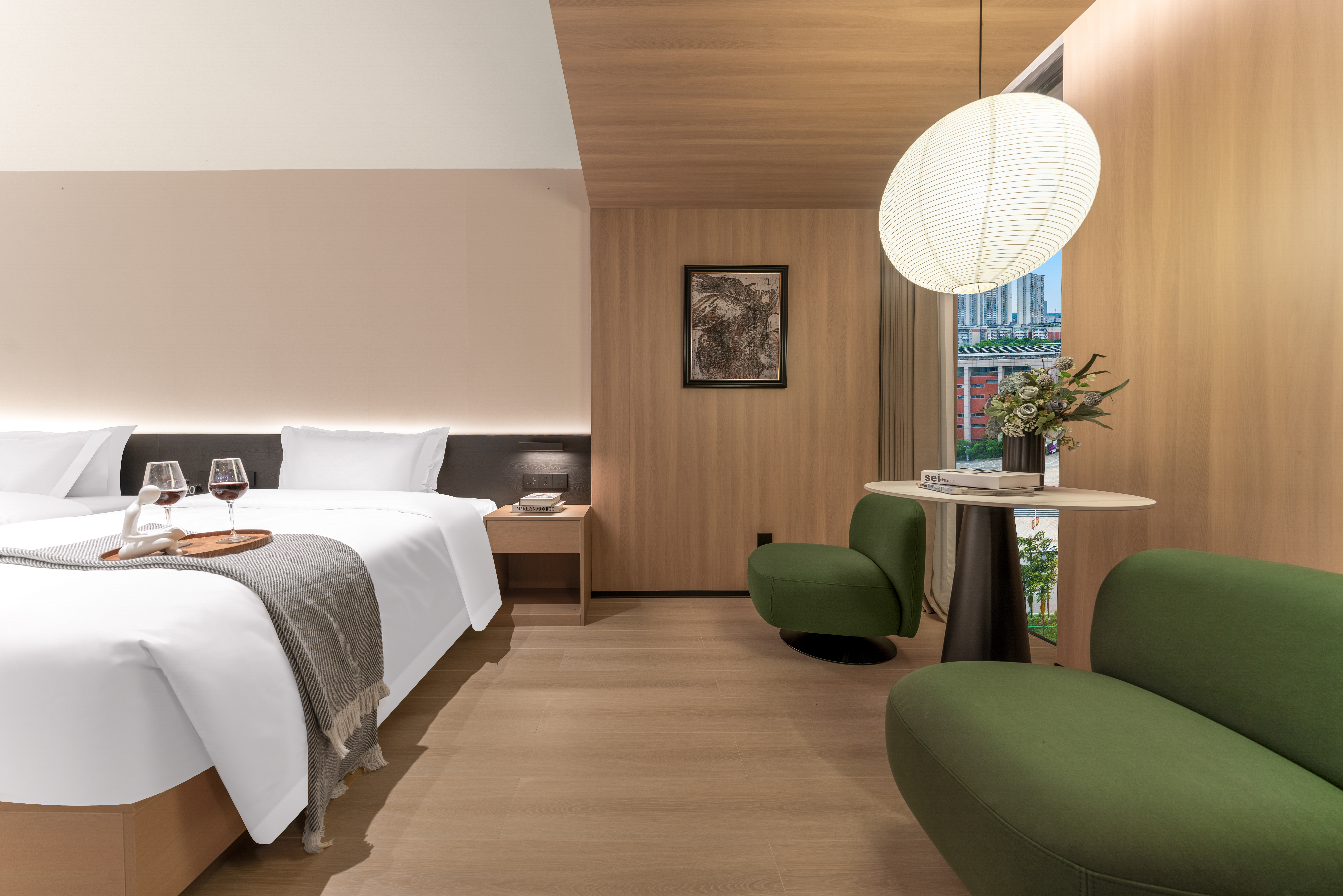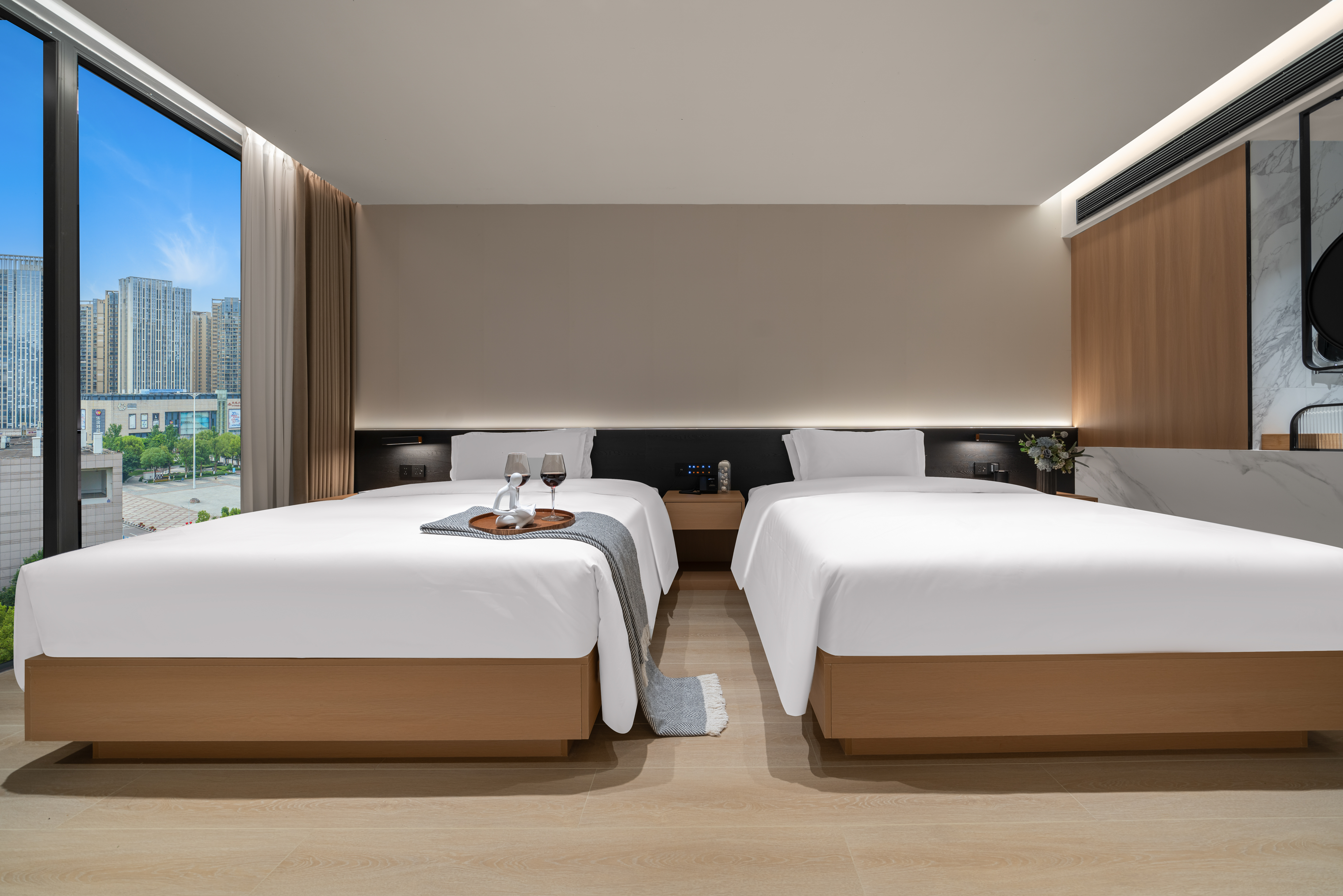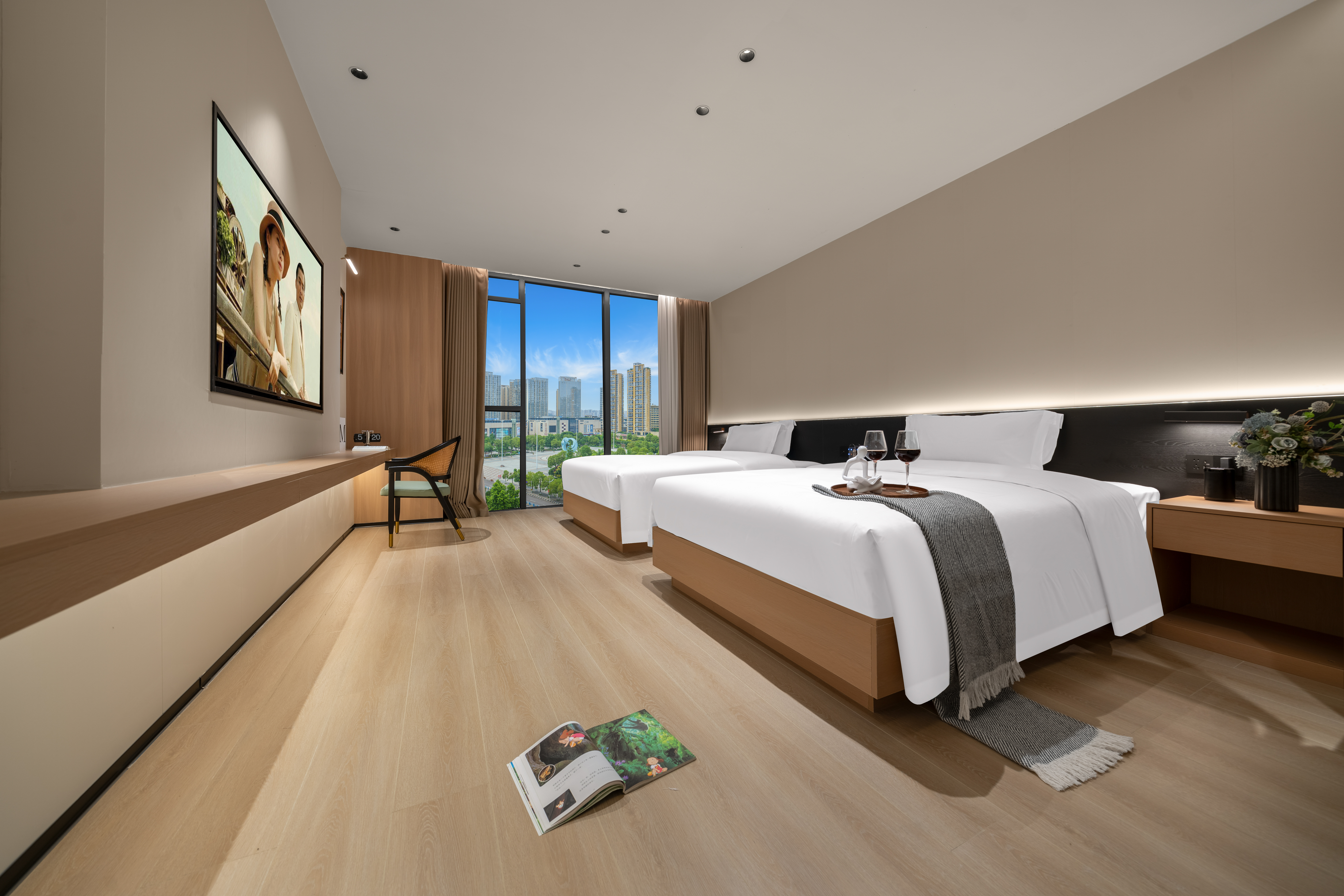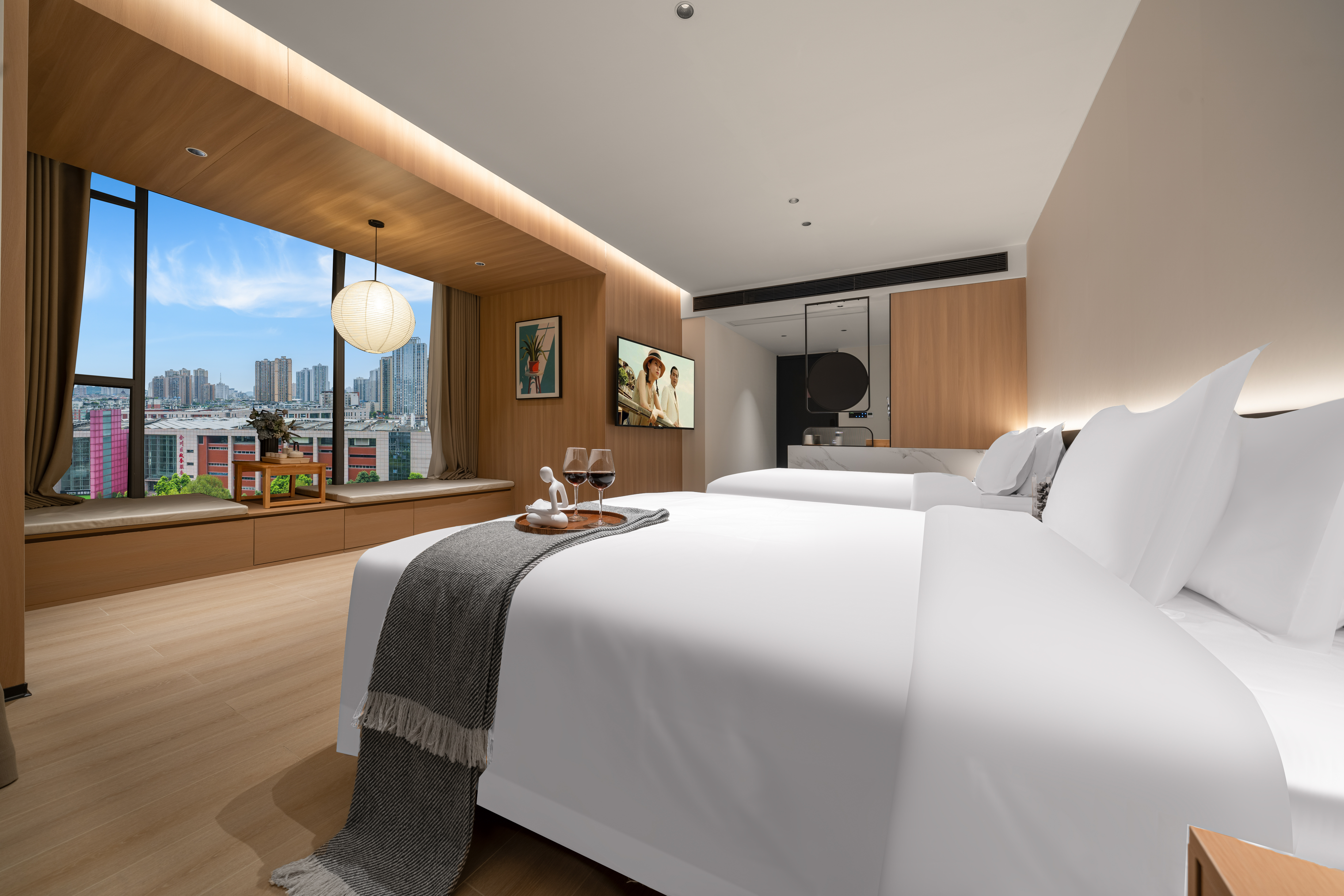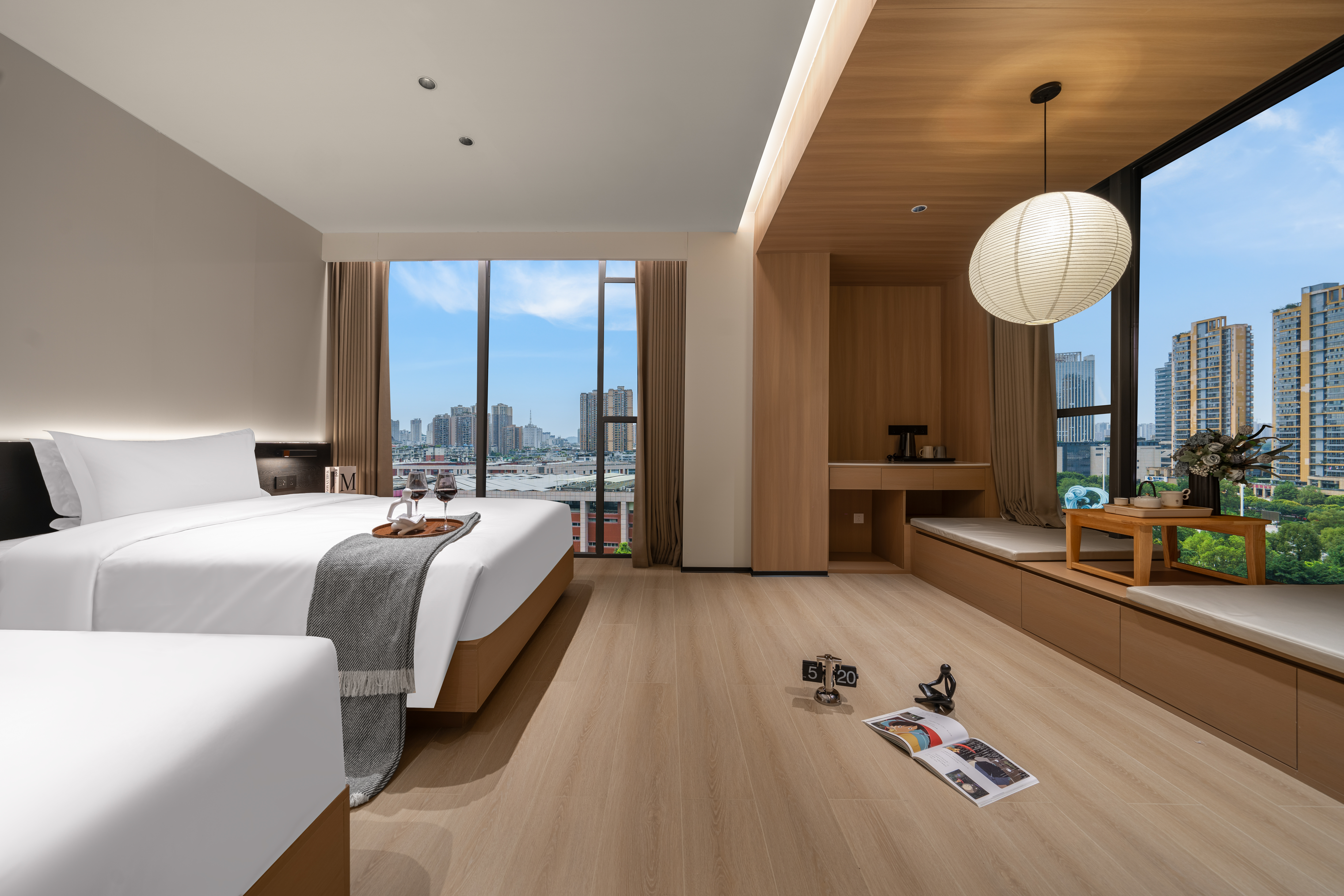 熹光|行政雙床房·雅居觀景(金可兒床墊+全景落地窗+小冰箱)