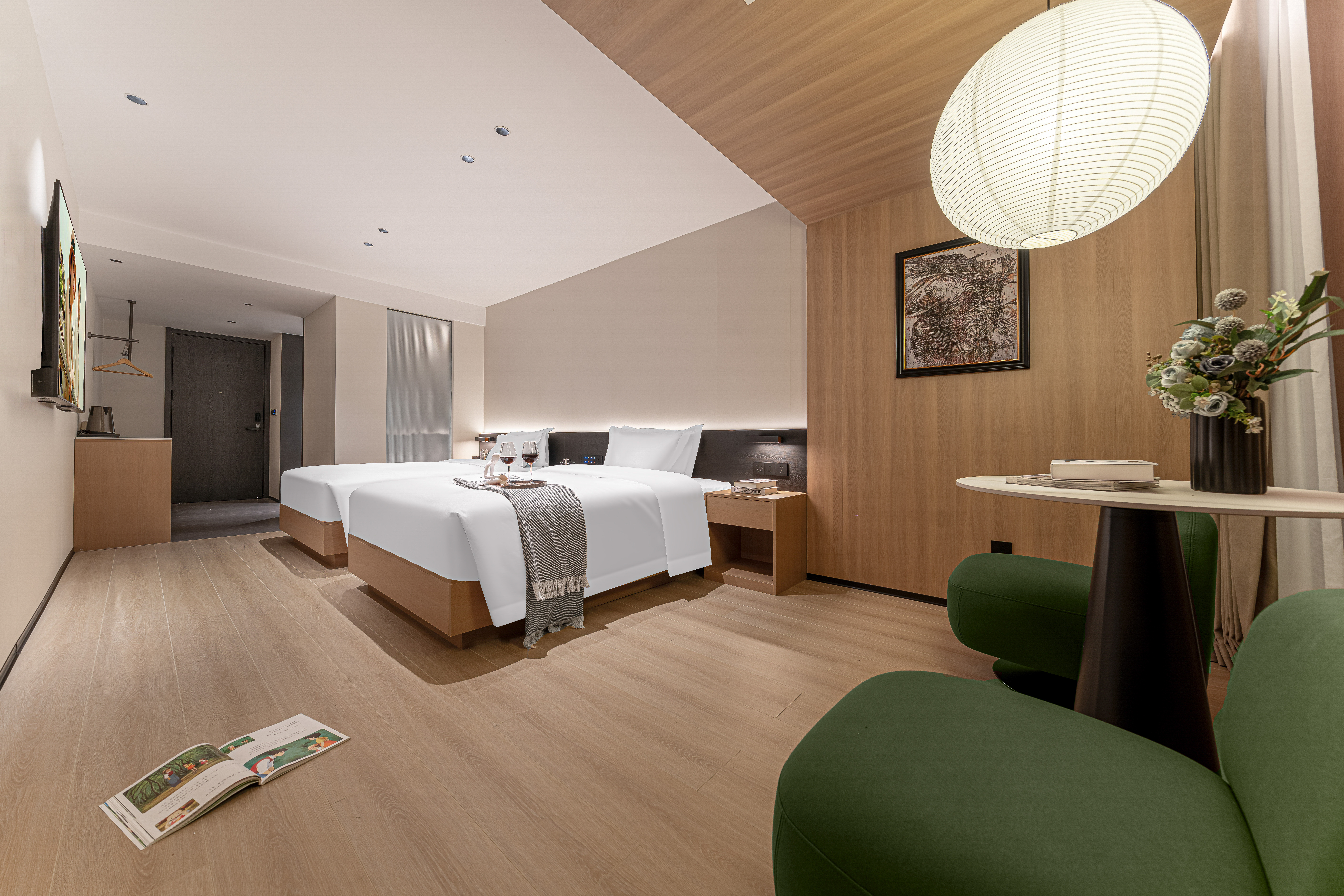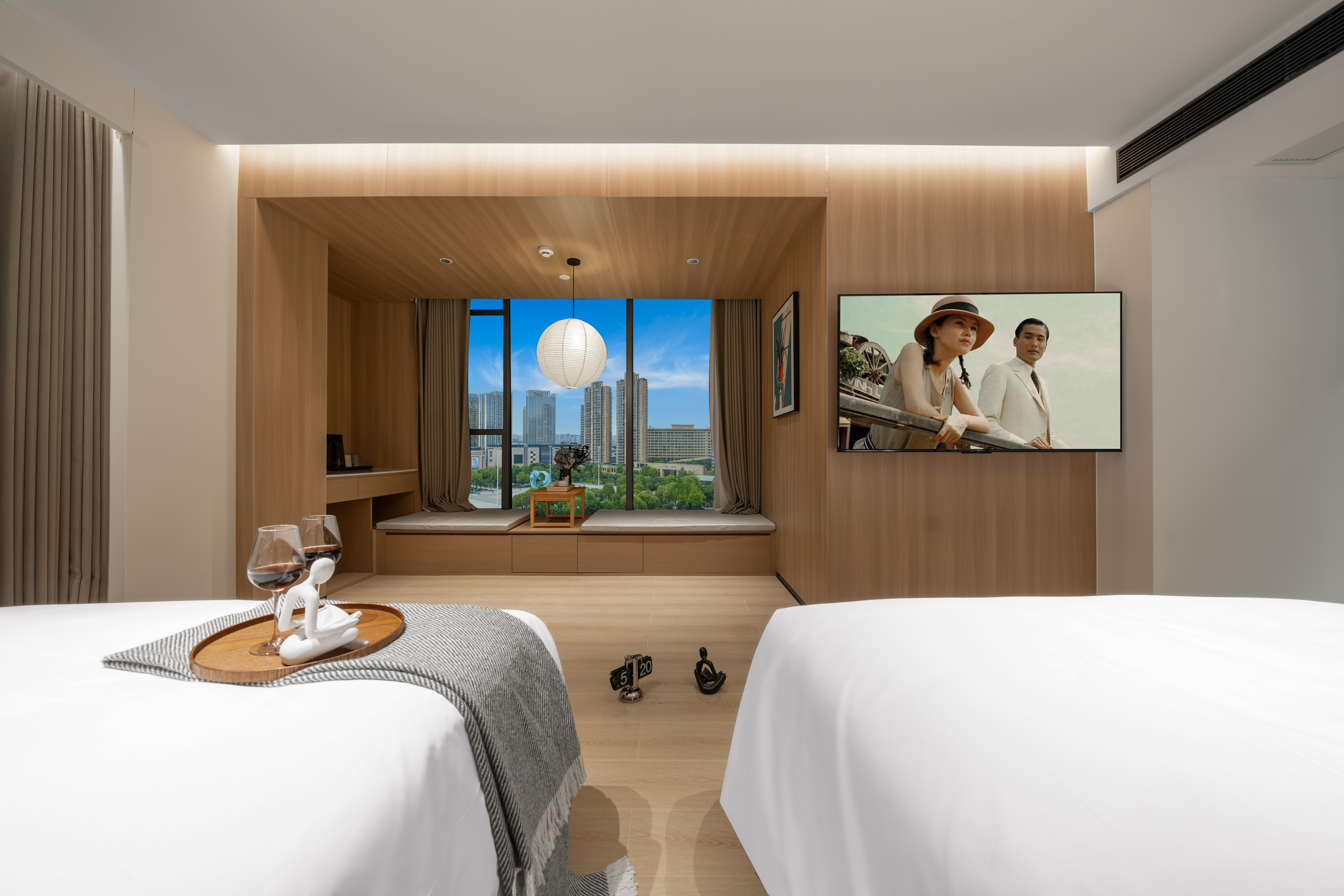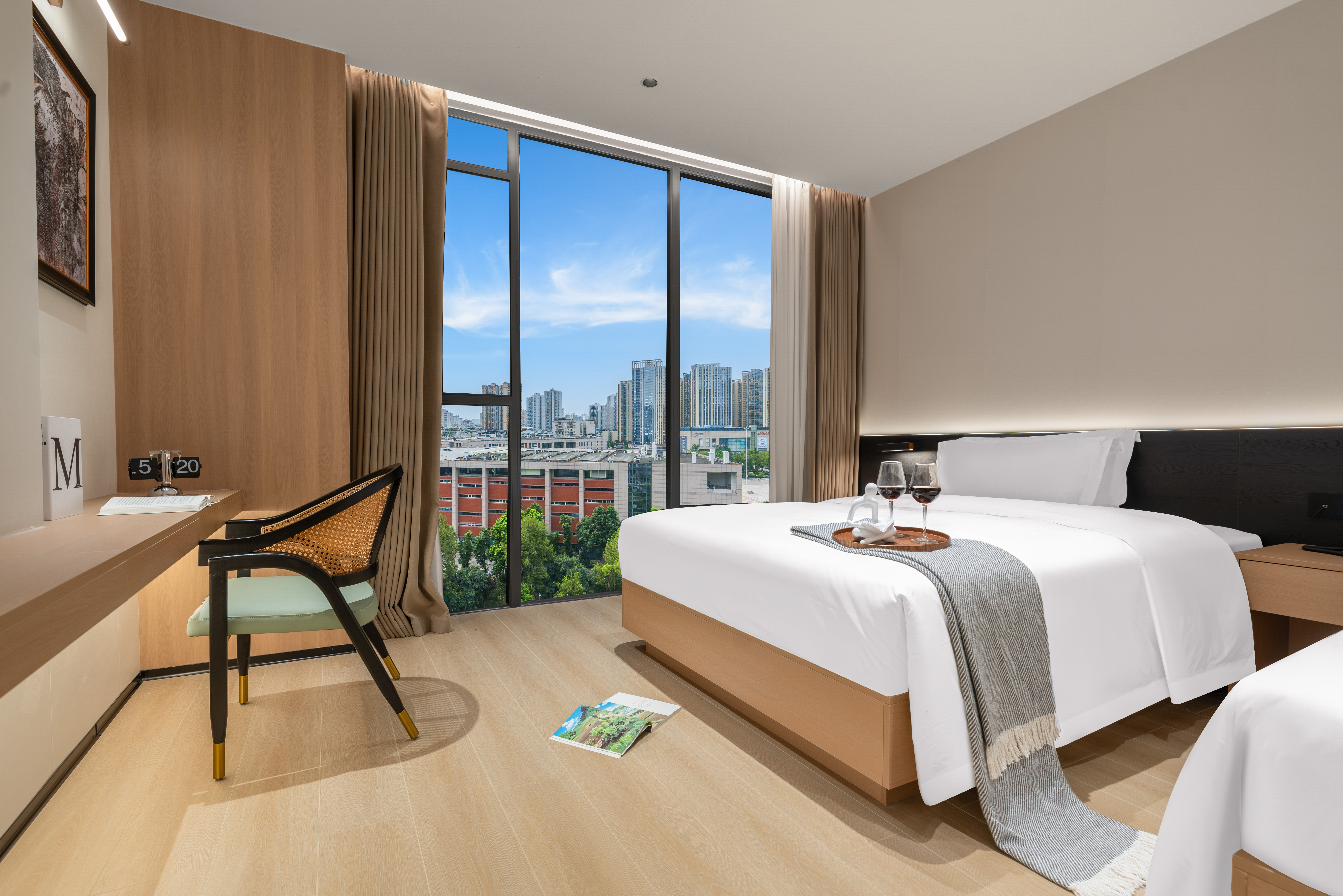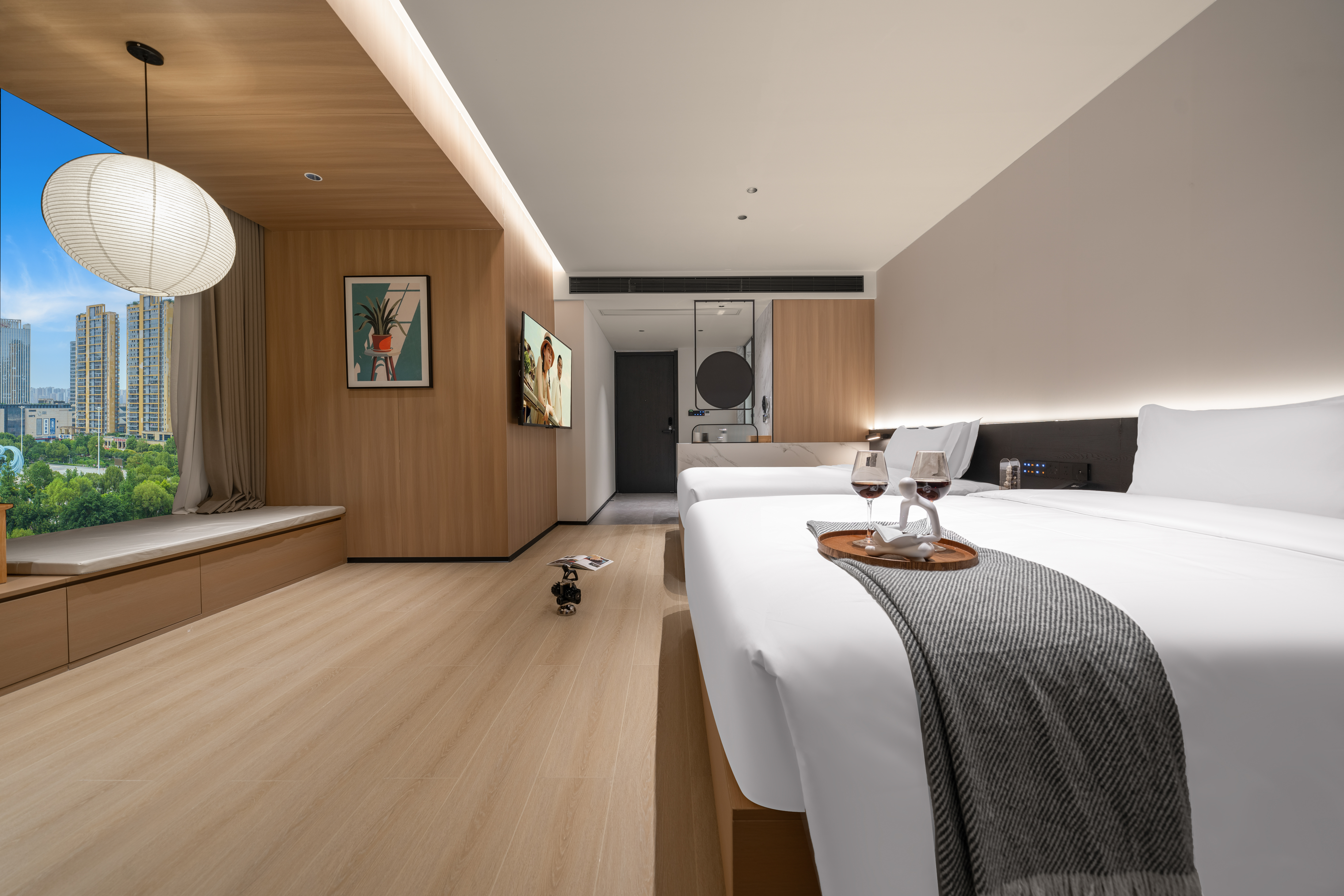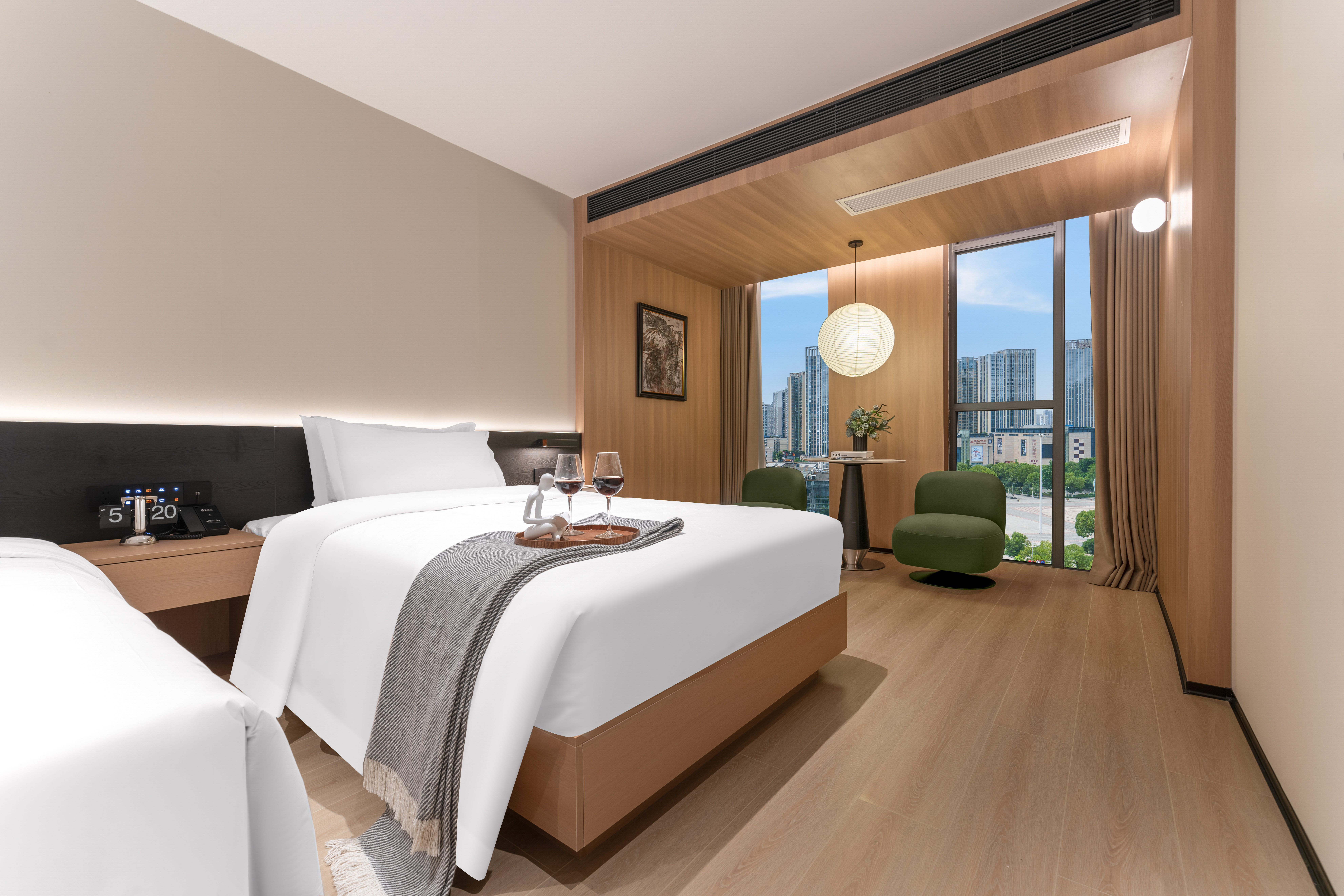 熹光|行政雙床房·雅居觀景(金可兒床墊+全景落地窗+小冰箱)