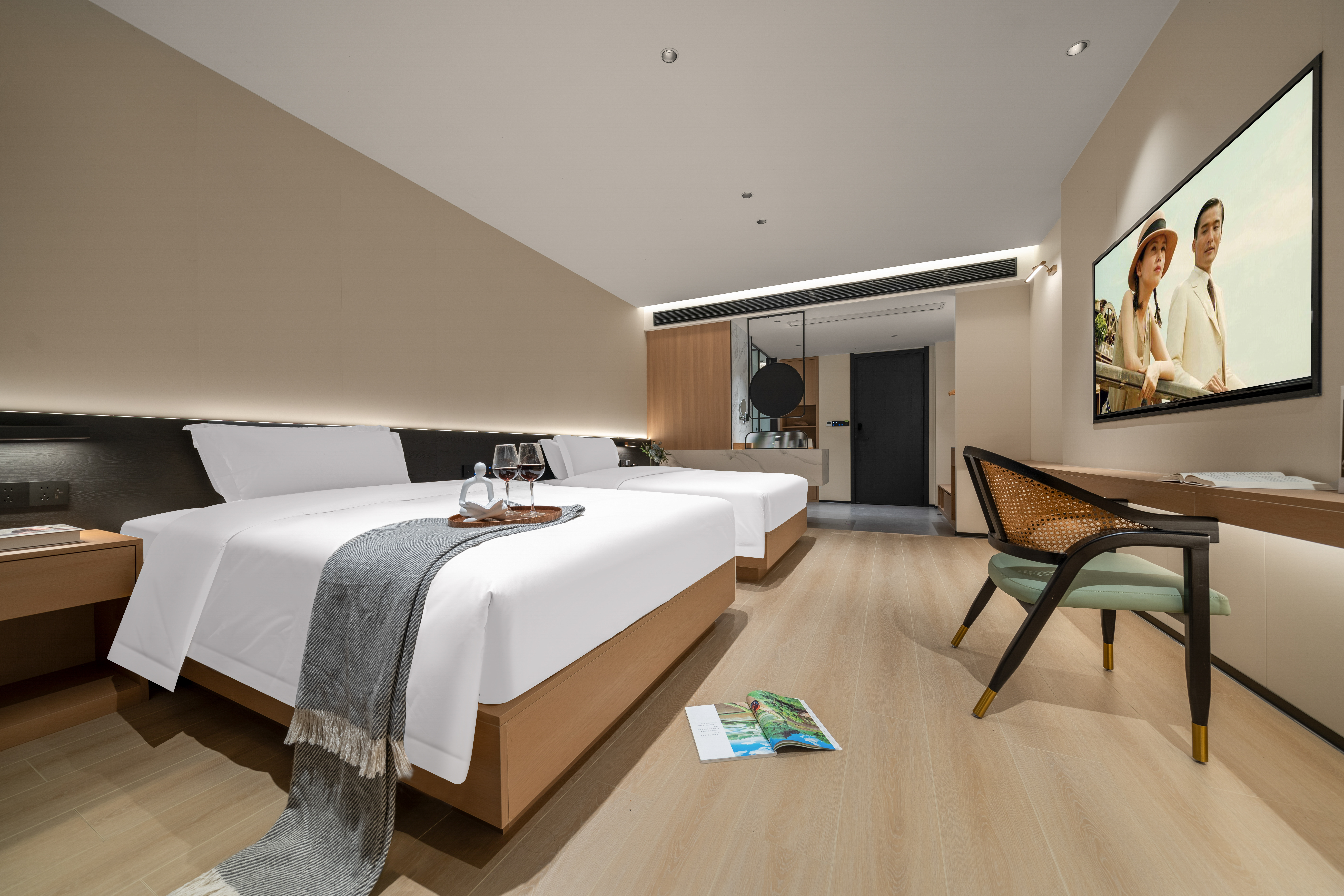 沐光|清雅雙床房·俯瞰觀江(金可兒床墊+旋轉沙發+橋景盡收)