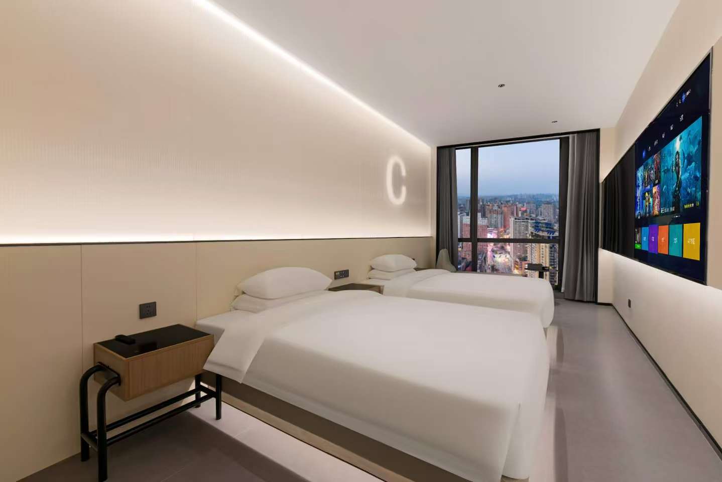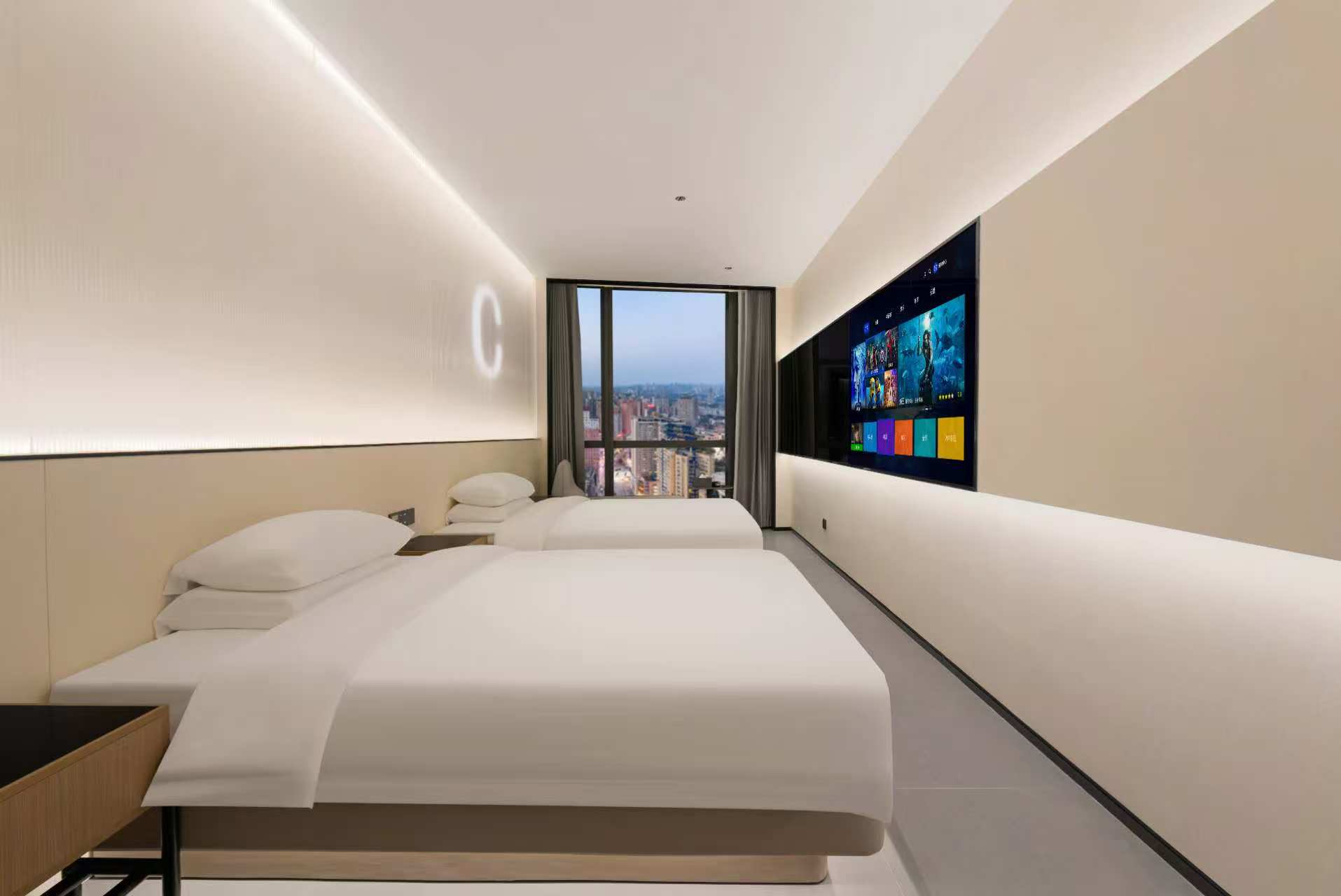 高空商務雙床房[落地窗城市景觀+金可兒品牌床墊]