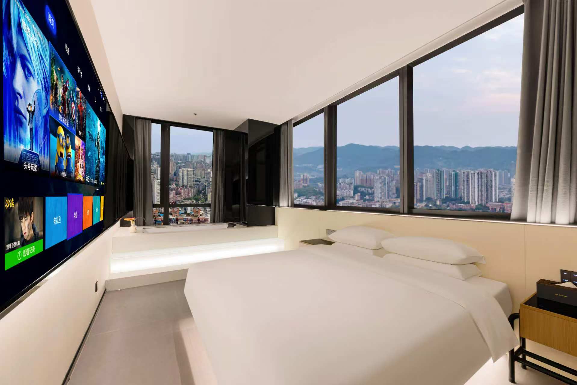 270全景湯池大床房[兩面環窗無敵視野+看山景日出日落高鐵進站]