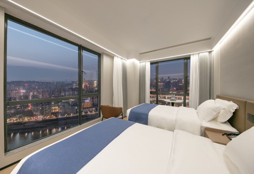 玥華·雲棲豪華雙床房(城市夜景-高定床品-深度好眠)