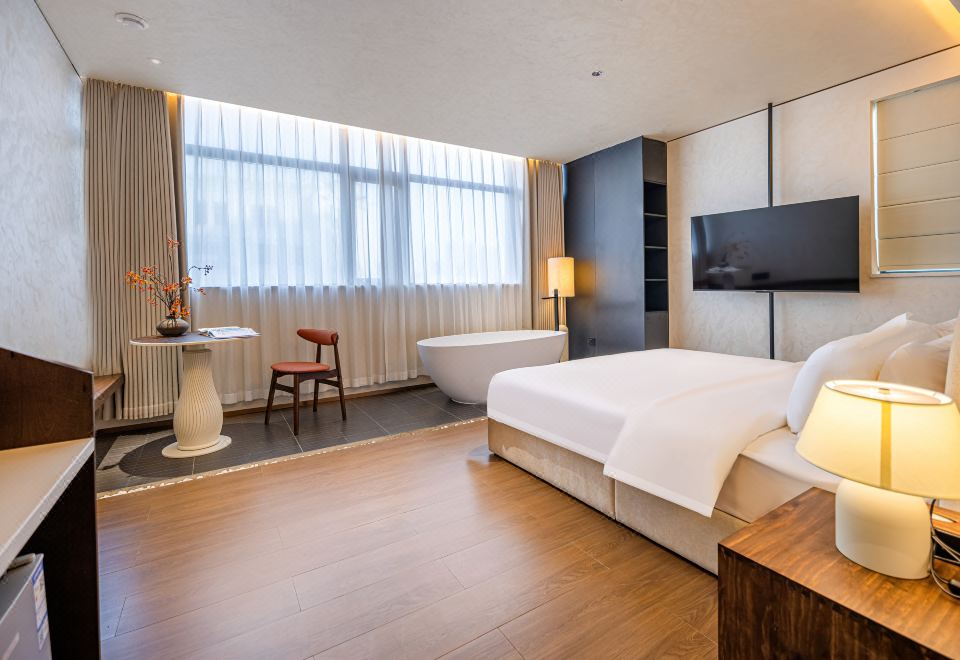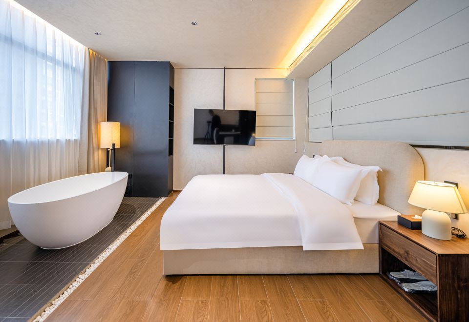 歸嶼·嶼晨靜逸大床房【4K超高清畫質電視+智能客控+洗烘衣物+超大浴缸】