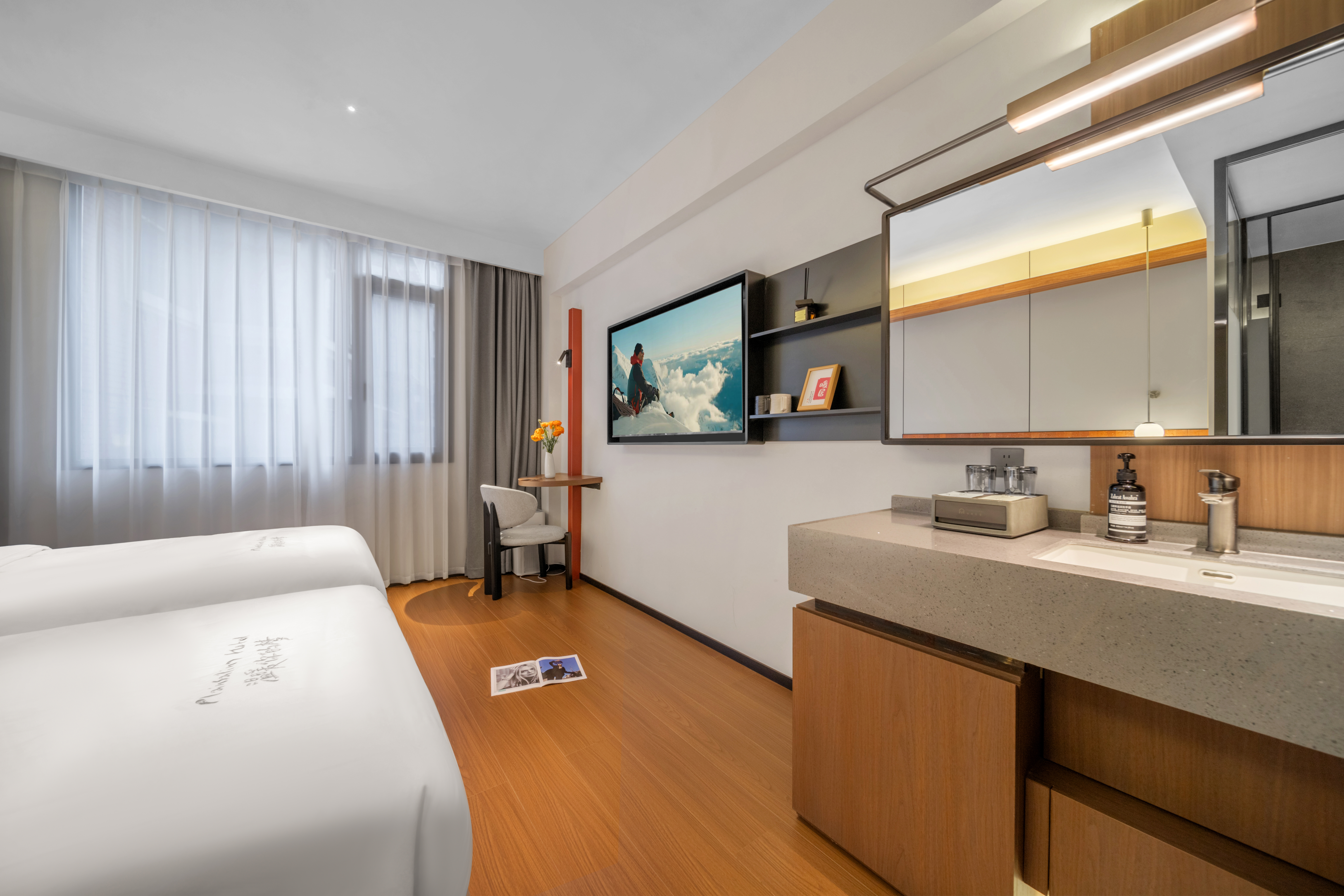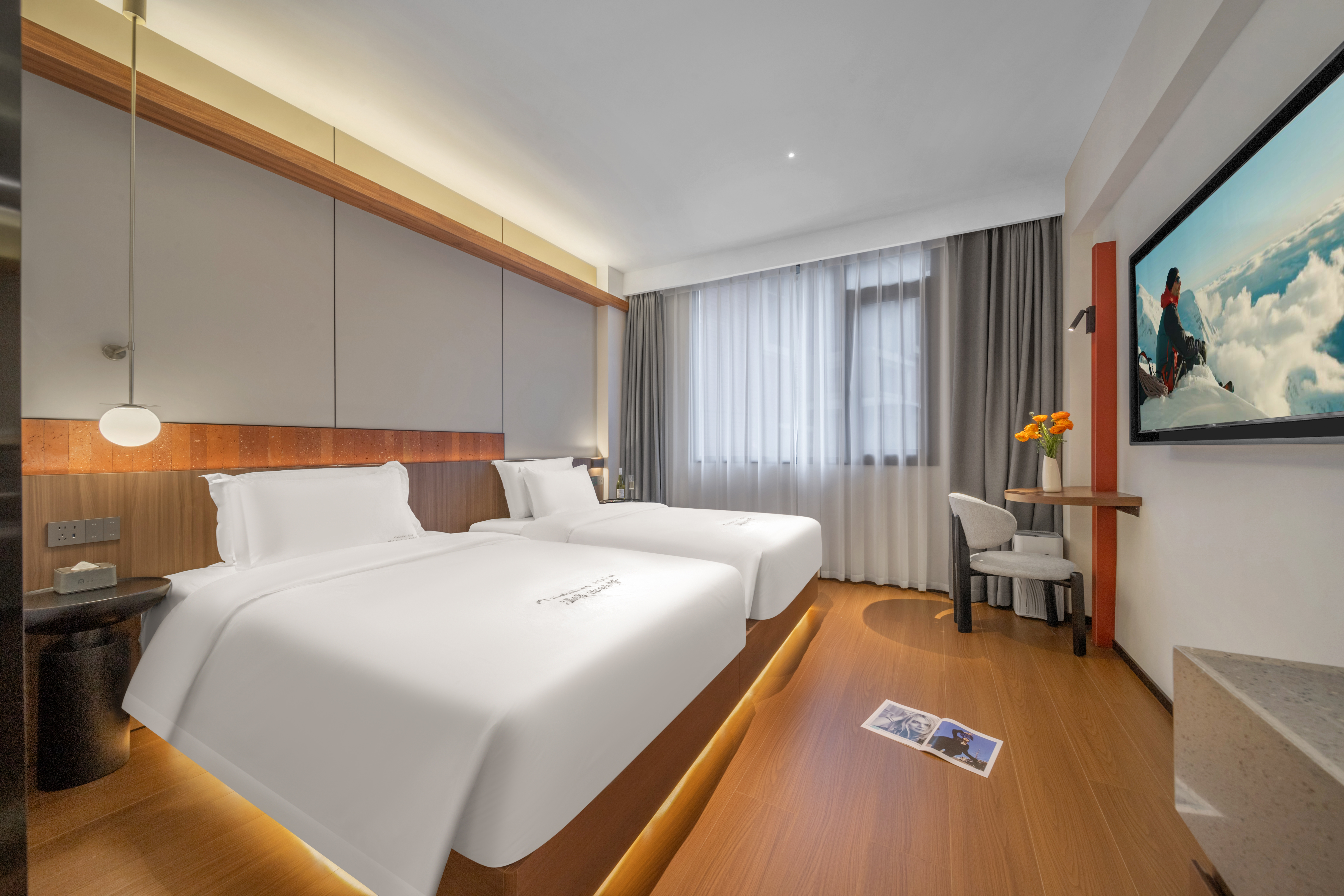 山月雙床房(乳膠床墊+慢回彈零壓枕+迷你冰箱)