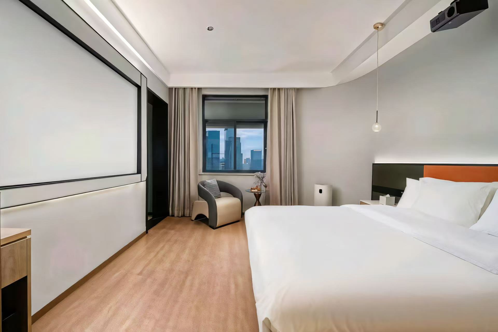 四季·如詩行政大床房「全屋智能客控+4K高清巨幕投影+零壓酣睡床墊mini冰箱」