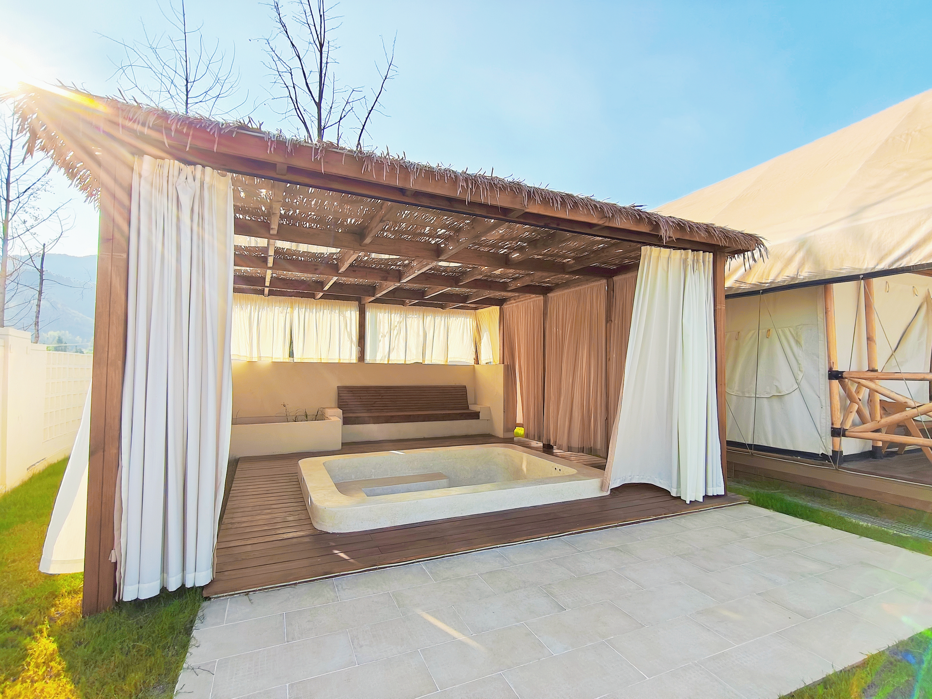 私汤泡池庭院?野渡+双床房