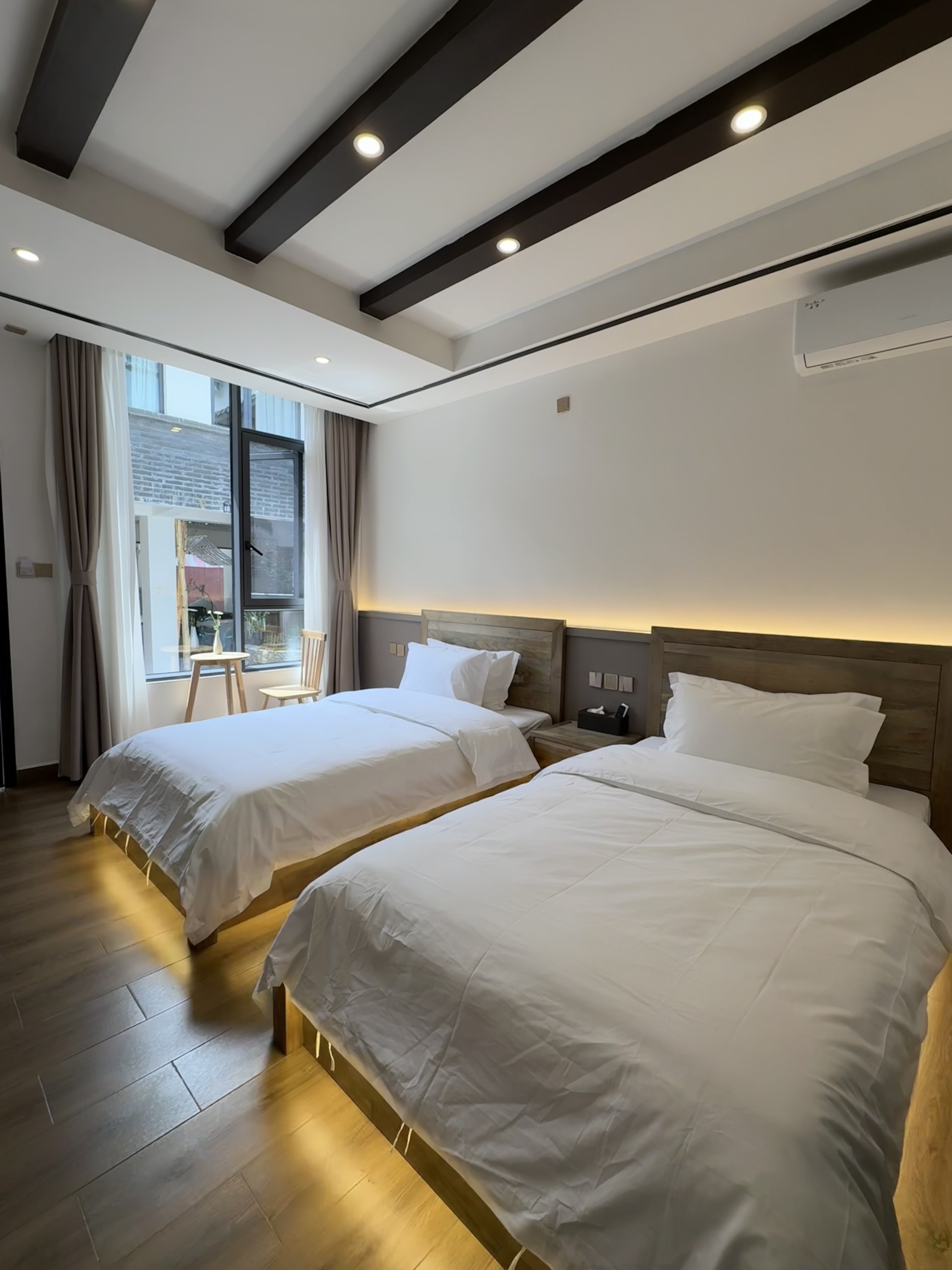 初遇·浪漫双床房|环绕氛围灯|休闲桌椅|零压床垫|