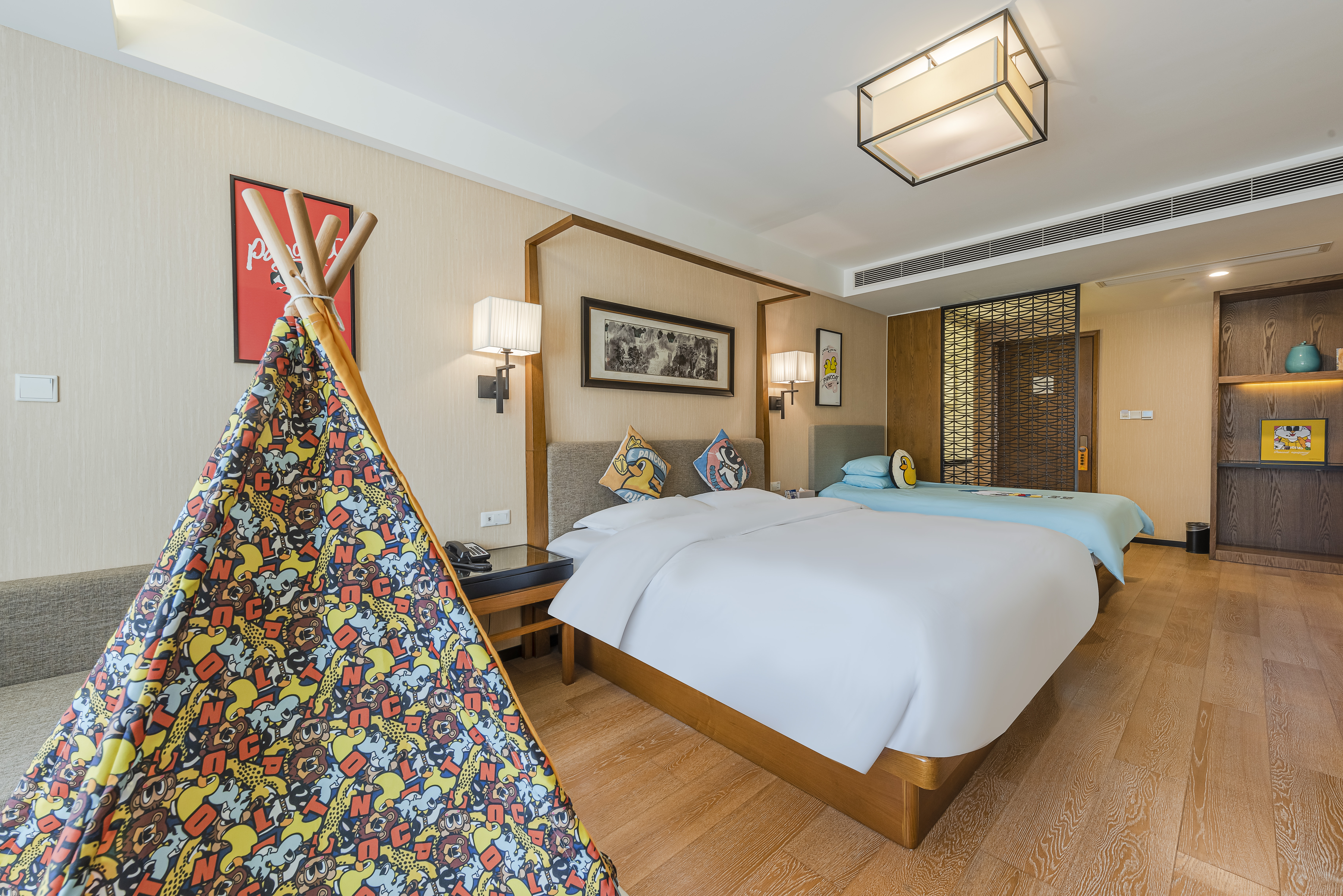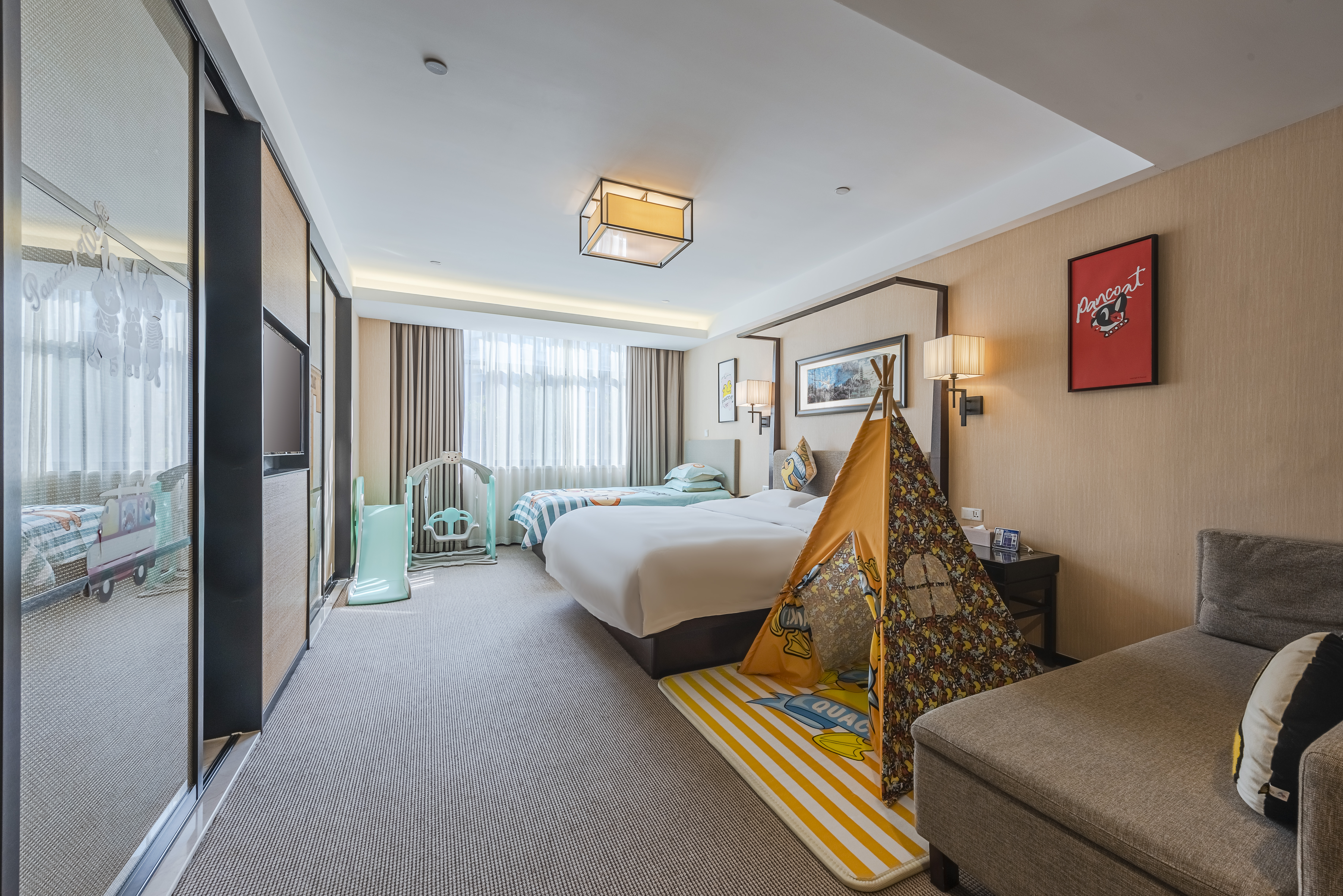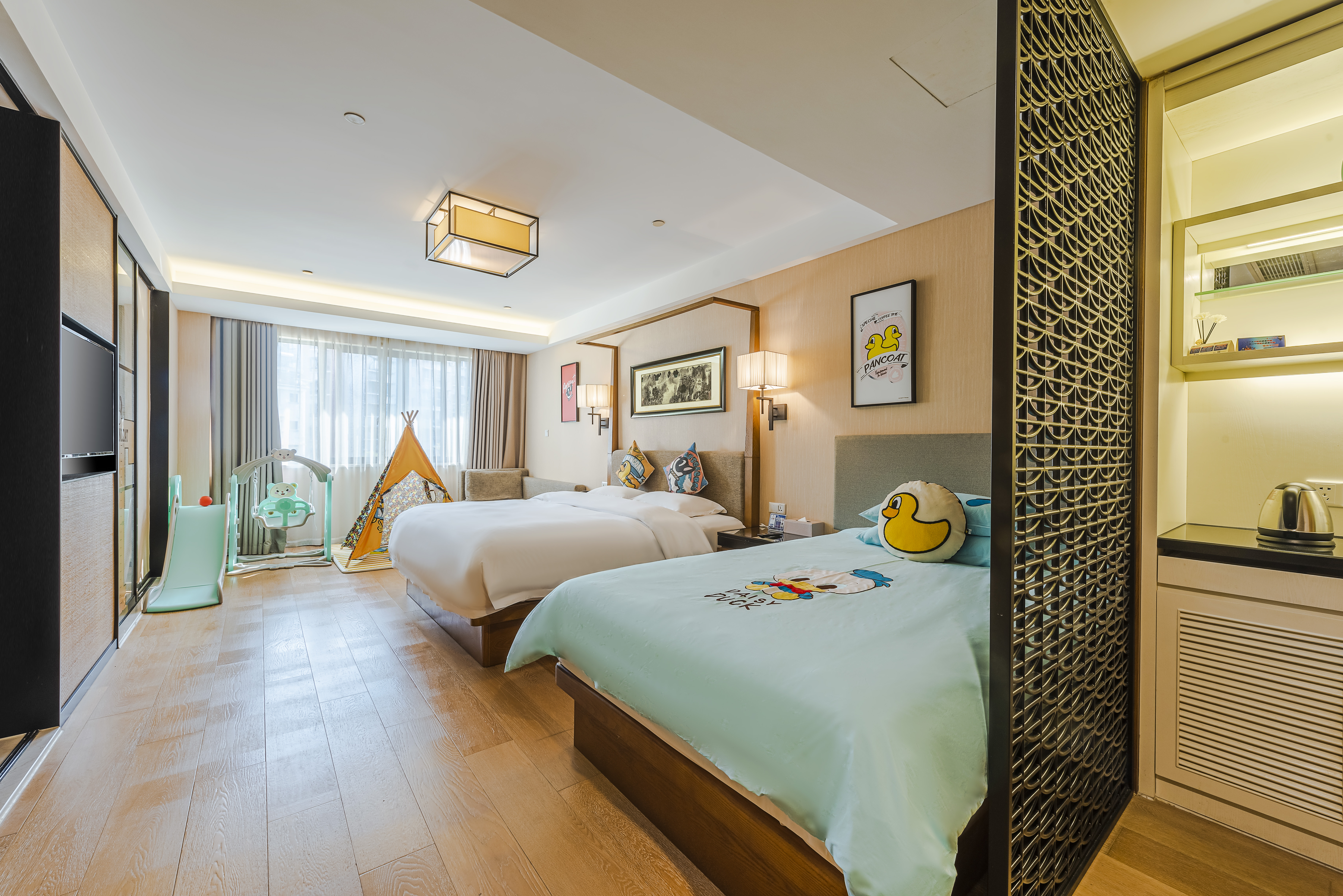 小黄鸭主题亲子房(小童帐篷+金可儿床垫)