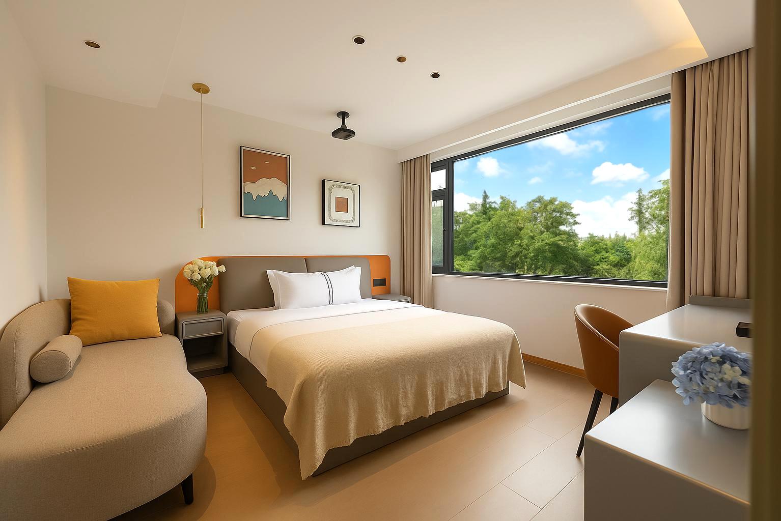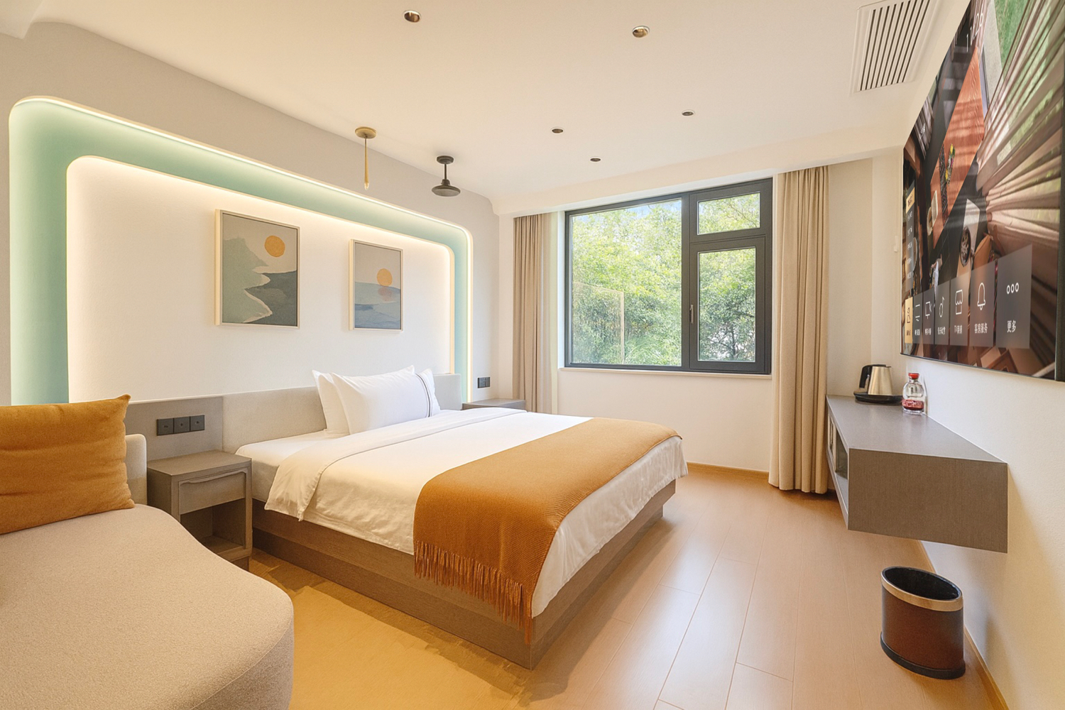 尘外·静谧大床房|庭院景观+小度全屋智控+4K高清巨幕+恒温花洒+智能马桶+小冰箱