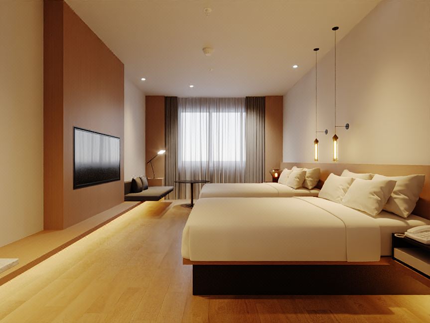 豪华双床房(金可儿品牌床垫+小冰箱)