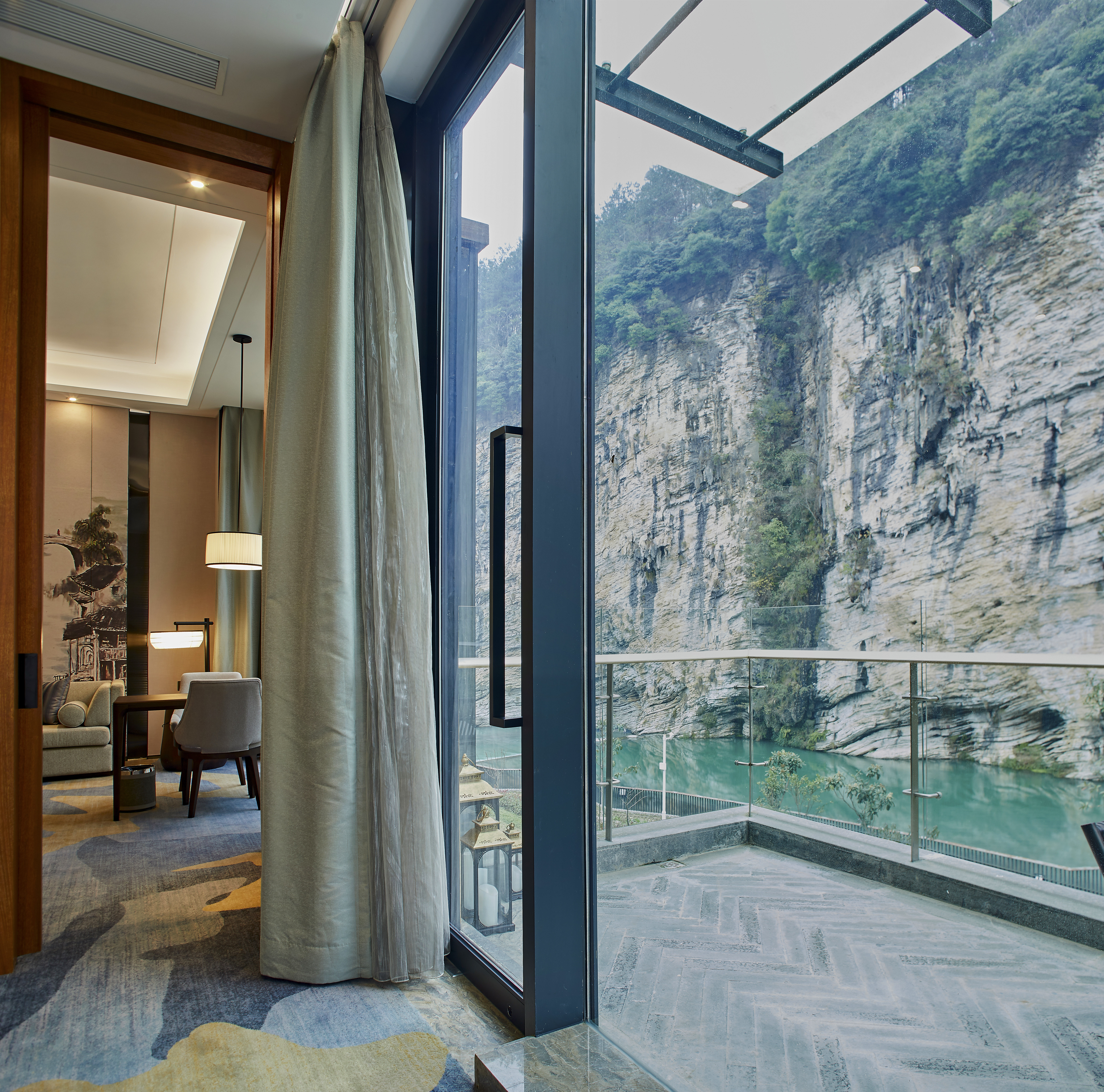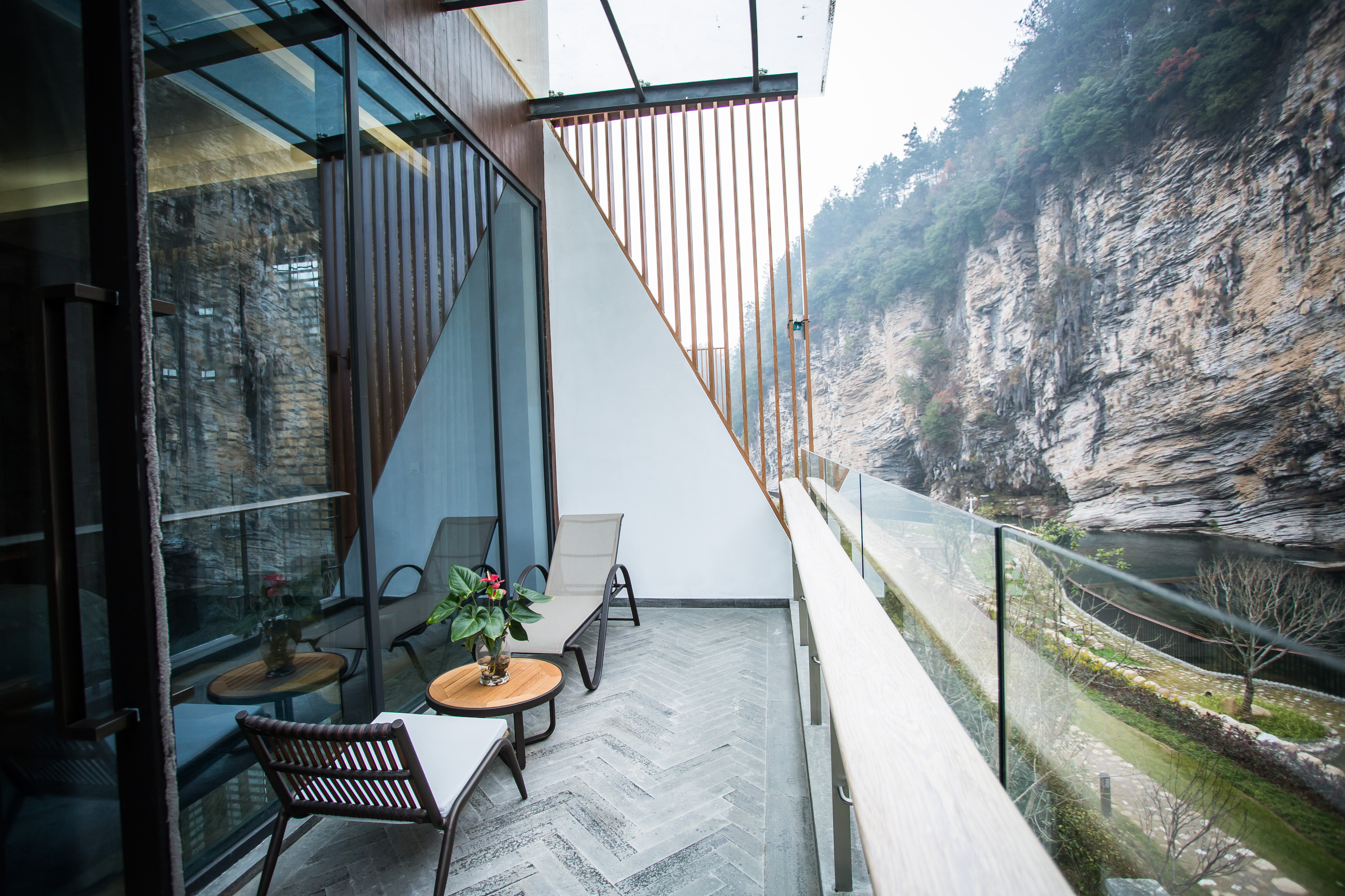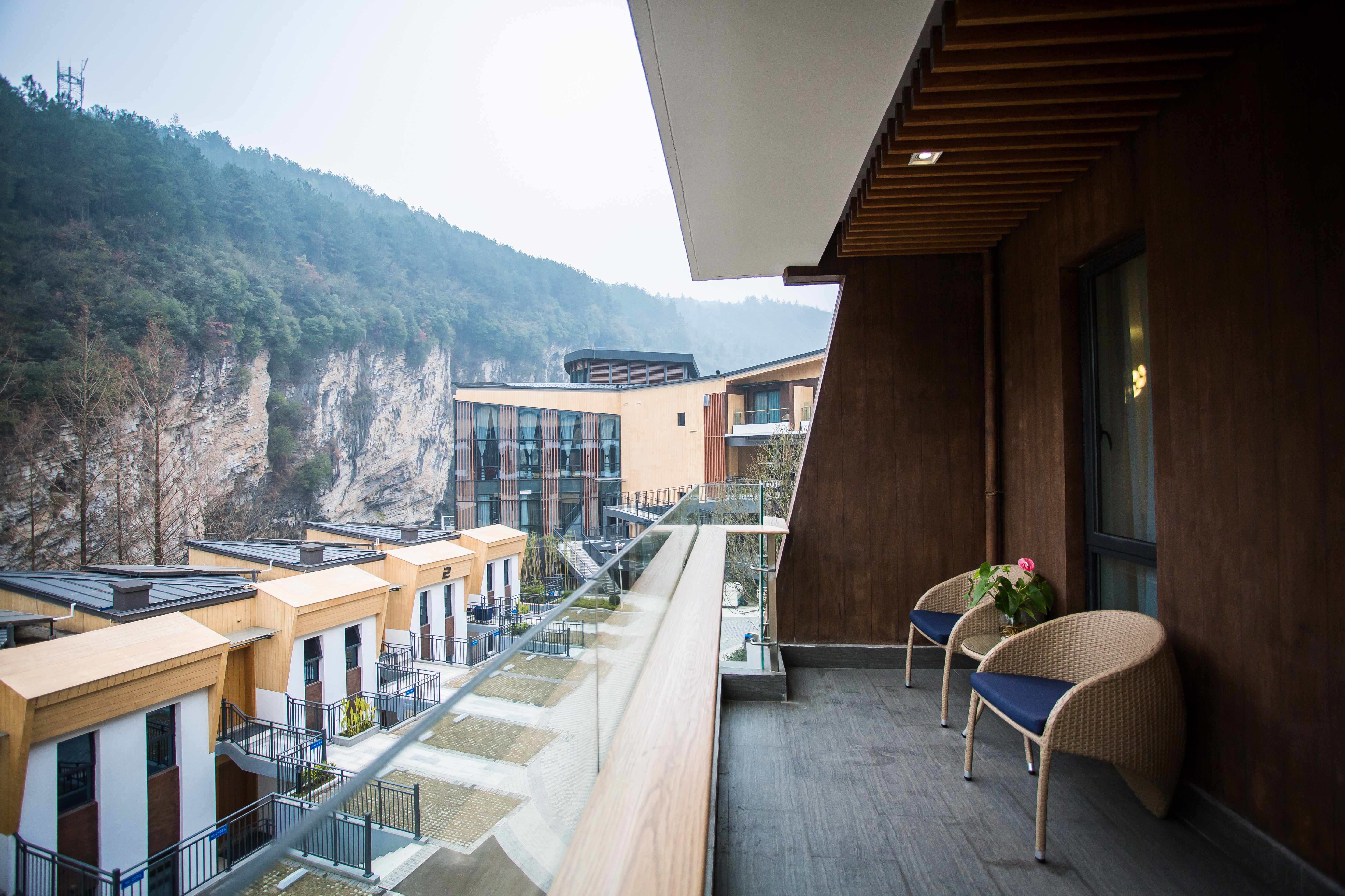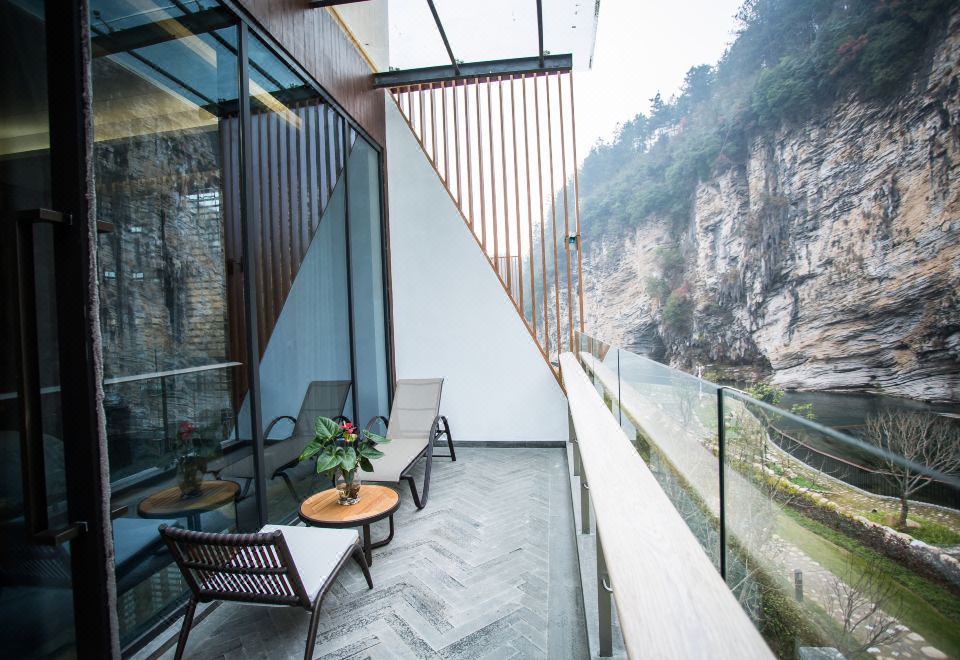 网红崖壁山景阳台双床房