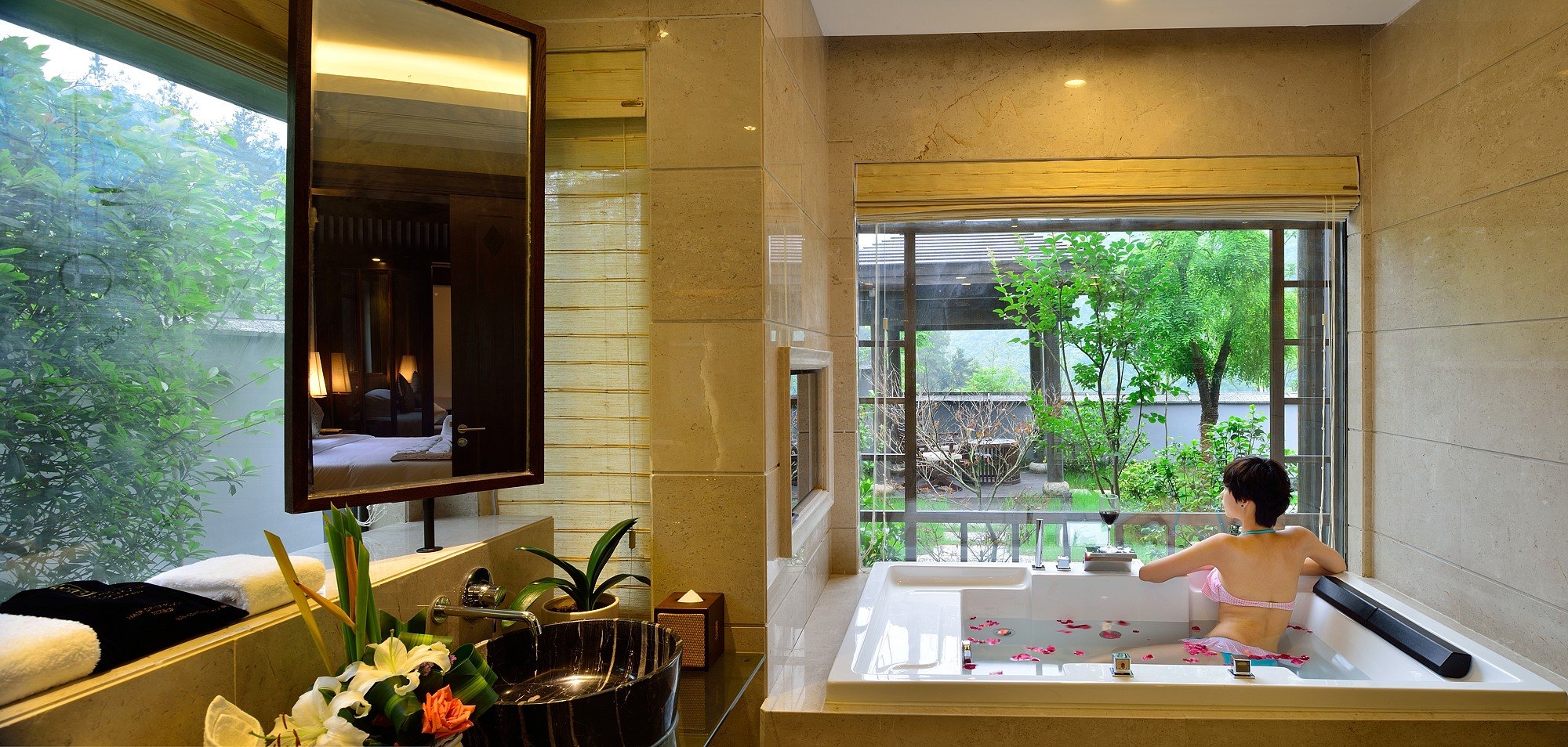 金寨别墅-私人庭院套房+私密入口+观景浴缸+森林汤池