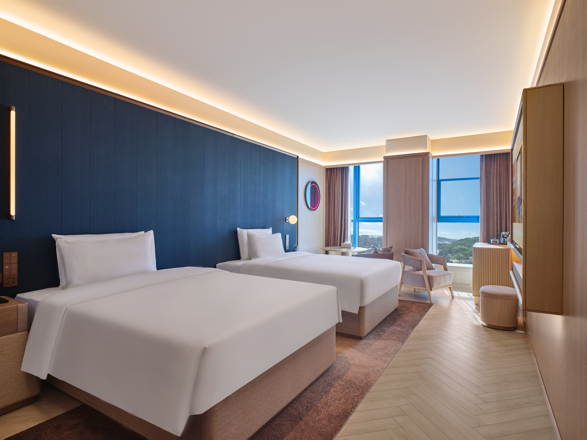 观景高级双床房(丝涟床垫+65寸智能电视+徕芬吹风机)