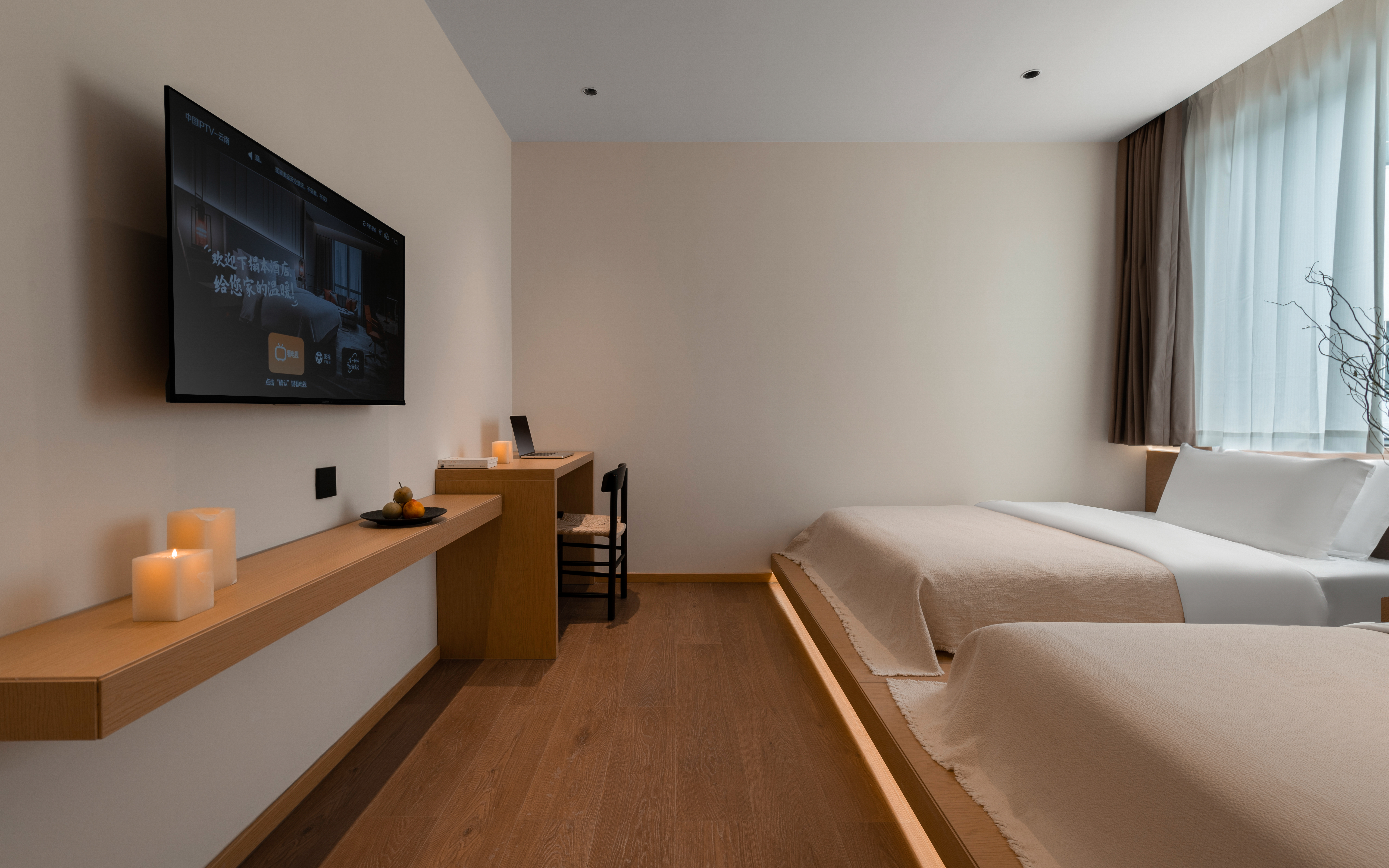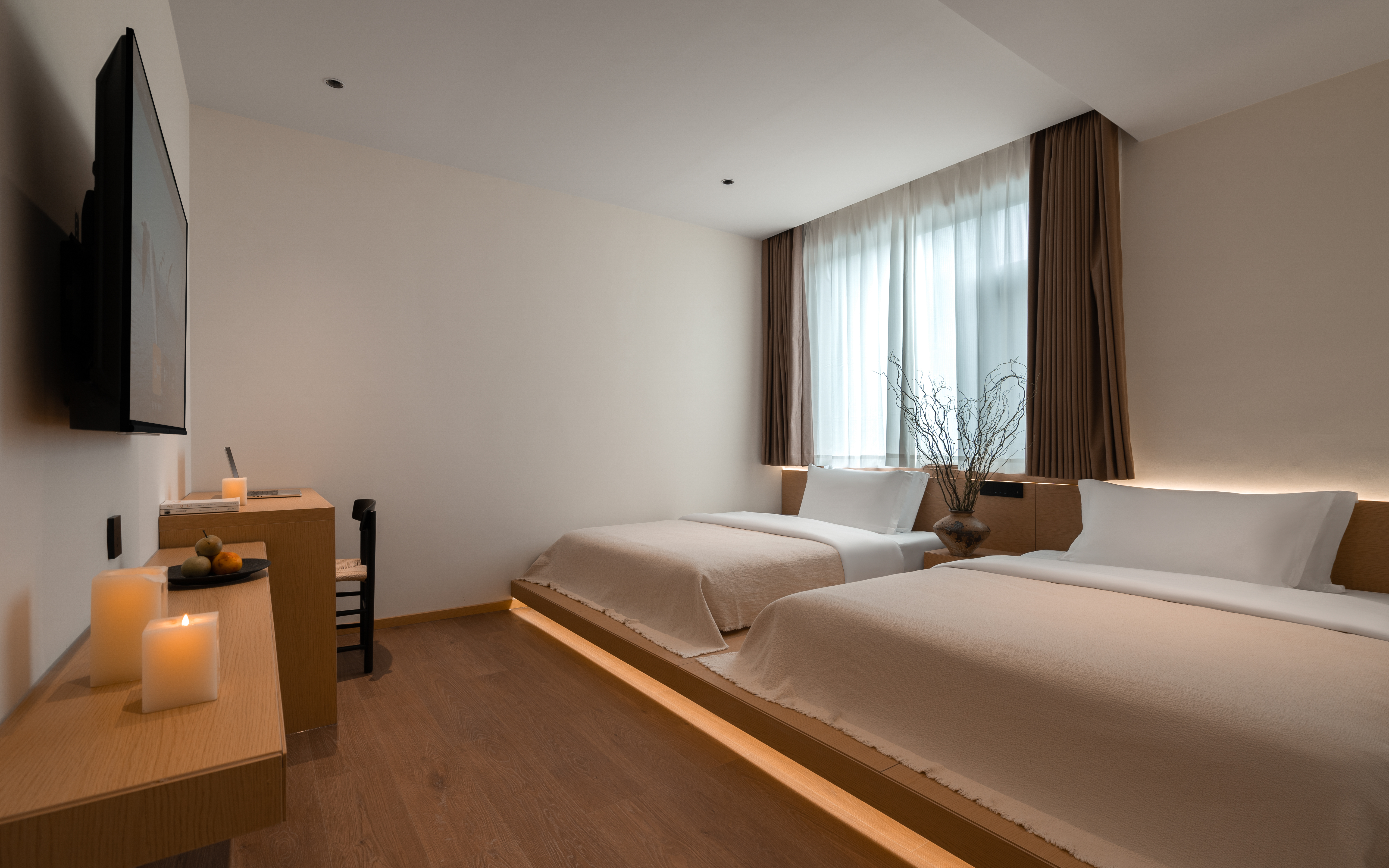 寻竹阳台双床房丨汉斯格雅杜拉维特衞浴丨乾湿分离丨休闲桌椅丨优瑞Coffee Machine丨蓝山专属定制床垫