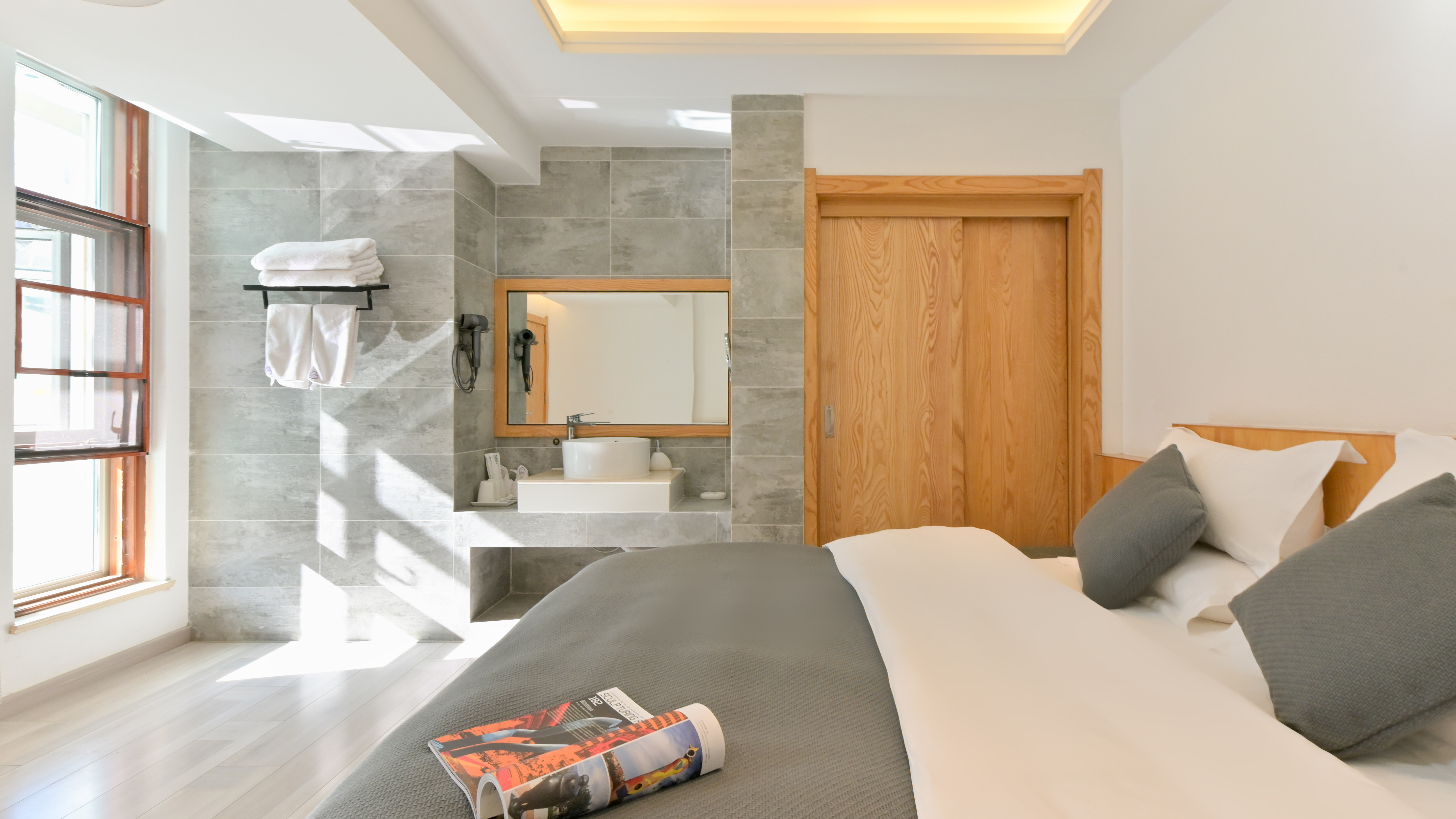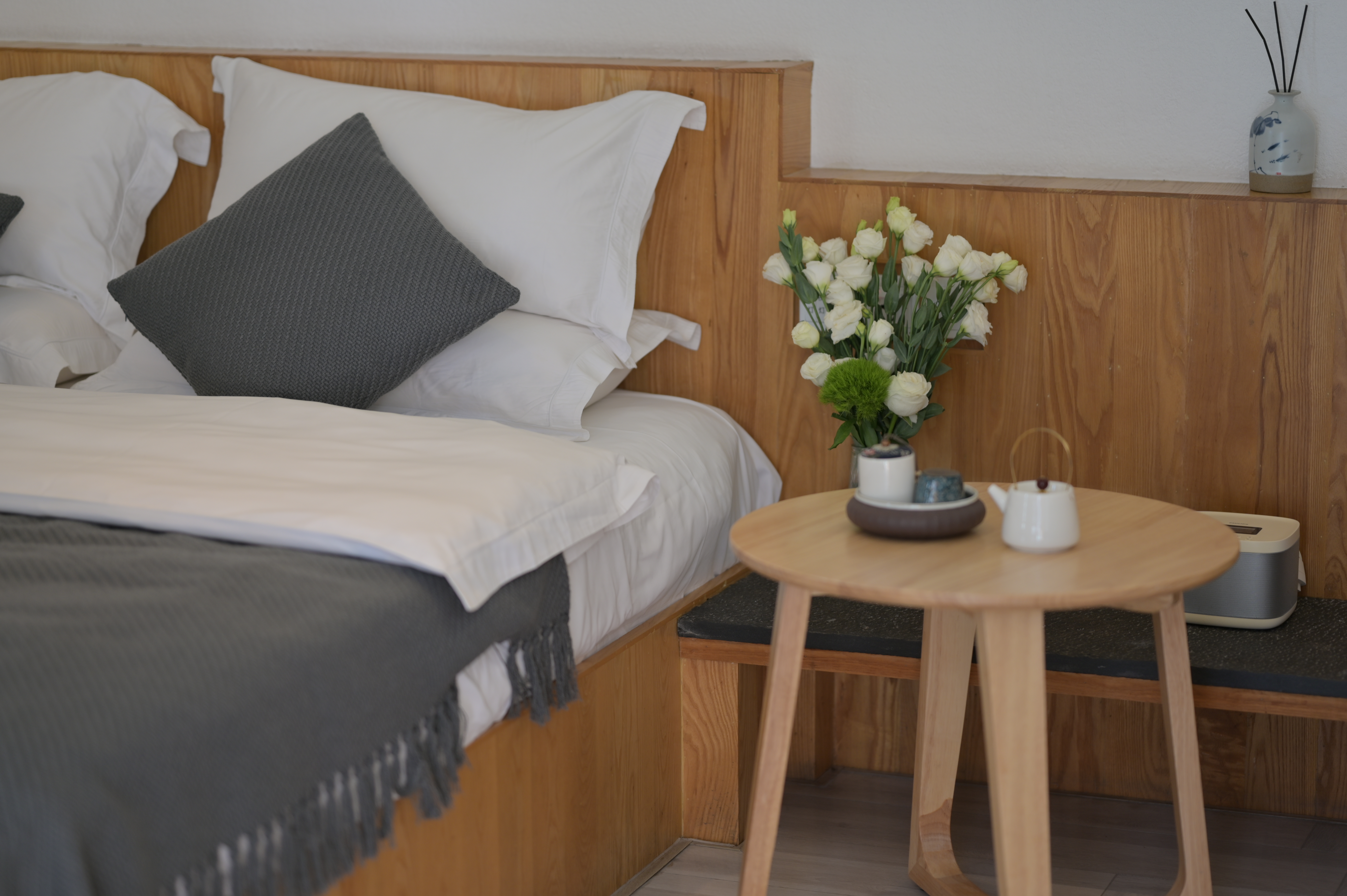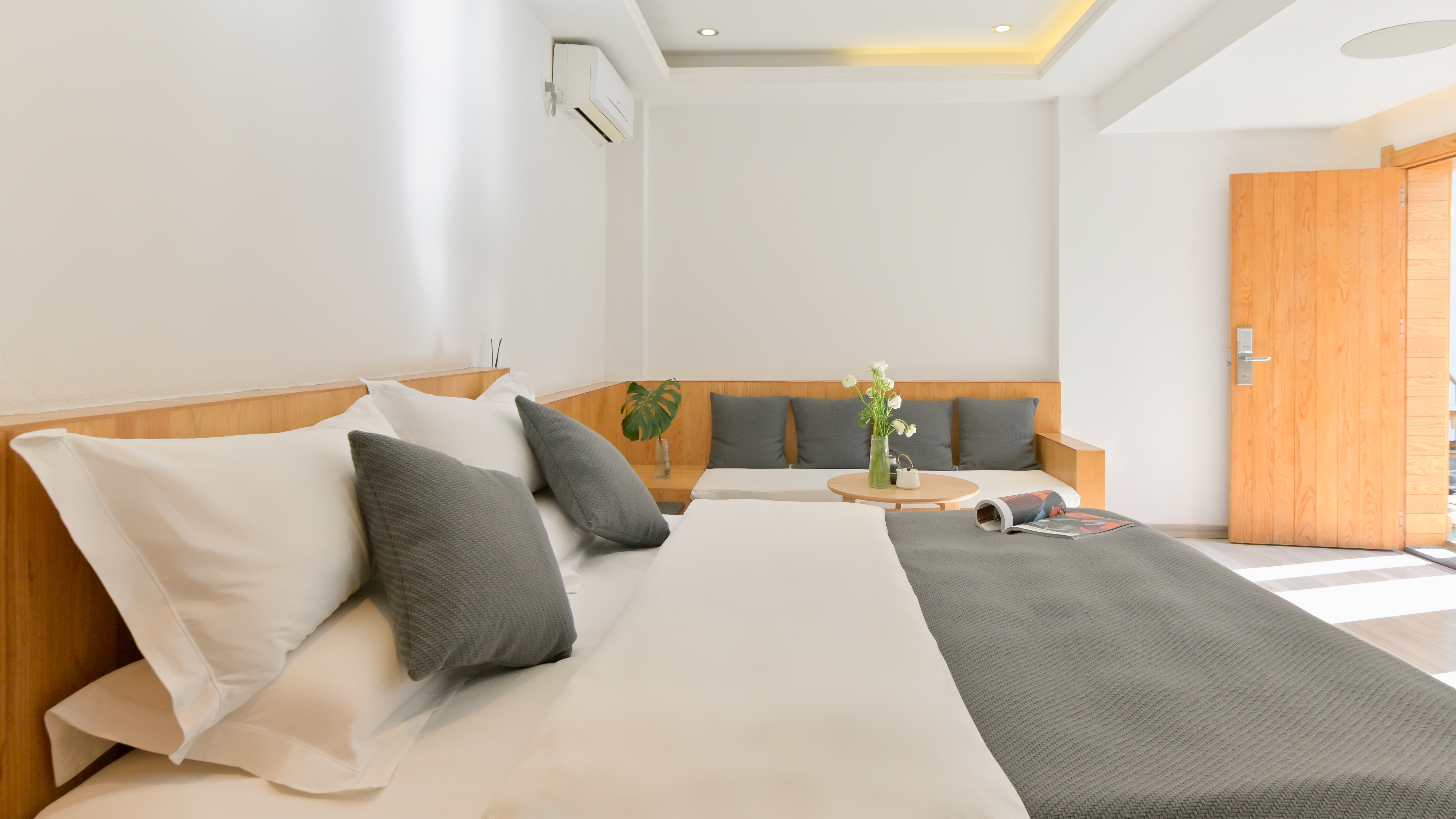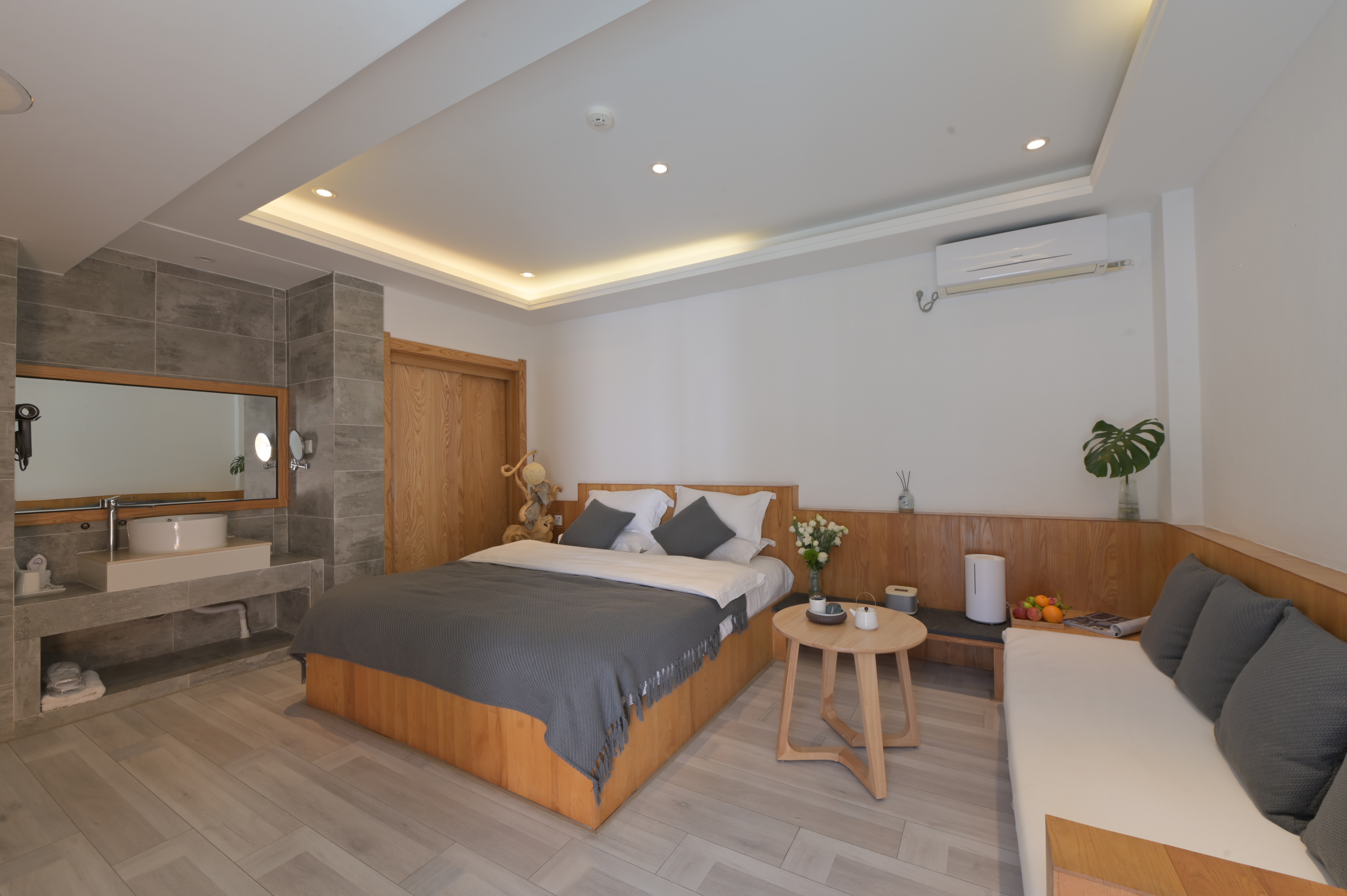 月伍·素影灰·豪華大床房(小米加濕器+羅曼尼負離子吹風機+乾濕分離+實木定製榻榻米沙發+乾濕分離衞浴)
