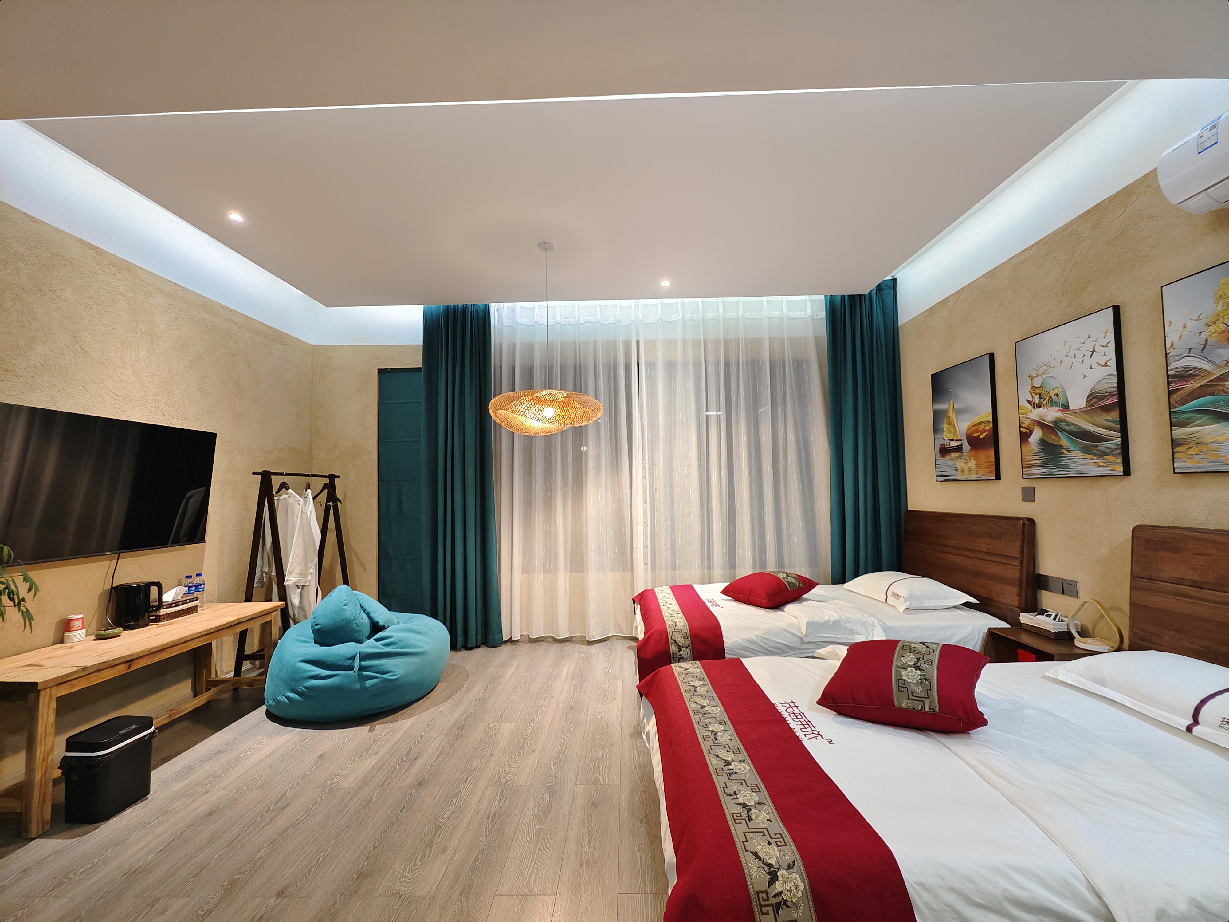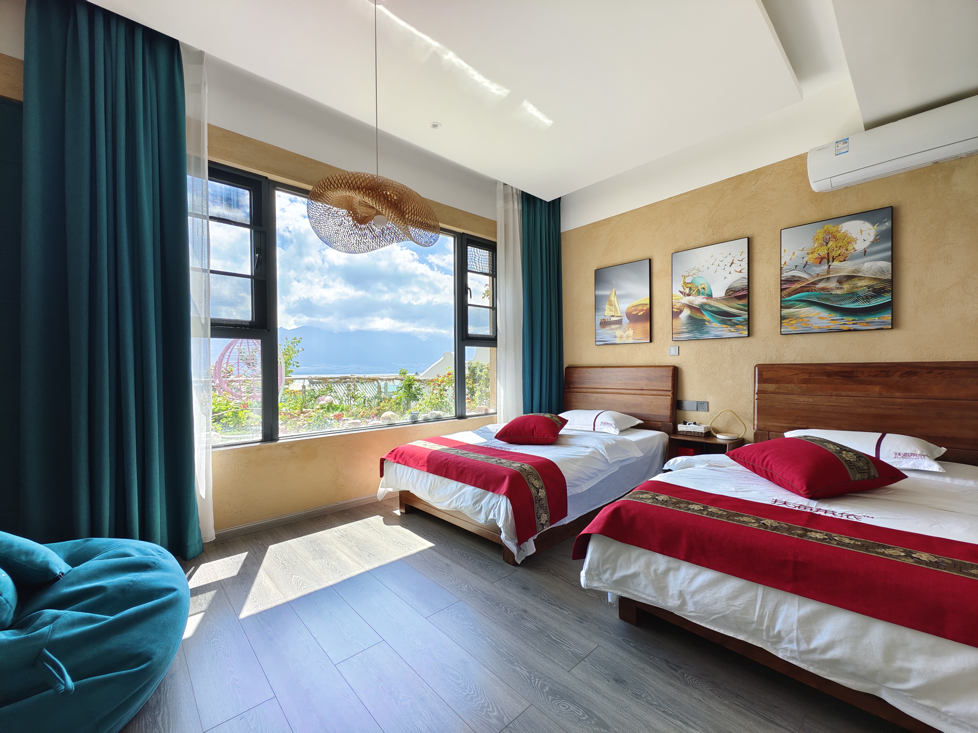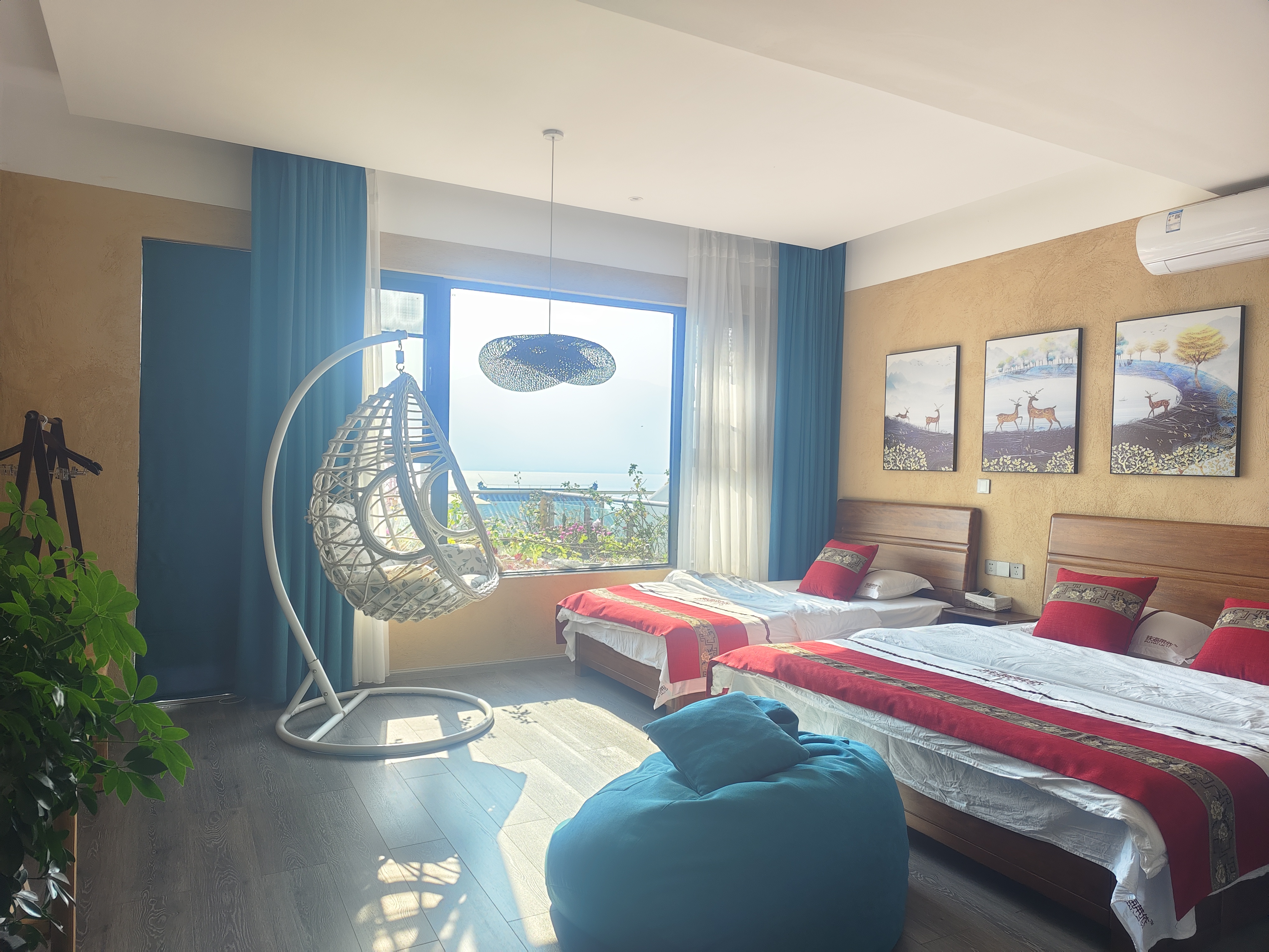 空中花園海景雙床親子房家庭房(弔籃+一線品牌智能衞浴+電動窗簾+浴缸)
