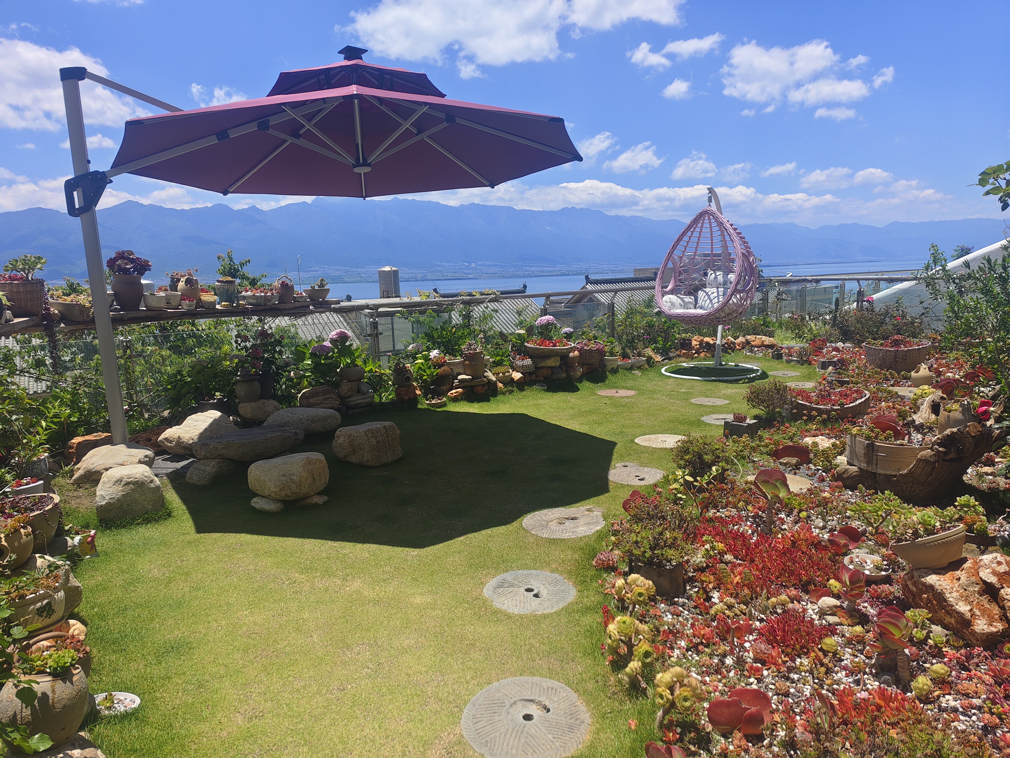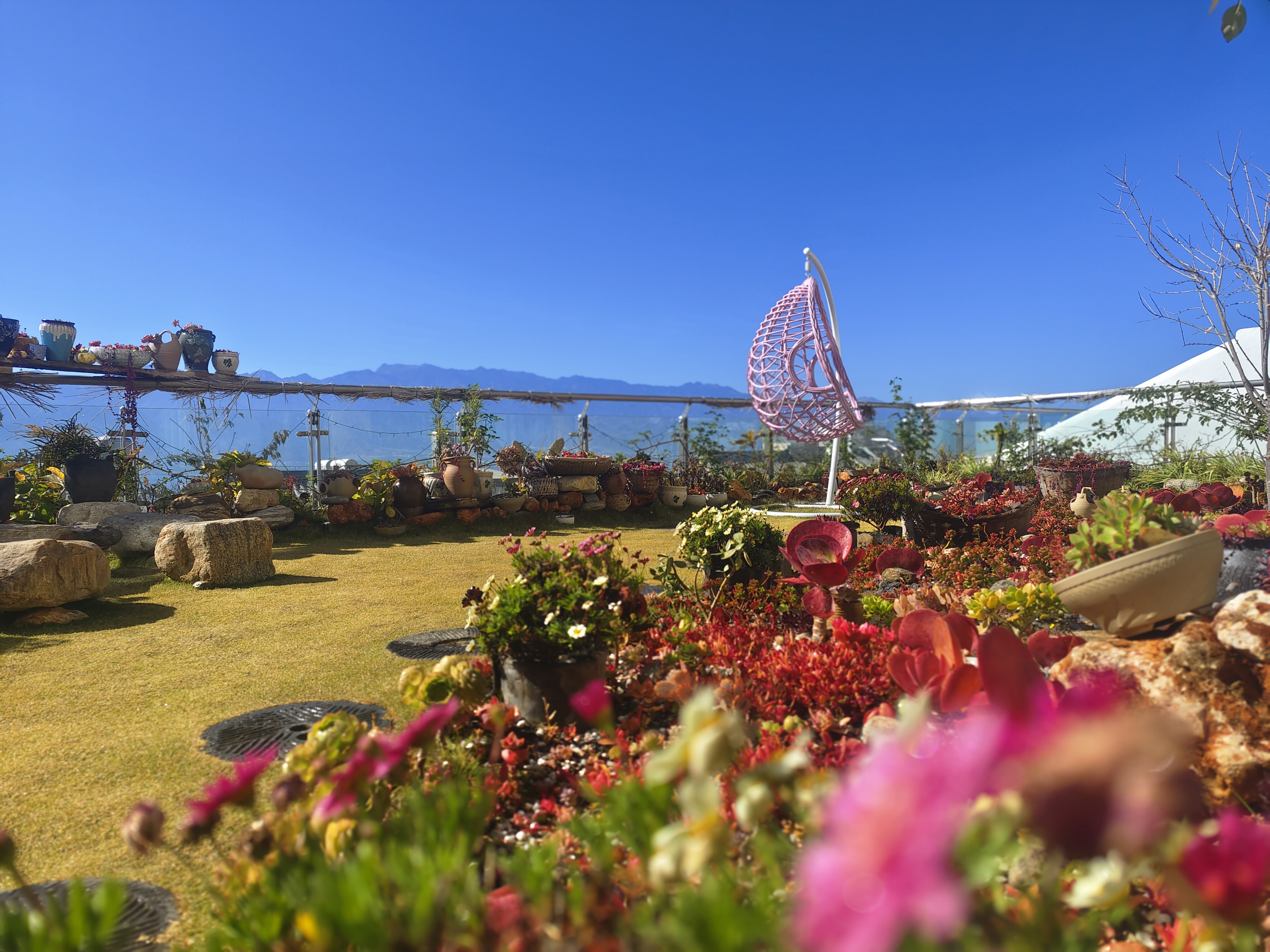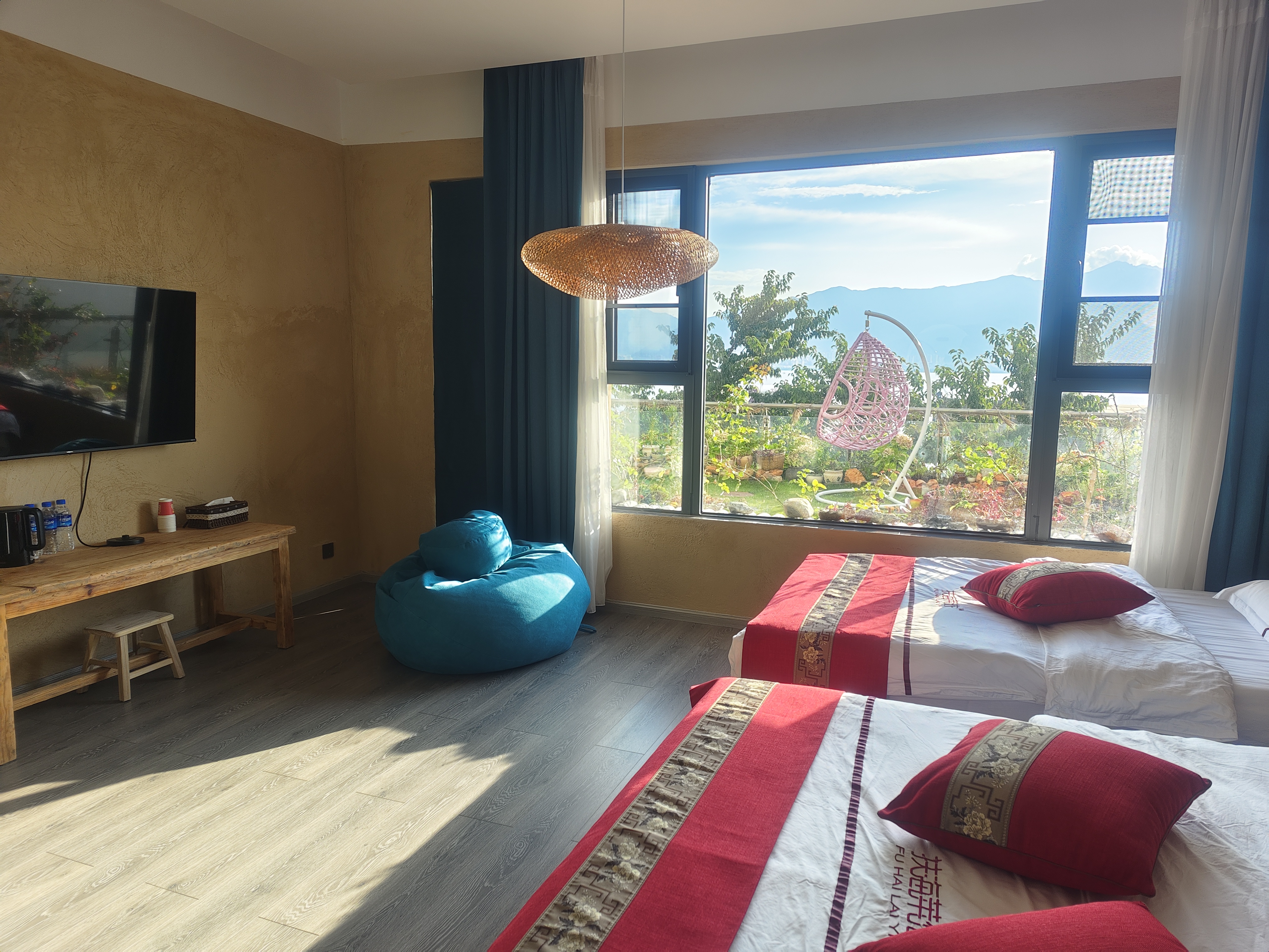 無敵海景特大床房帶海景露台弔籃鞦韆(茶桌+乳膠床墊+花園景+電動窗簾+浴缸+智能馬桶)