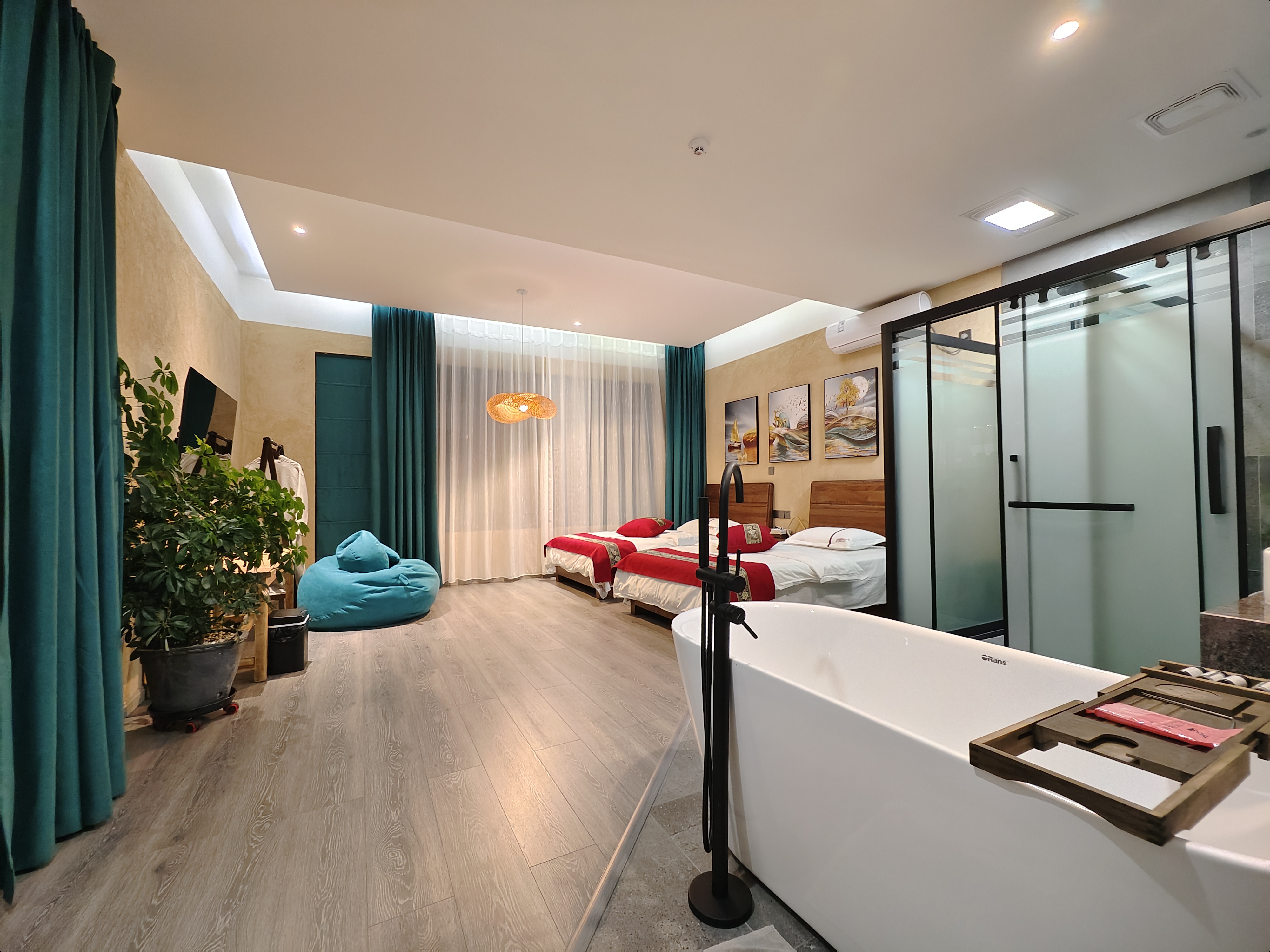 庭院花園月亮門洞海景康養智能大床房(乾濕分離+智能衞浴+浴缸+乳膠床墊)