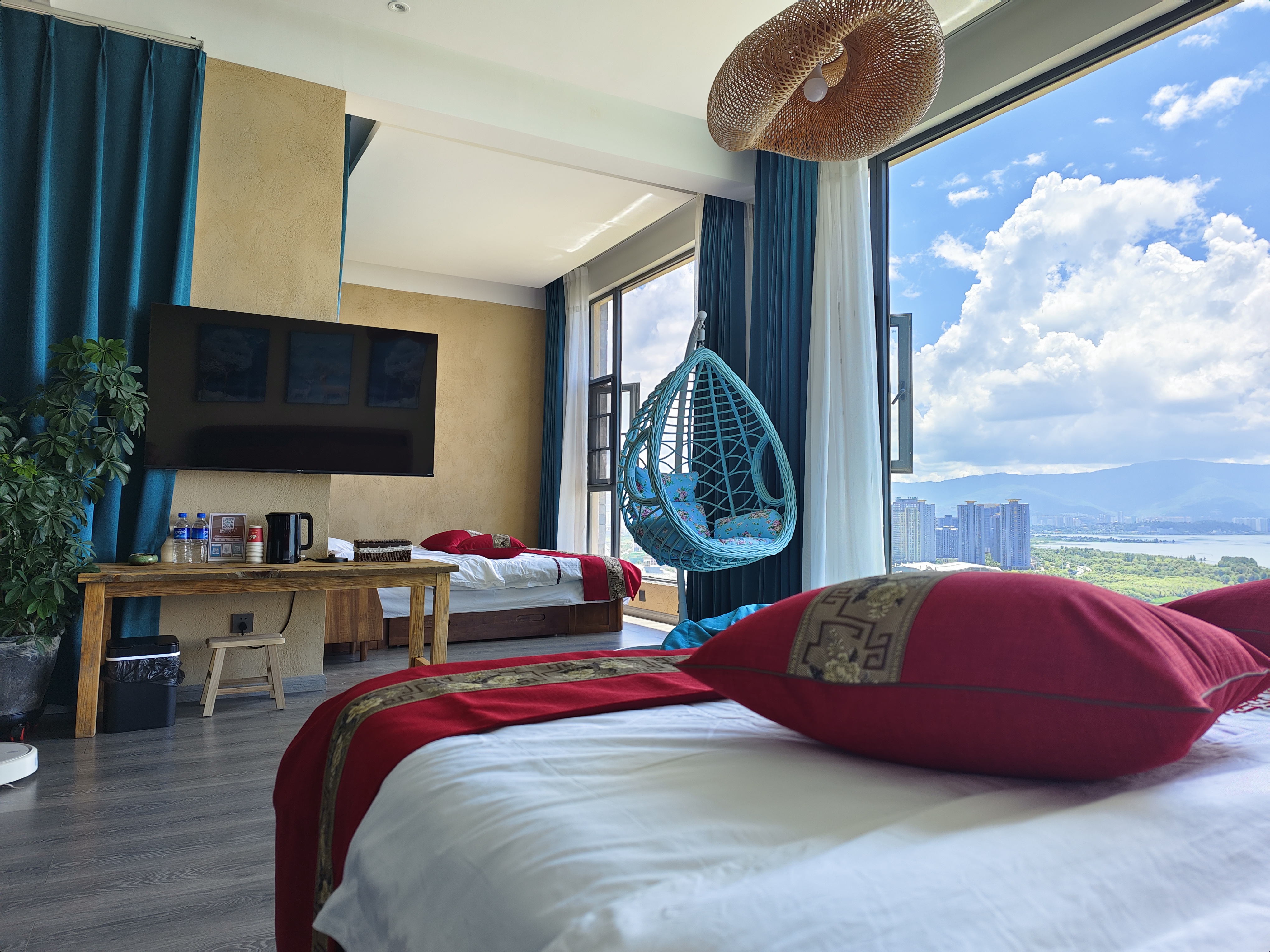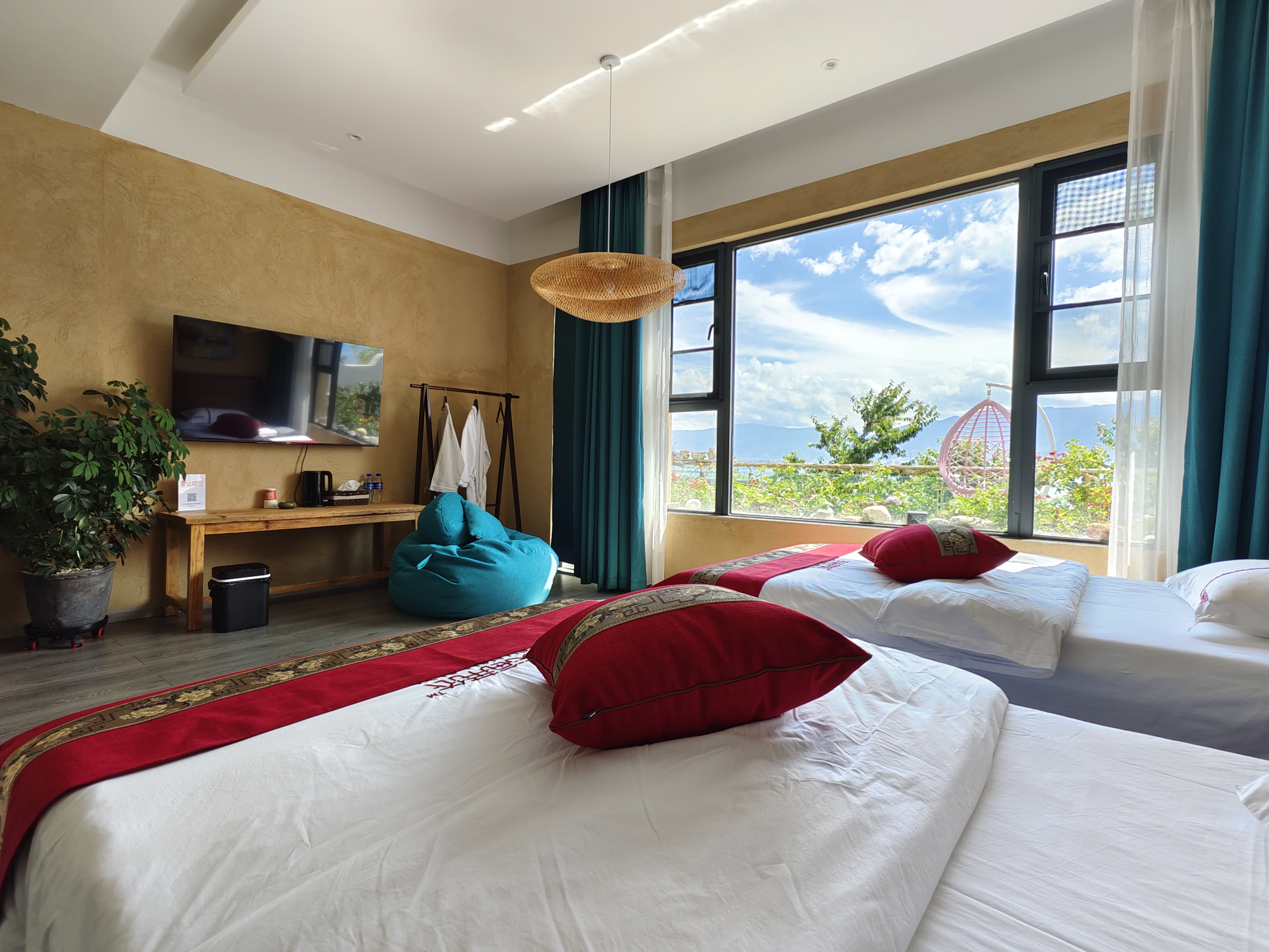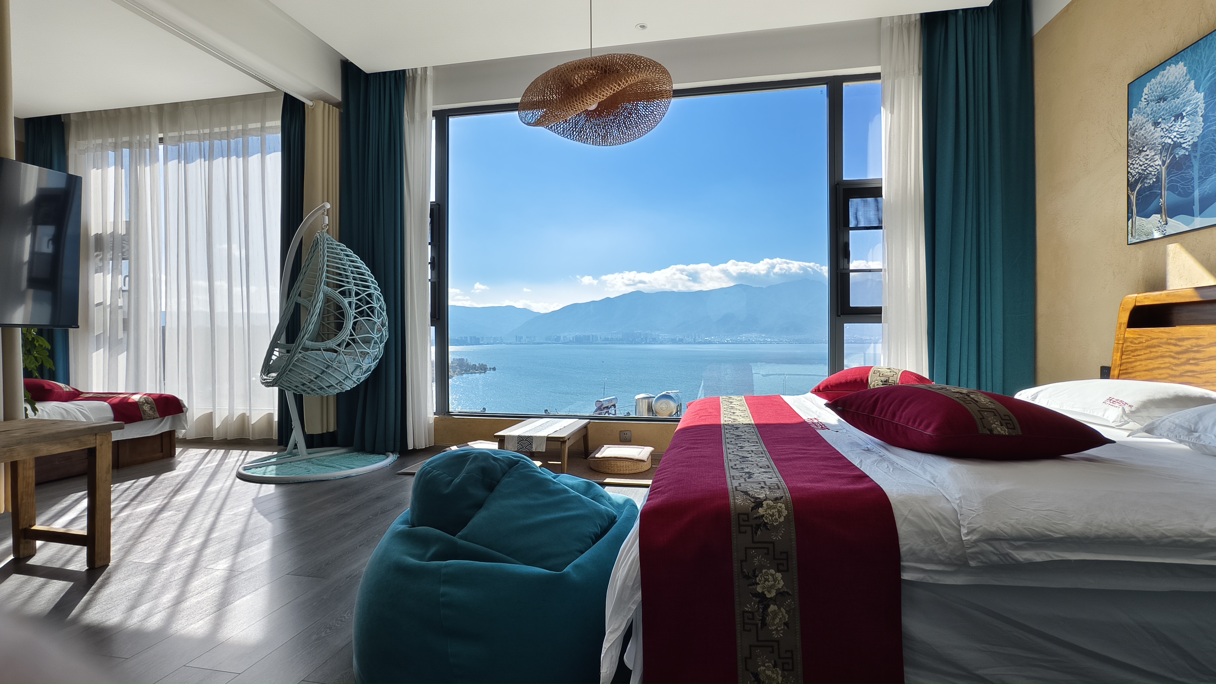 大空間全海景雙大床親子家庭房_雙大落地窗(弔籃+茶桌+智能馬桶+電動窗簾+乳膠床墊)