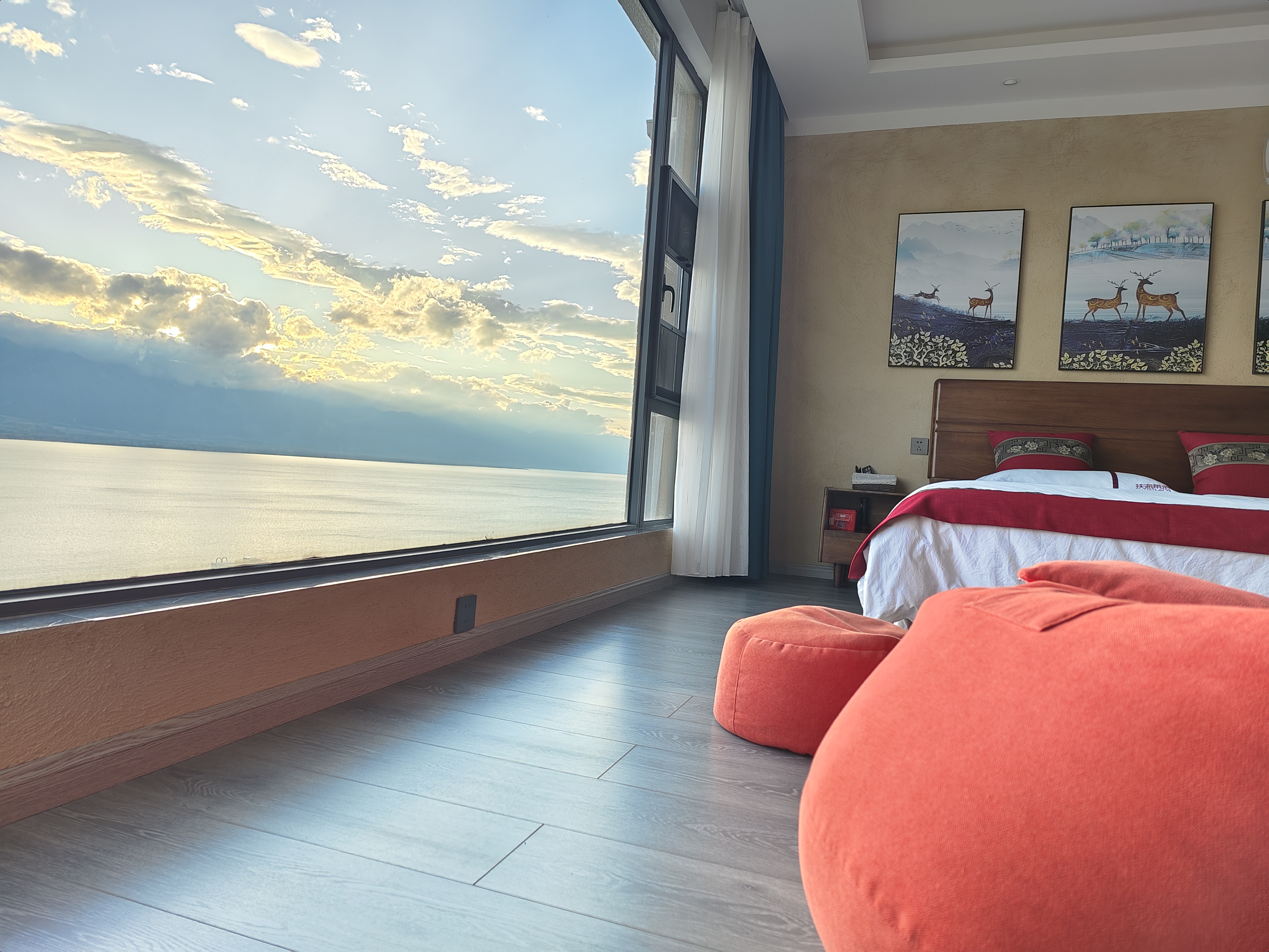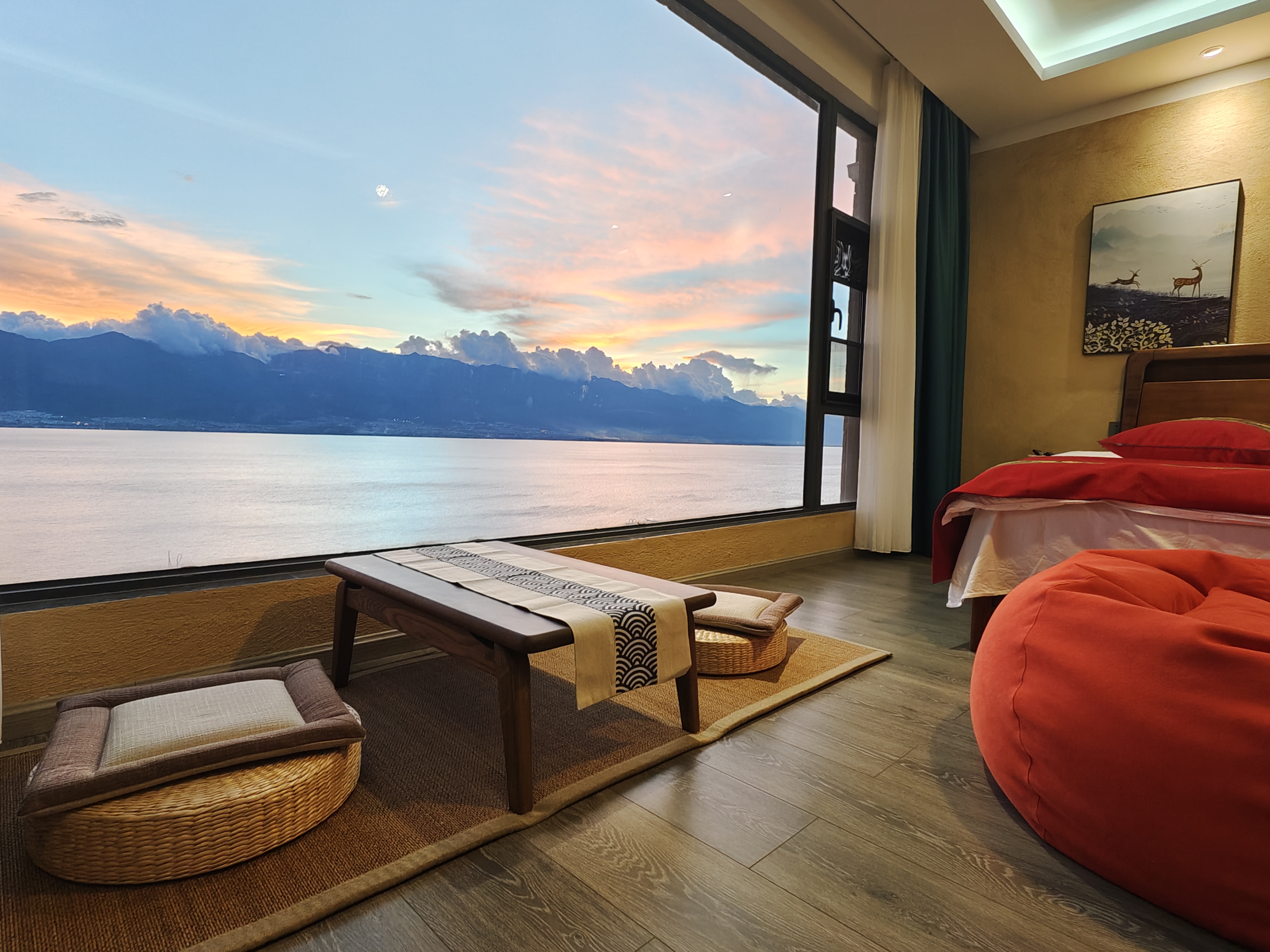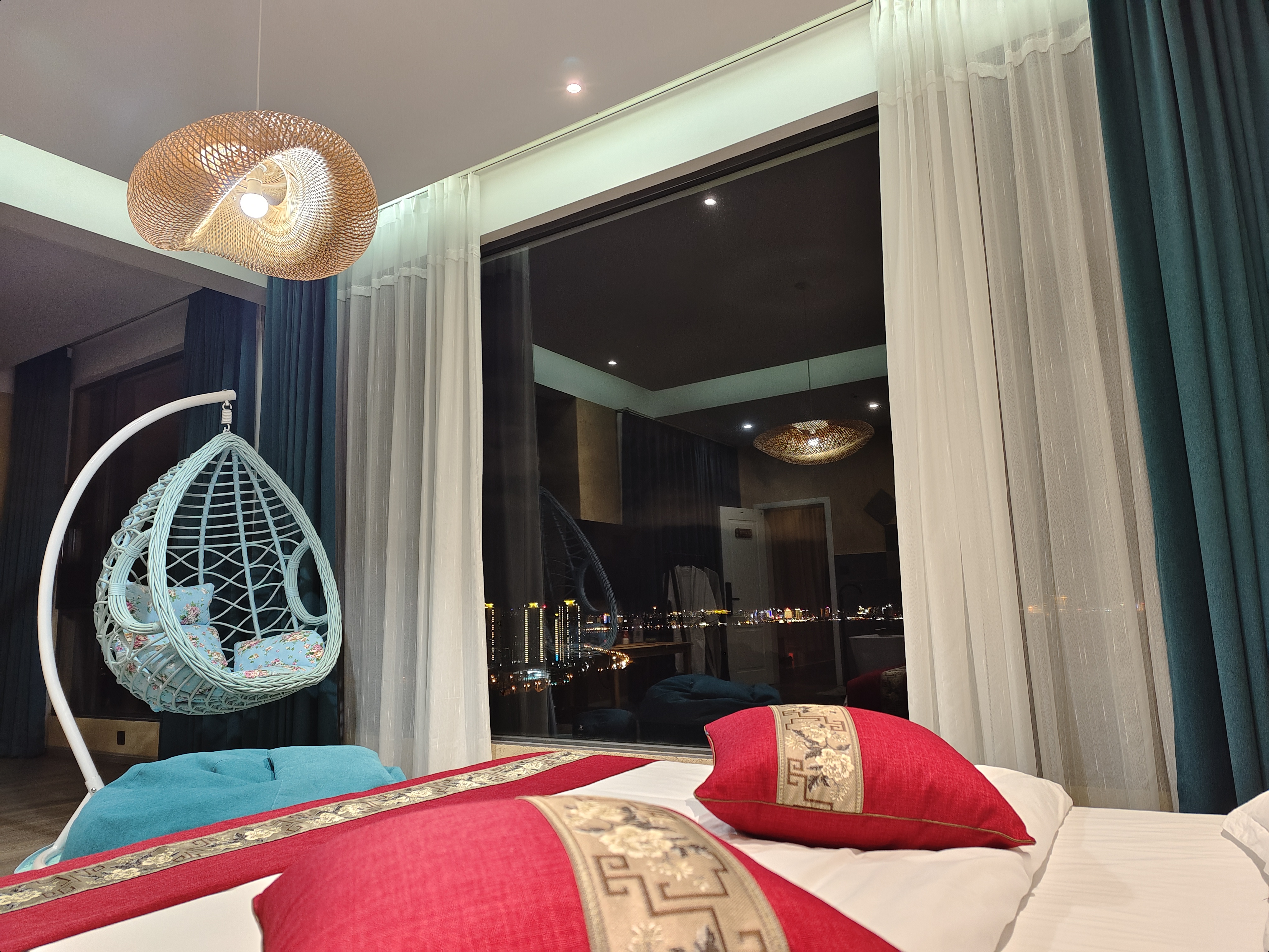大空間全海景雙大床親子家庭房_雙大落地窗(弔籃+茶桌+智能馬桶+電動窗簾+乳膠床墊)