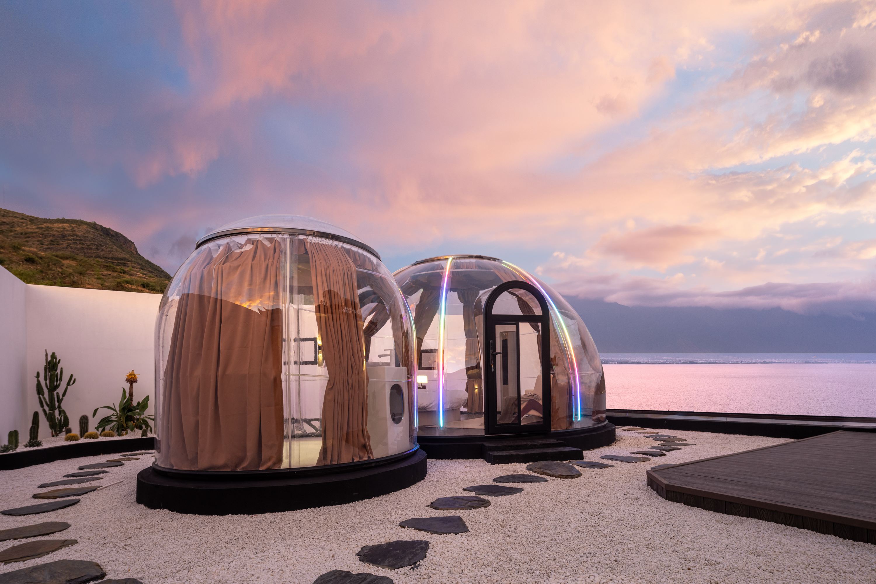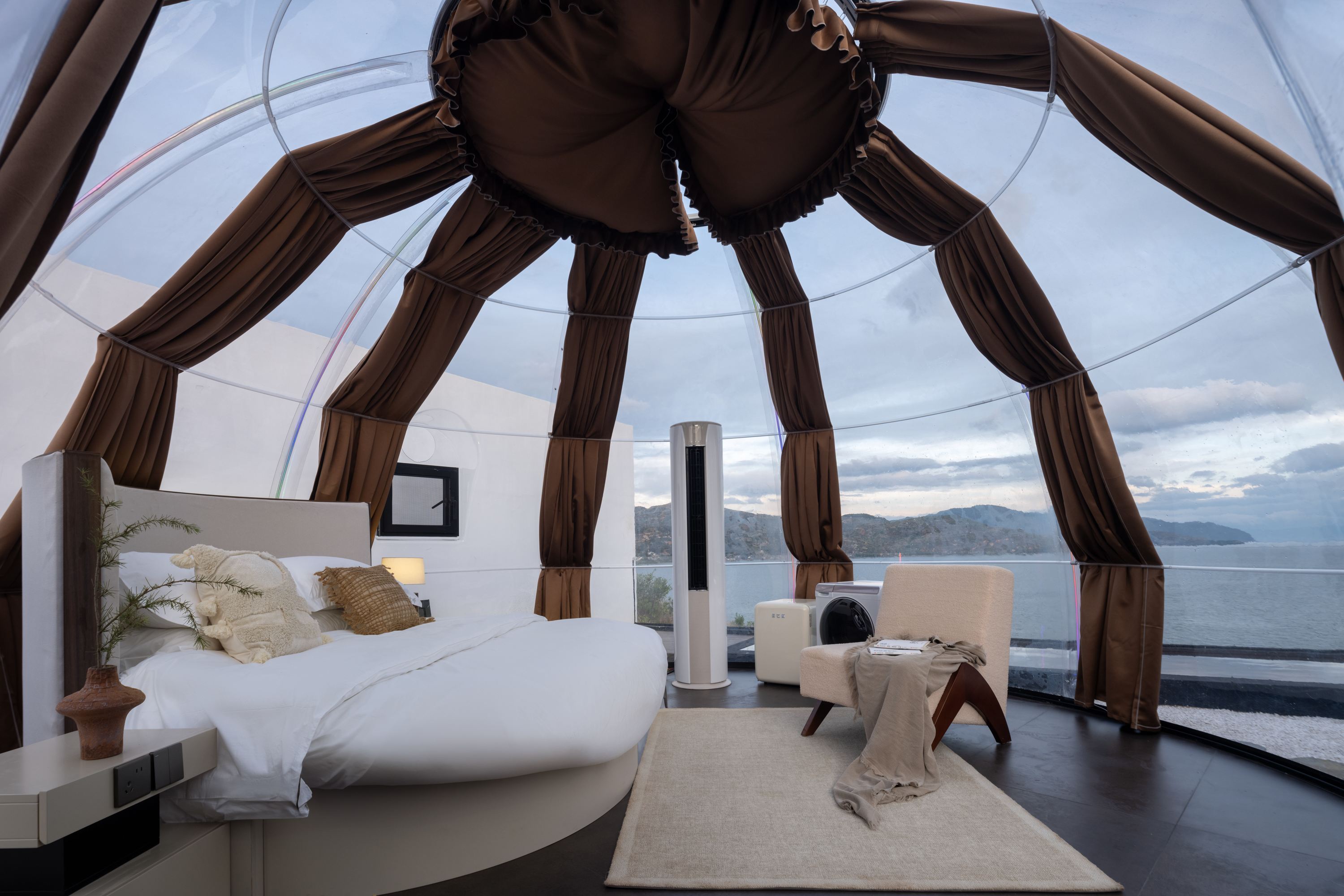 嶼月丨落日星空全海景泡泡屋(獨立私密天台+迷你冰箱+洗衣機)