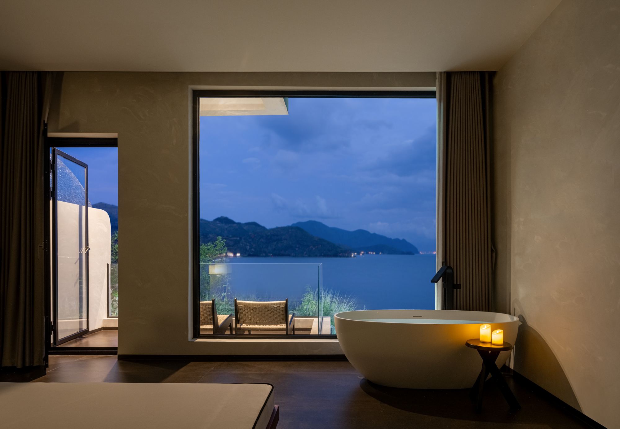 谷嶼丨朝朝暮暮海景露台大床房(4K投影+迷你冰箱+洗衣機)
