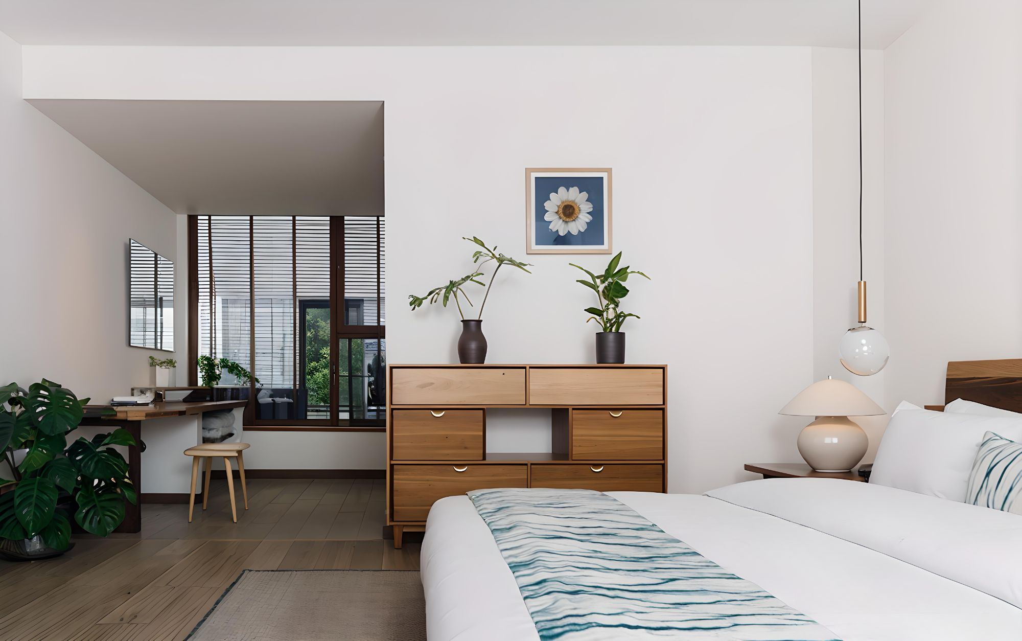 Green黛清·静宜大床房(风吟浅梦竹影斑驳园艺设计·白族蓝续扎染床品·舒达进口托腰释压天然乳胶床垫·鹅绒舒睡恒温被芯·汉斯格雅衞浴·全屋地暖)