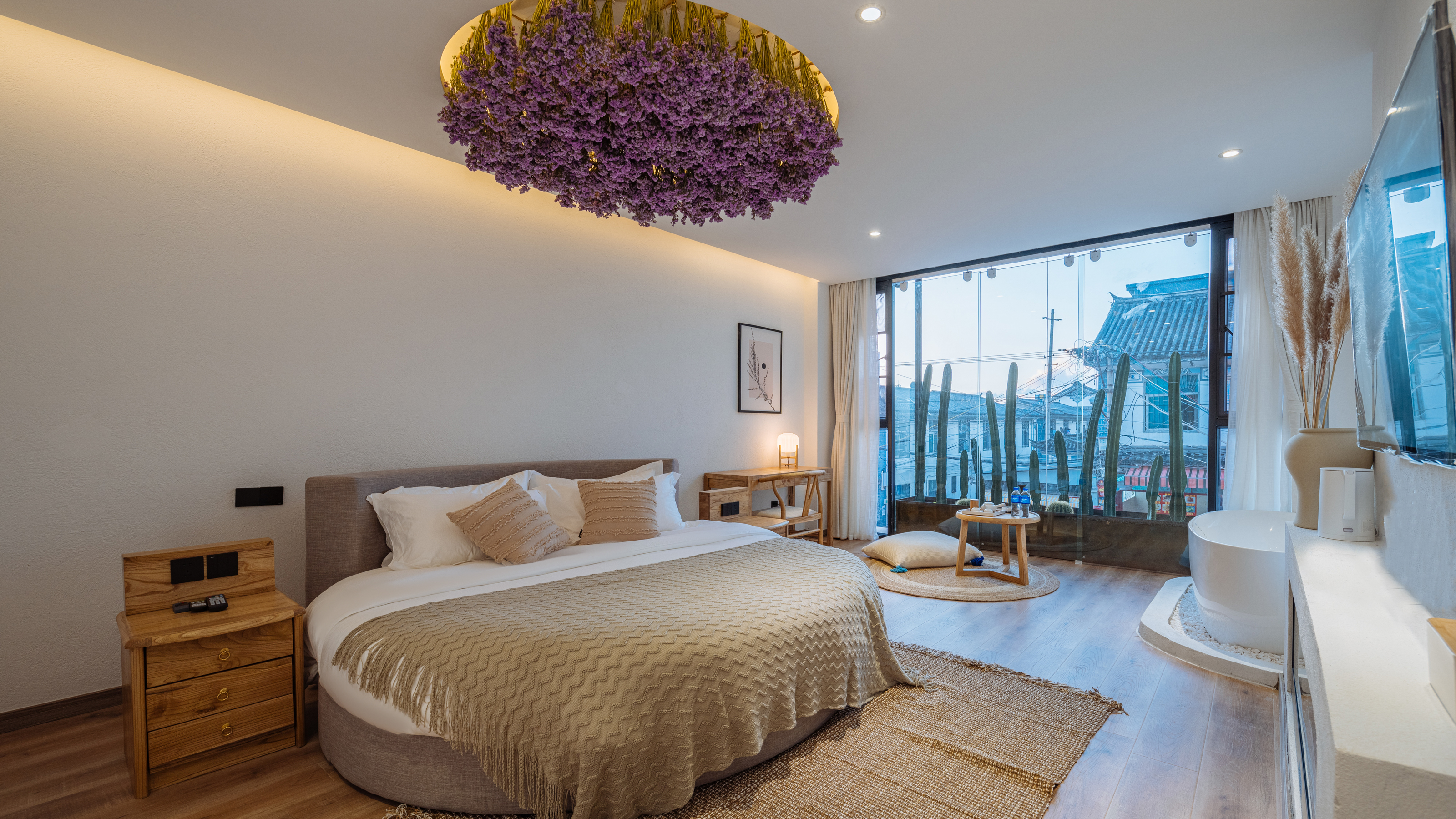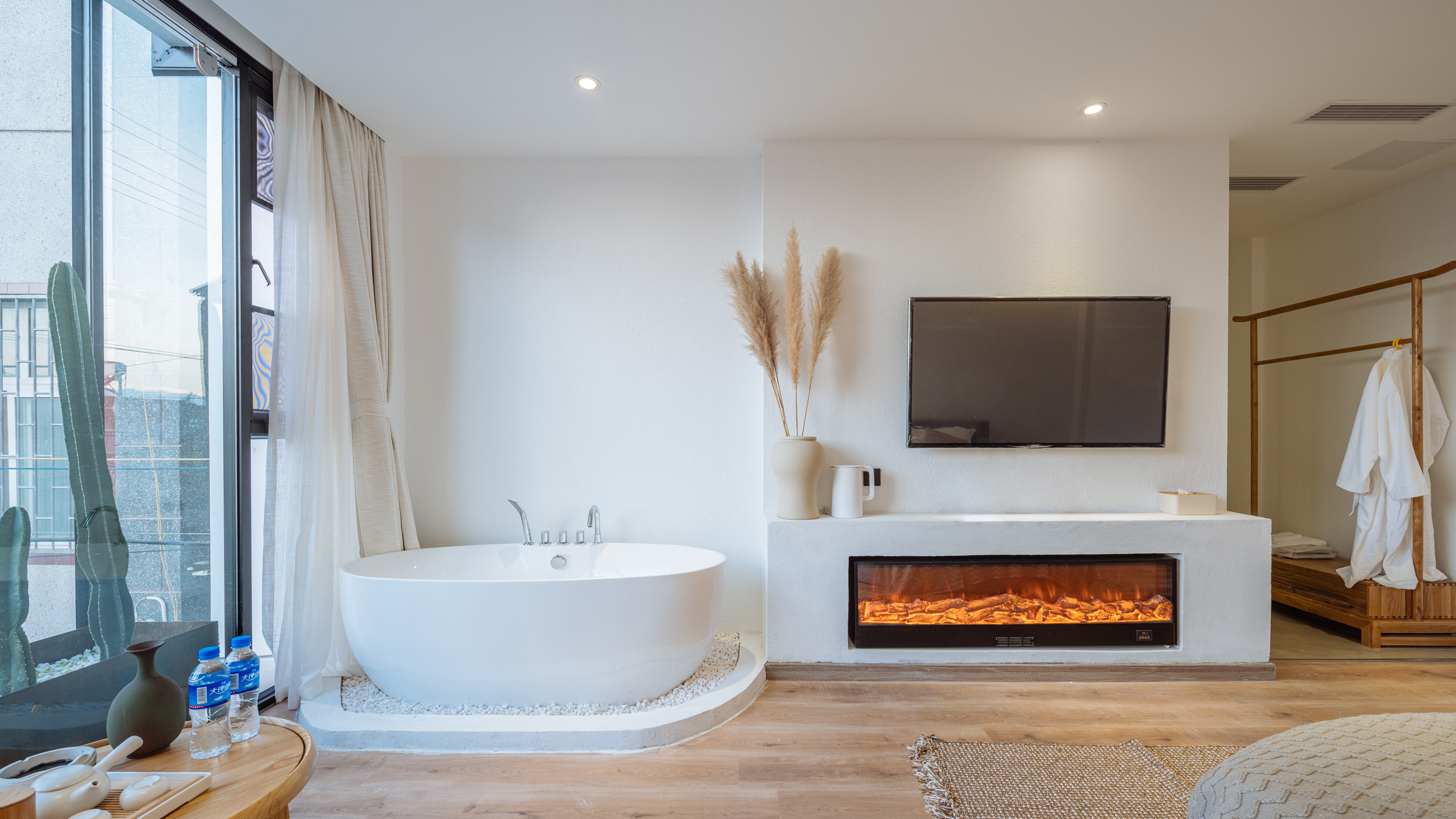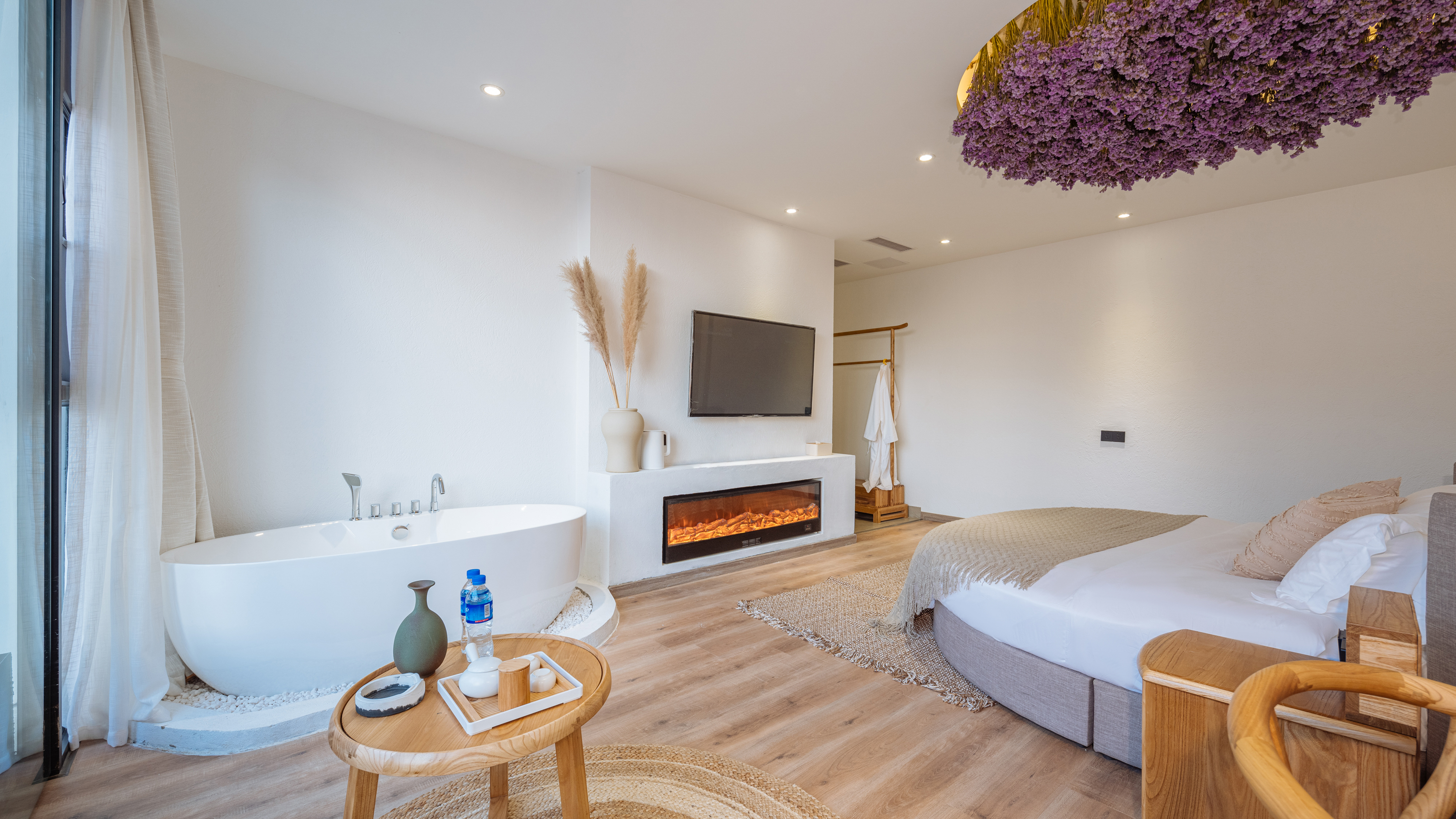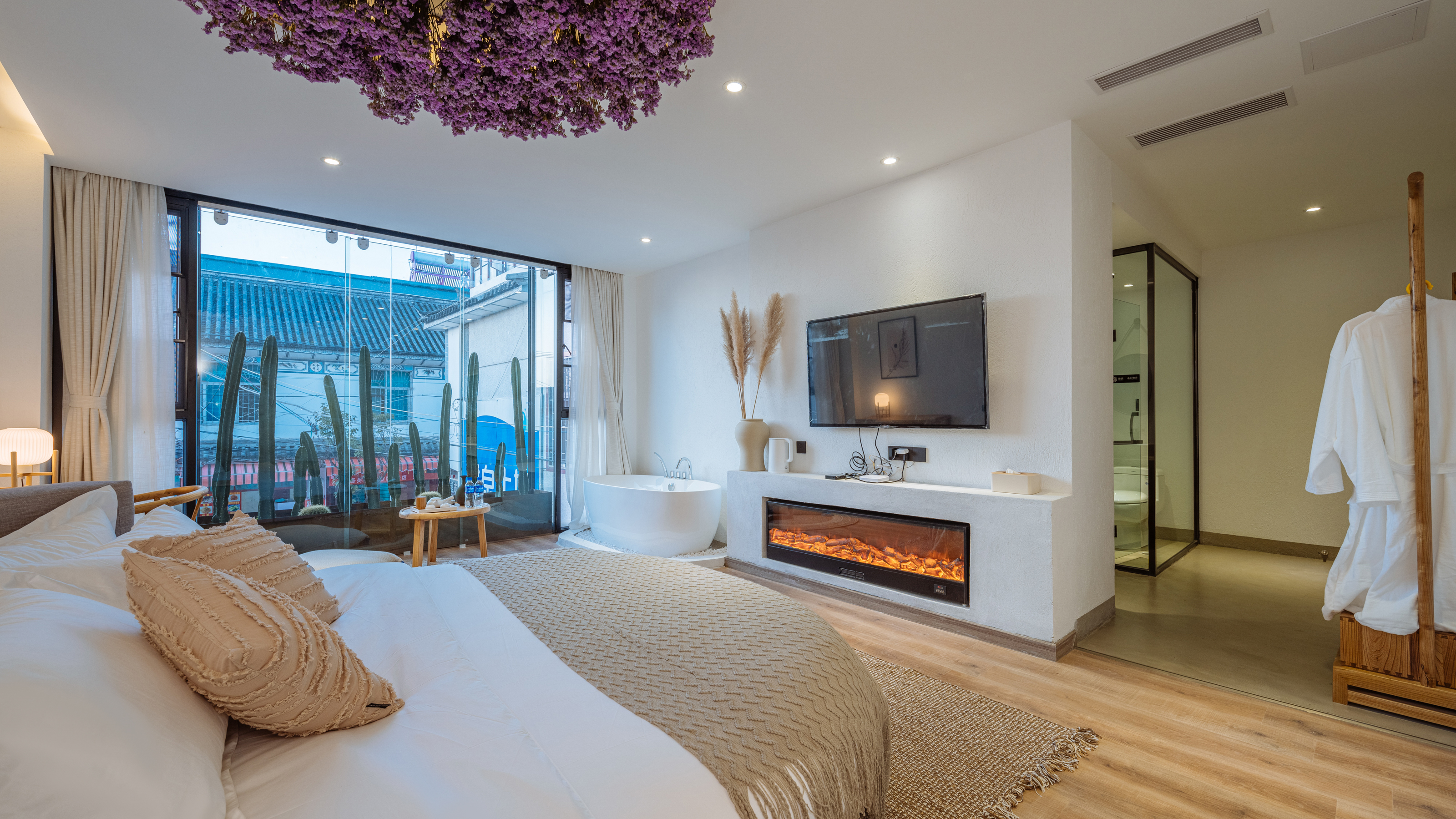 陌上花开·蜜月圆床房?浴缸·壁炉·全景落地窗·冰箱