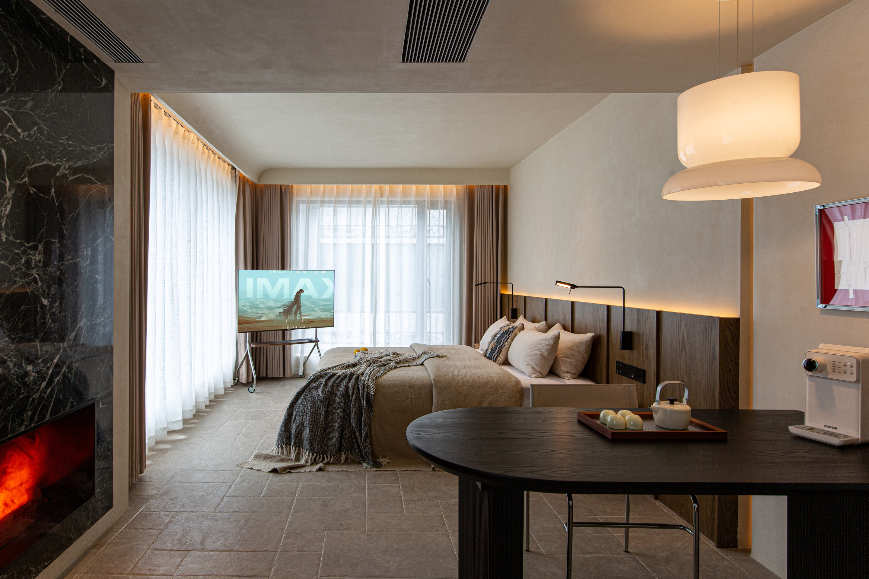 岚丨隐奢大床房【全屋智能客控丨智能马桶丨加湿壁炉丨冰箱】(南院)
