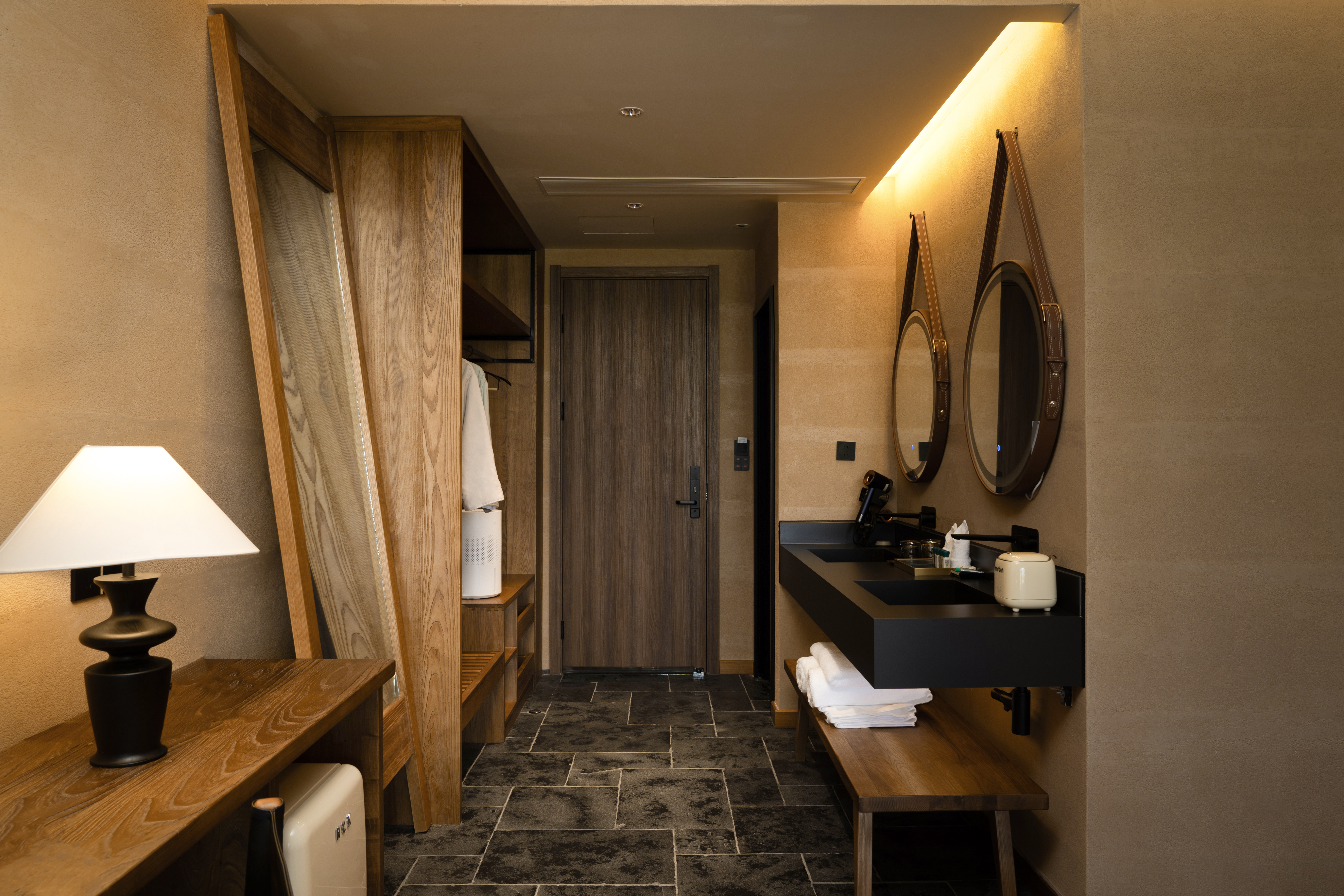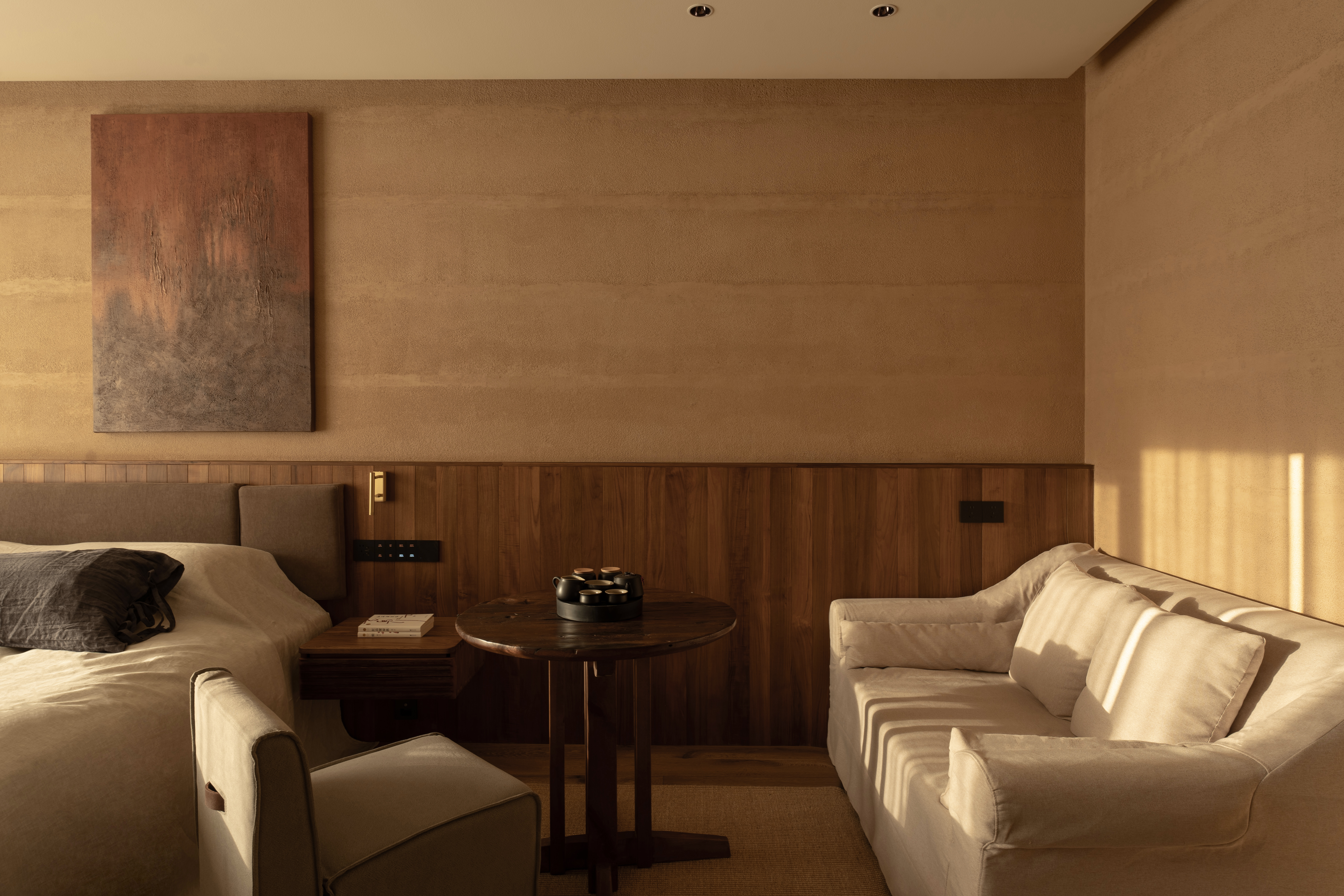 浮影·泡池陽台大床房-[古木傢俱-茶空間]