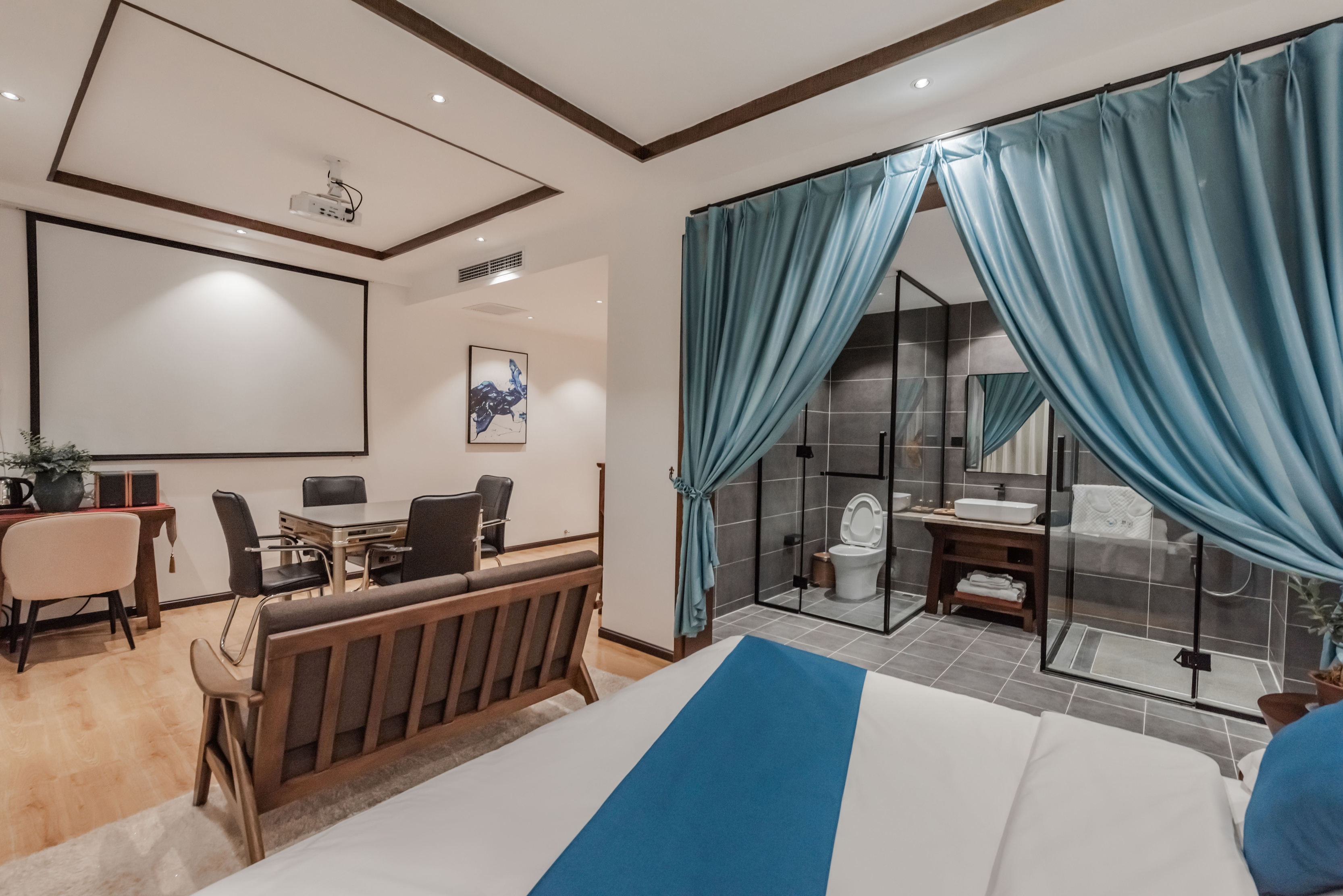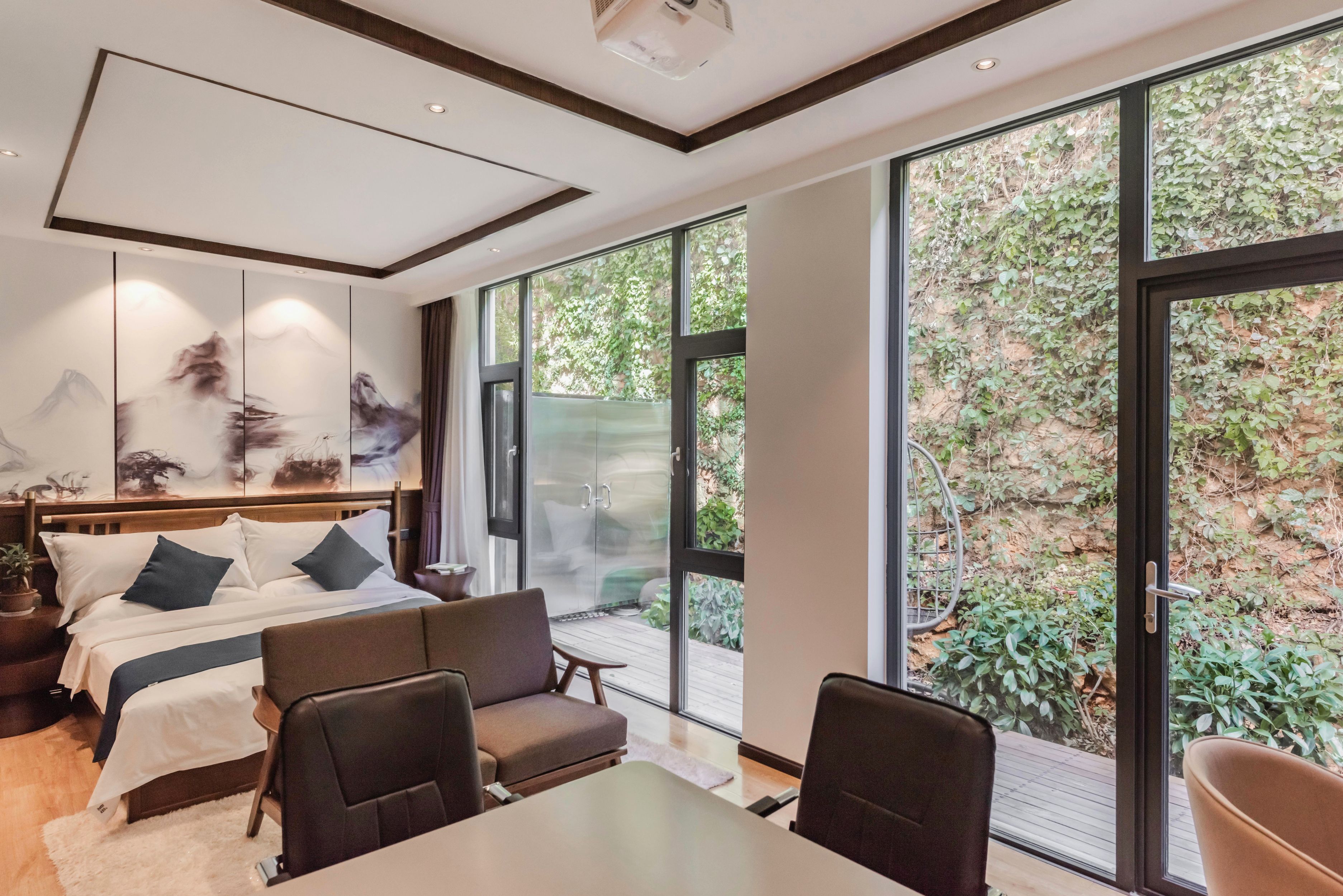 山景花園投影大床房【零壓床墊|定製傢俱】