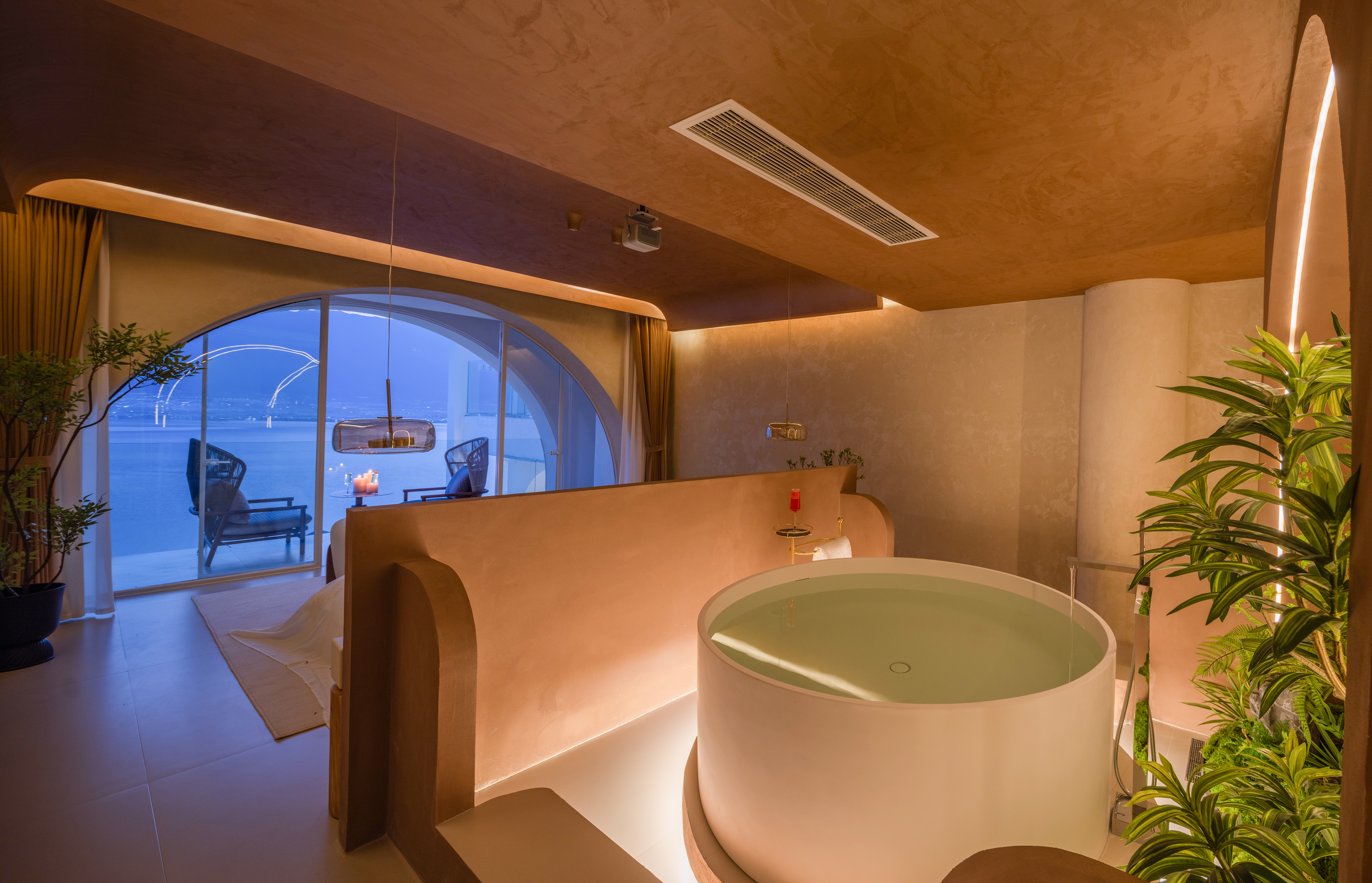 林海-海景露台浴缸大床房【觀海浴缸|金可兒床墊|戴森吹風機|馬歇爾音響|智能客控|智能馬桶|投影儀|迷你冰箱】