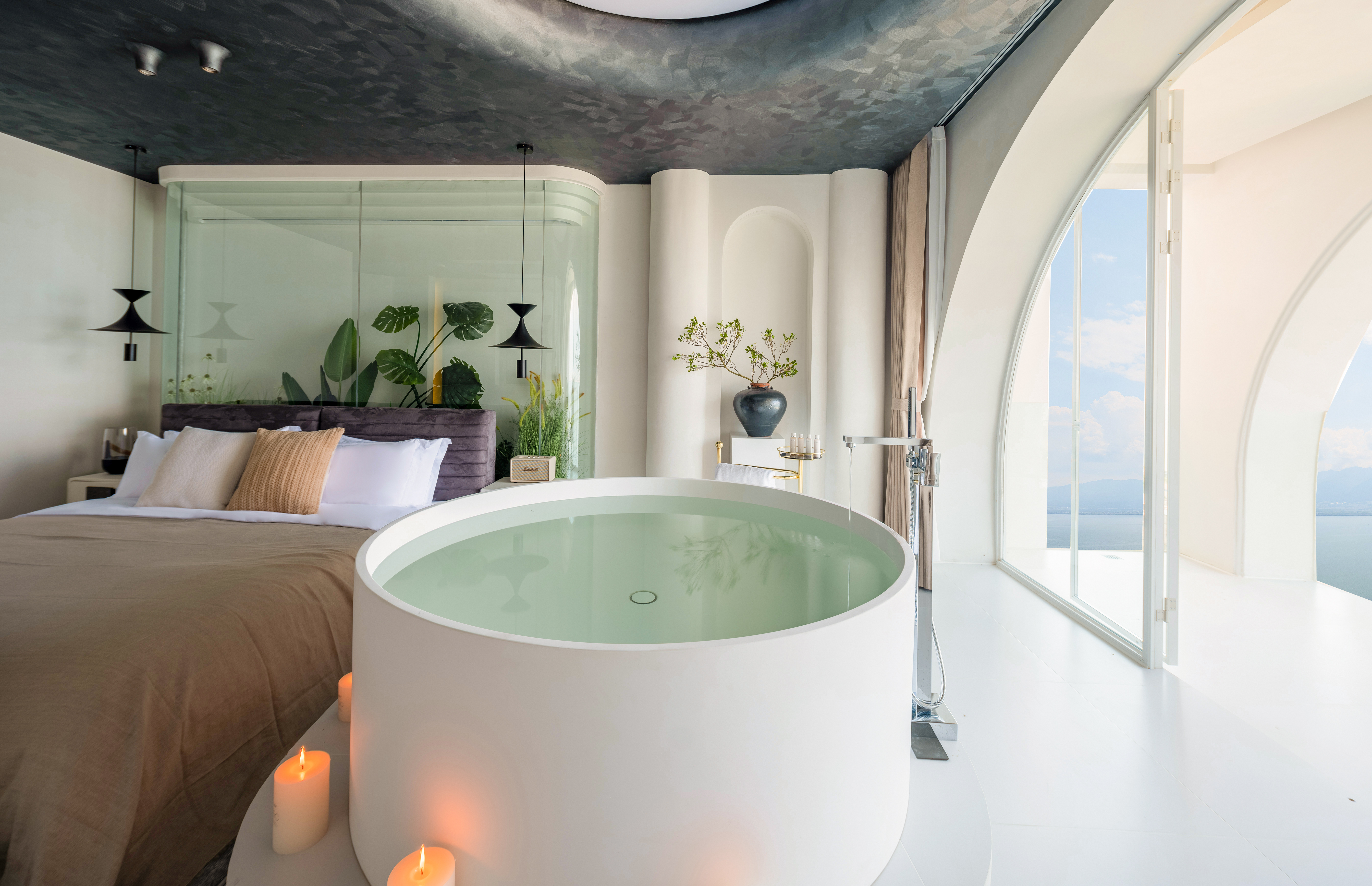 雲崖-海景露台浴缸大床房【觀海浴缸|金可兒床墊|戴森吹風機|馬歇爾音響|智能客控|智能馬桶|迷你冰箱】