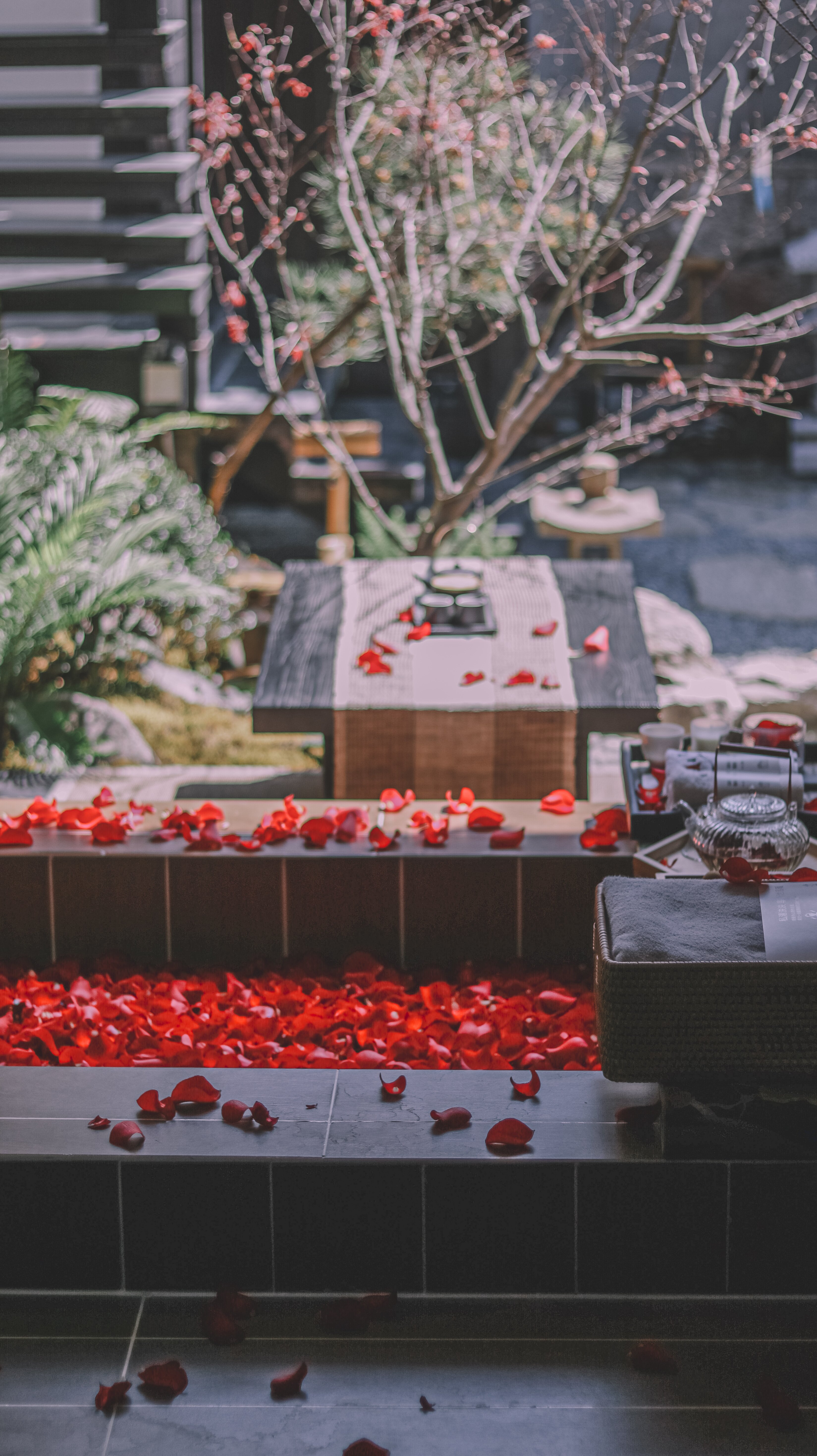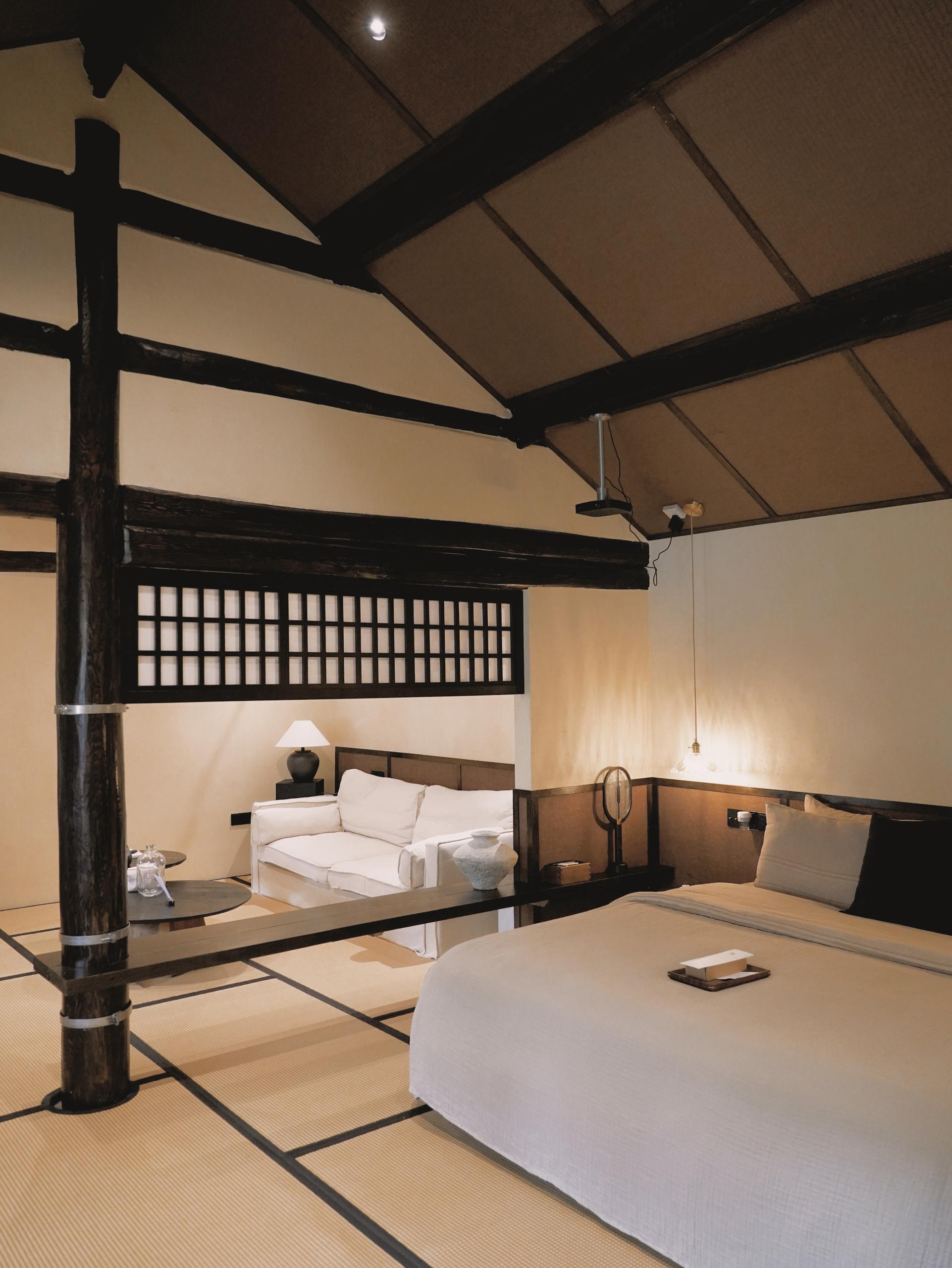 柒號|山月行秋|園景私湯大床房|投影|小眾禪院|禪意美學|侘寂風