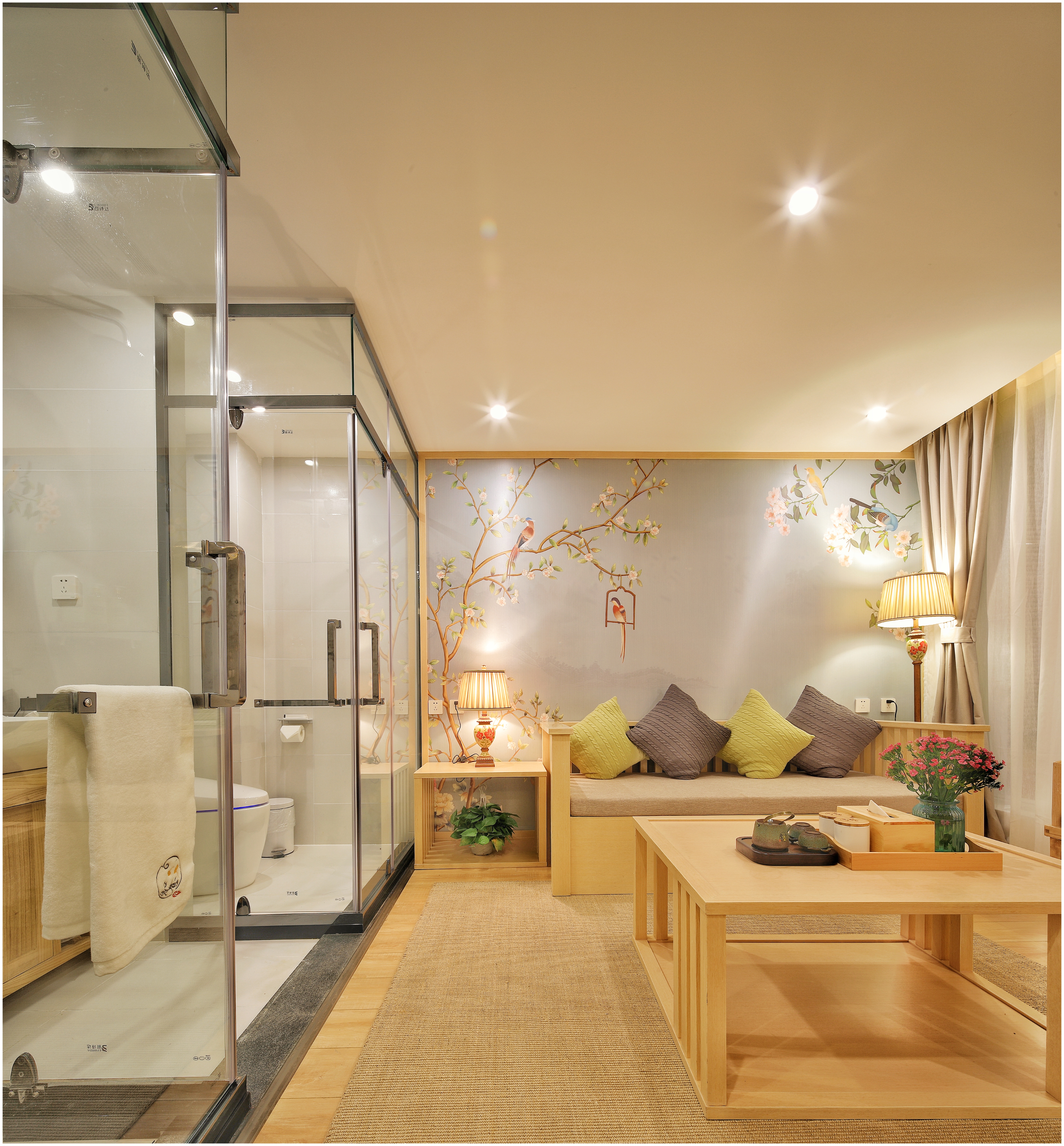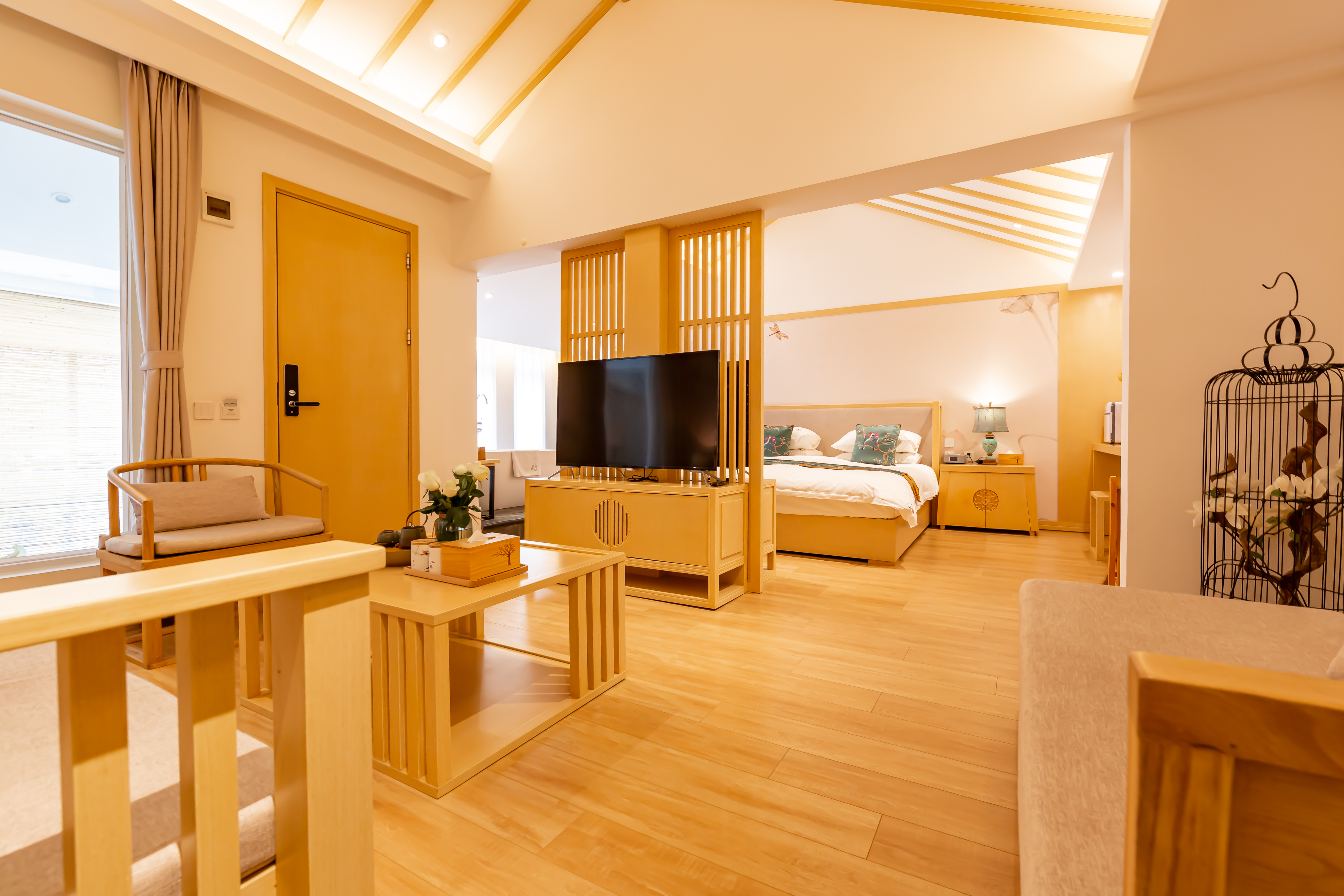 夏花超大床客廳套房【慕思床墊+COCO-MAT床品+Toto智能馬桶衞浴+超大浴缸+輕奢客廳】