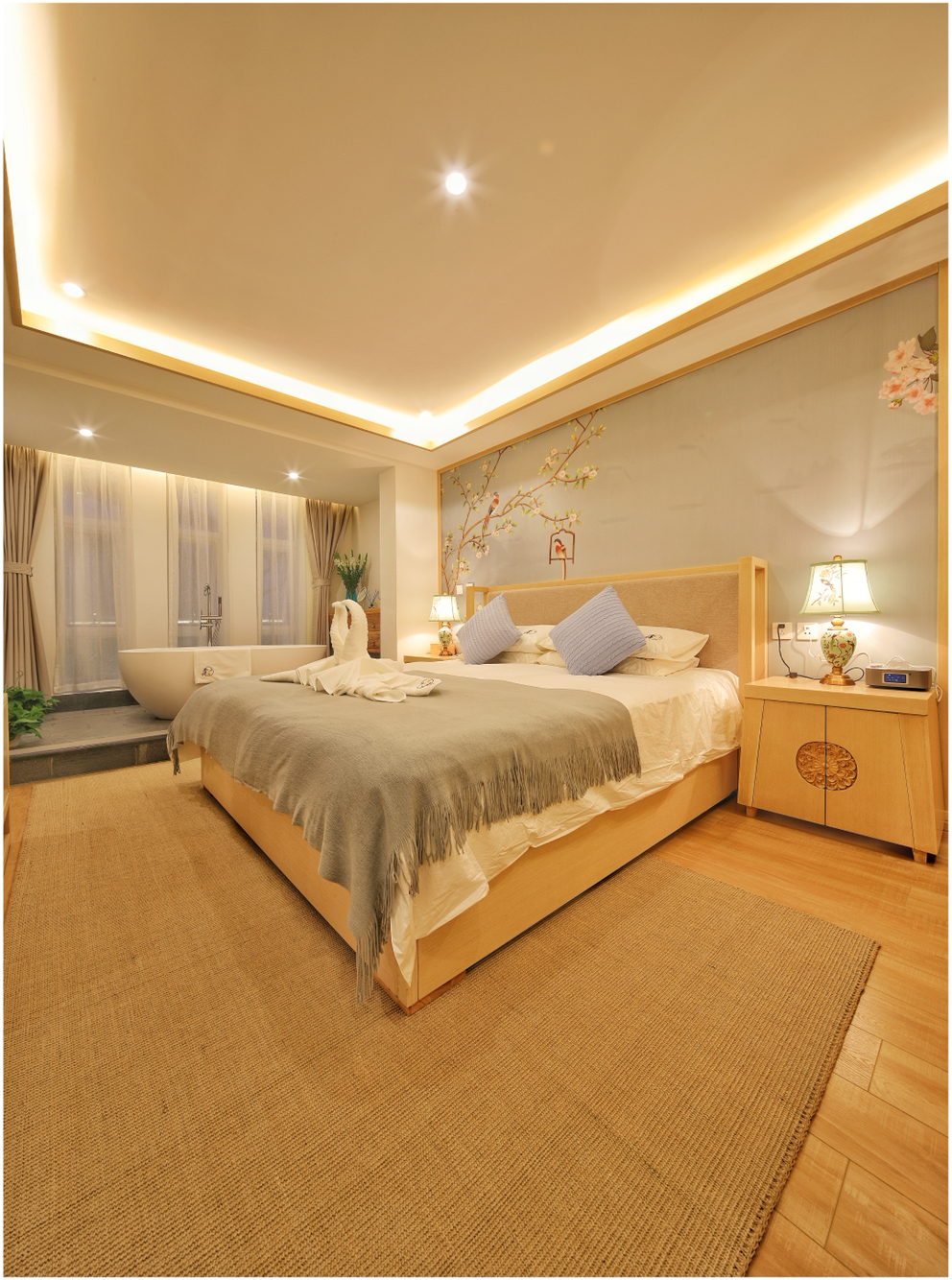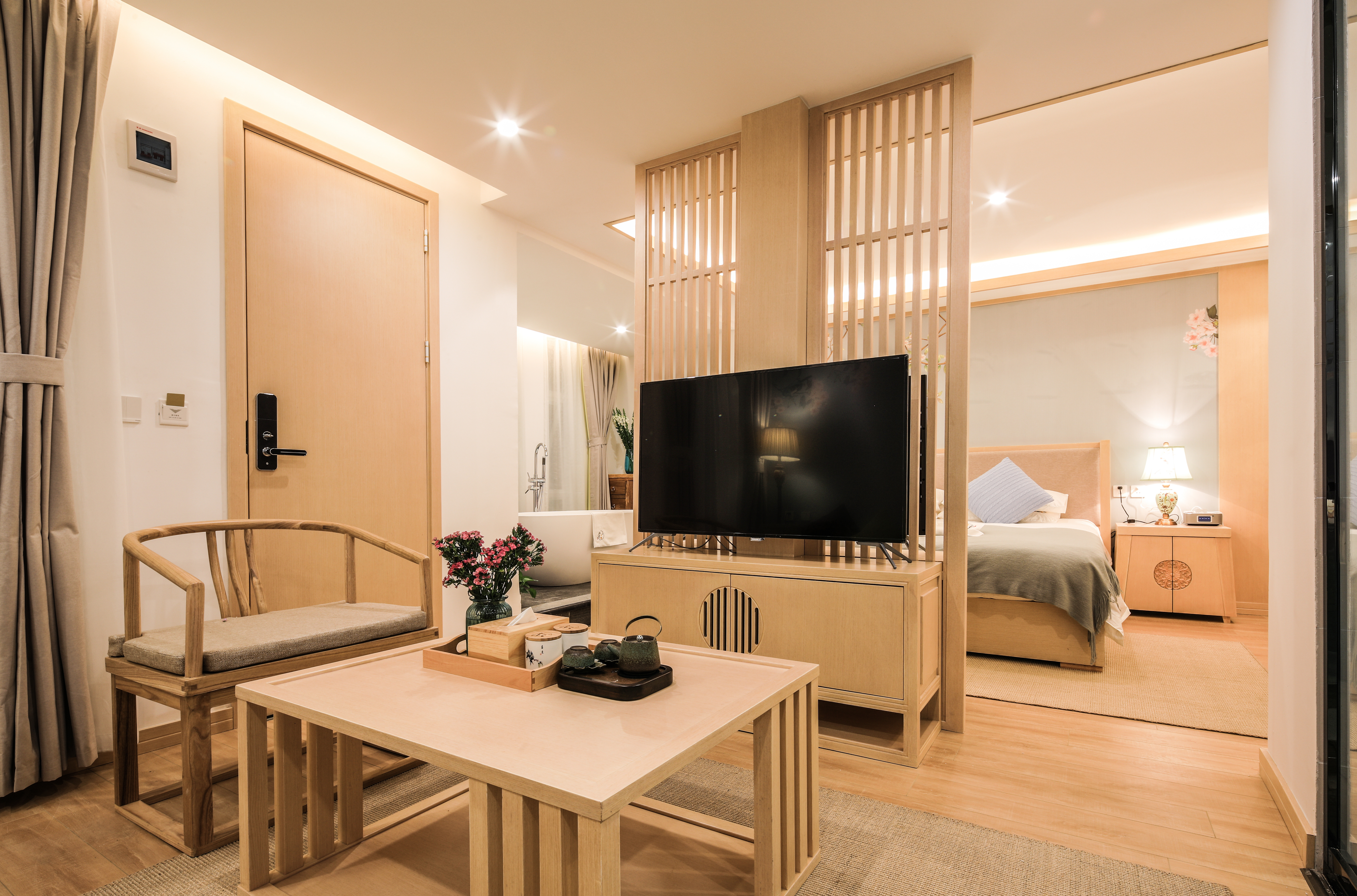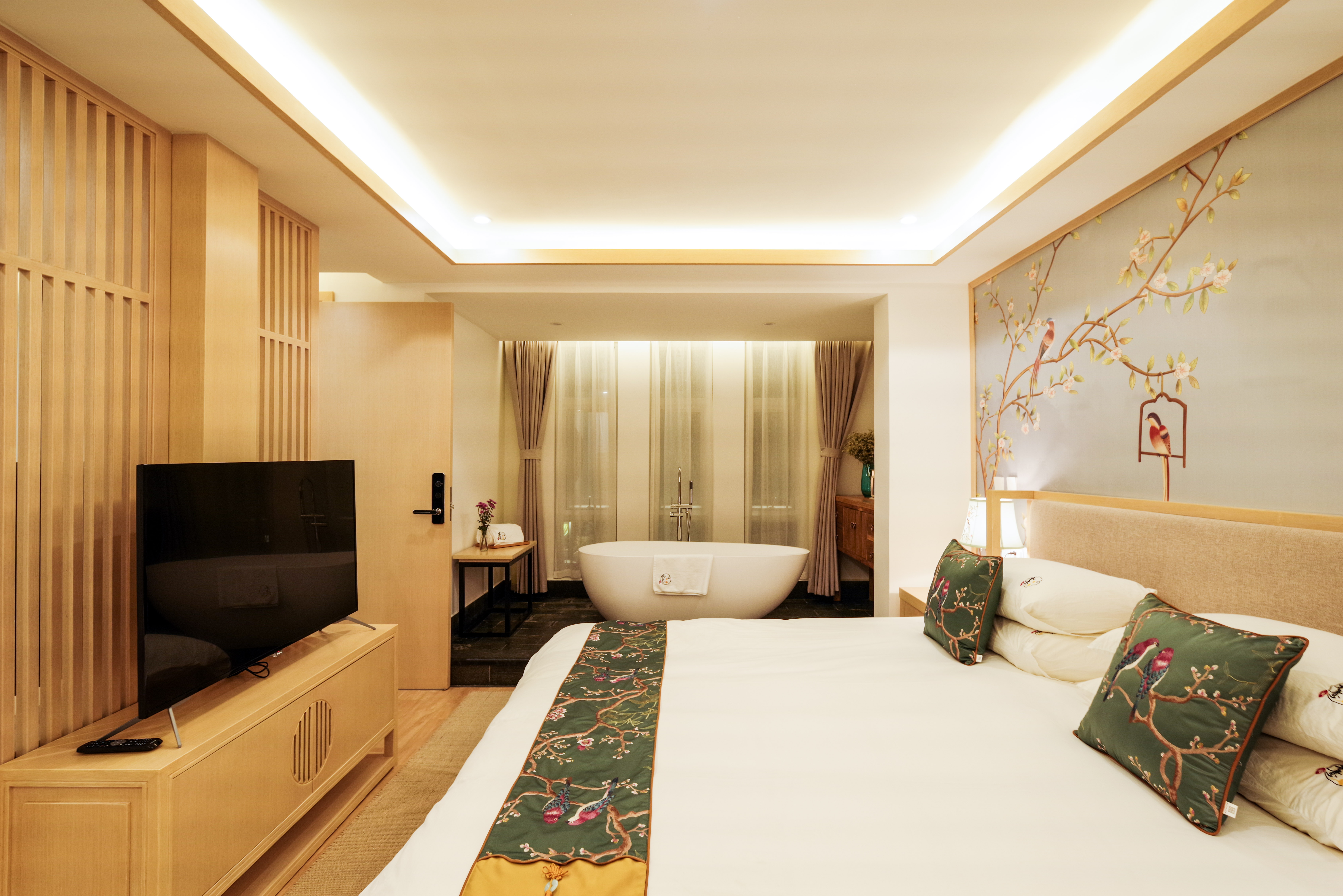 春風大床套房【慕思床墊+COCO-MAT床品+Toto智能馬桶衞浴+超大浴缸+·輕奢客廳】