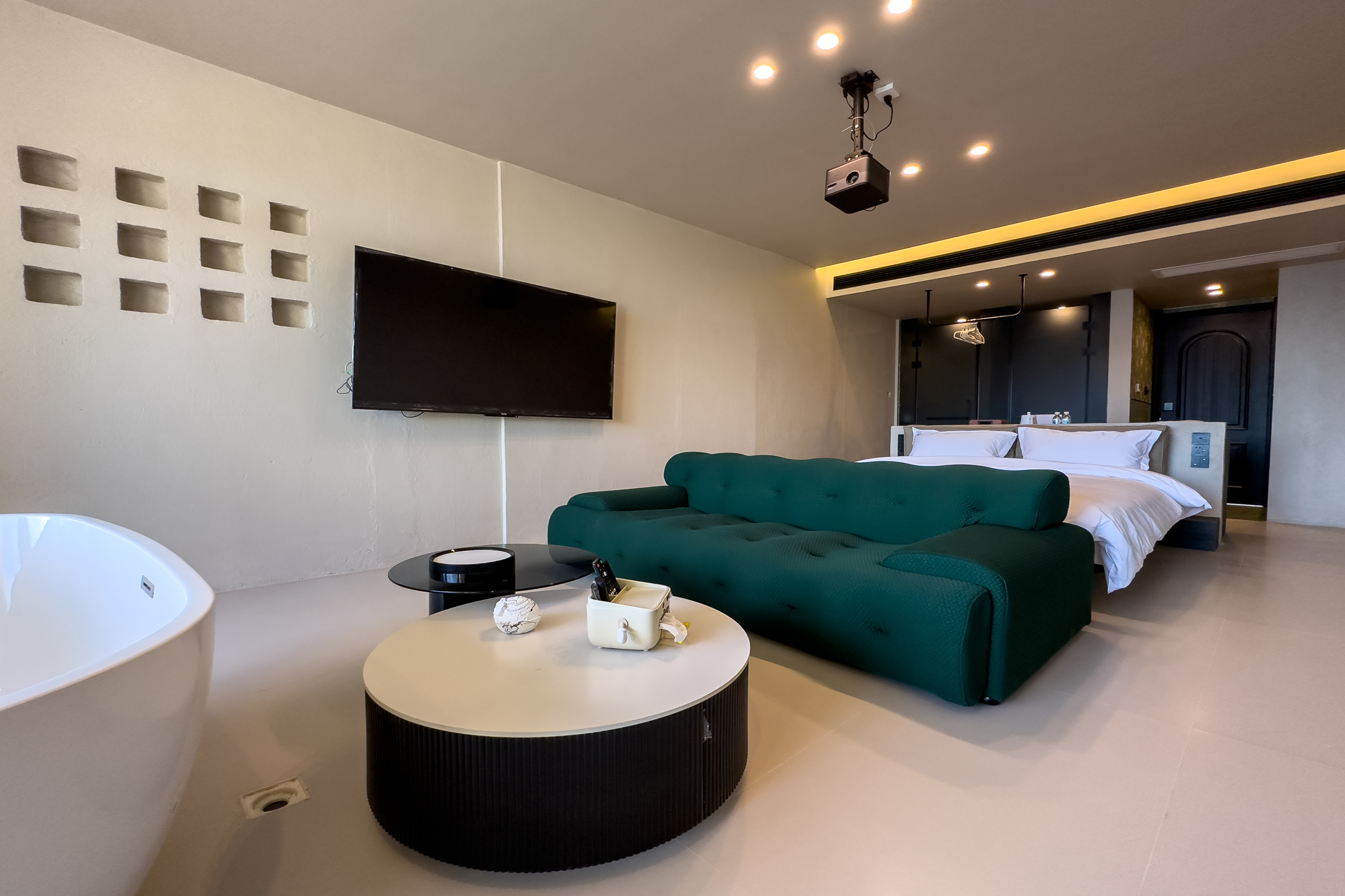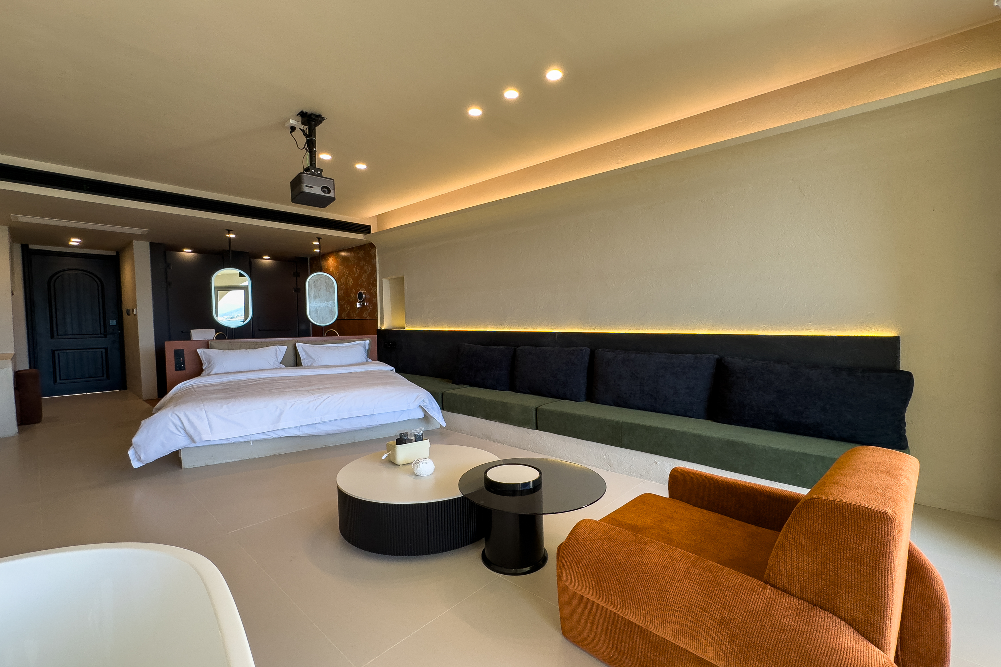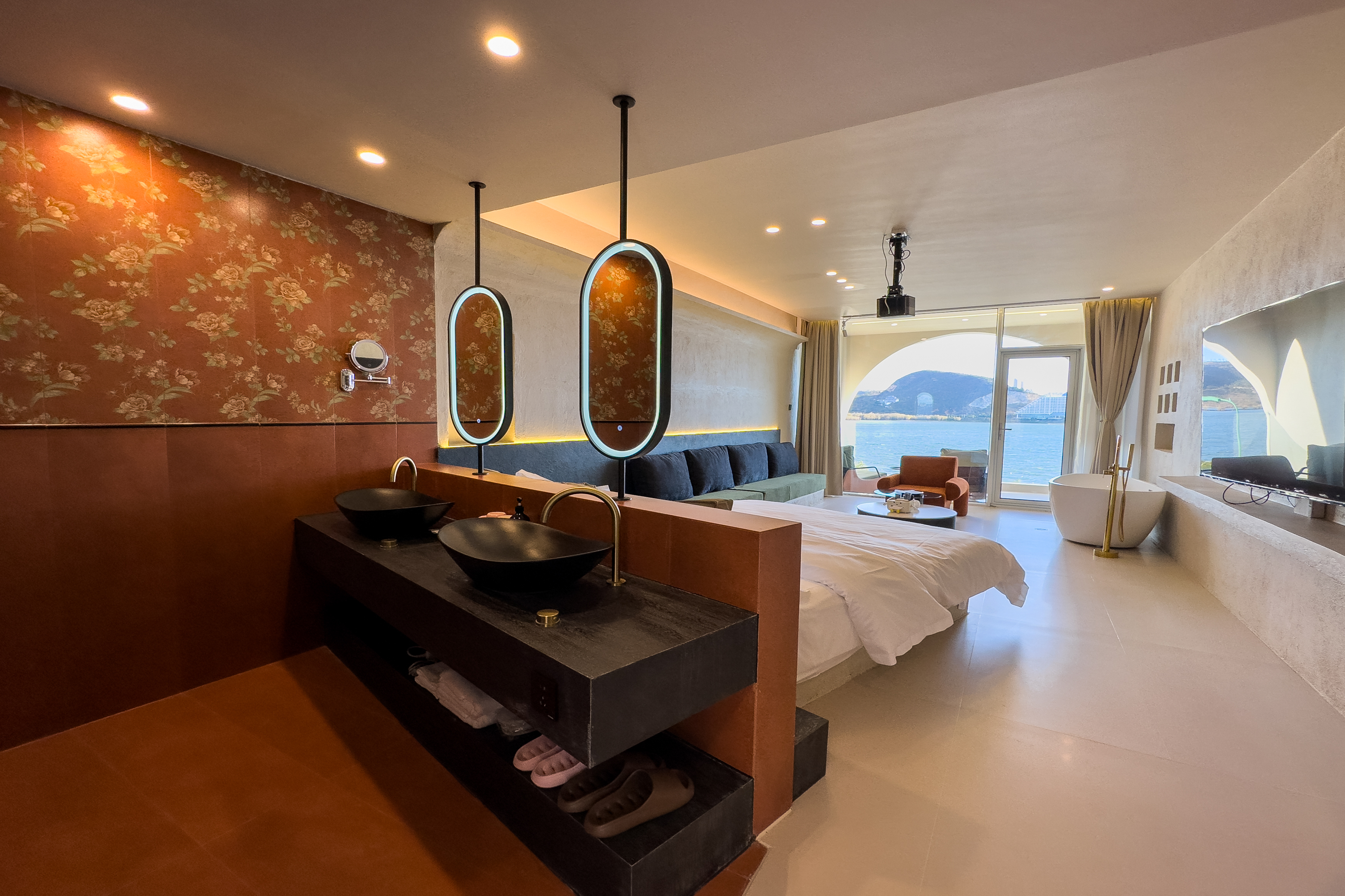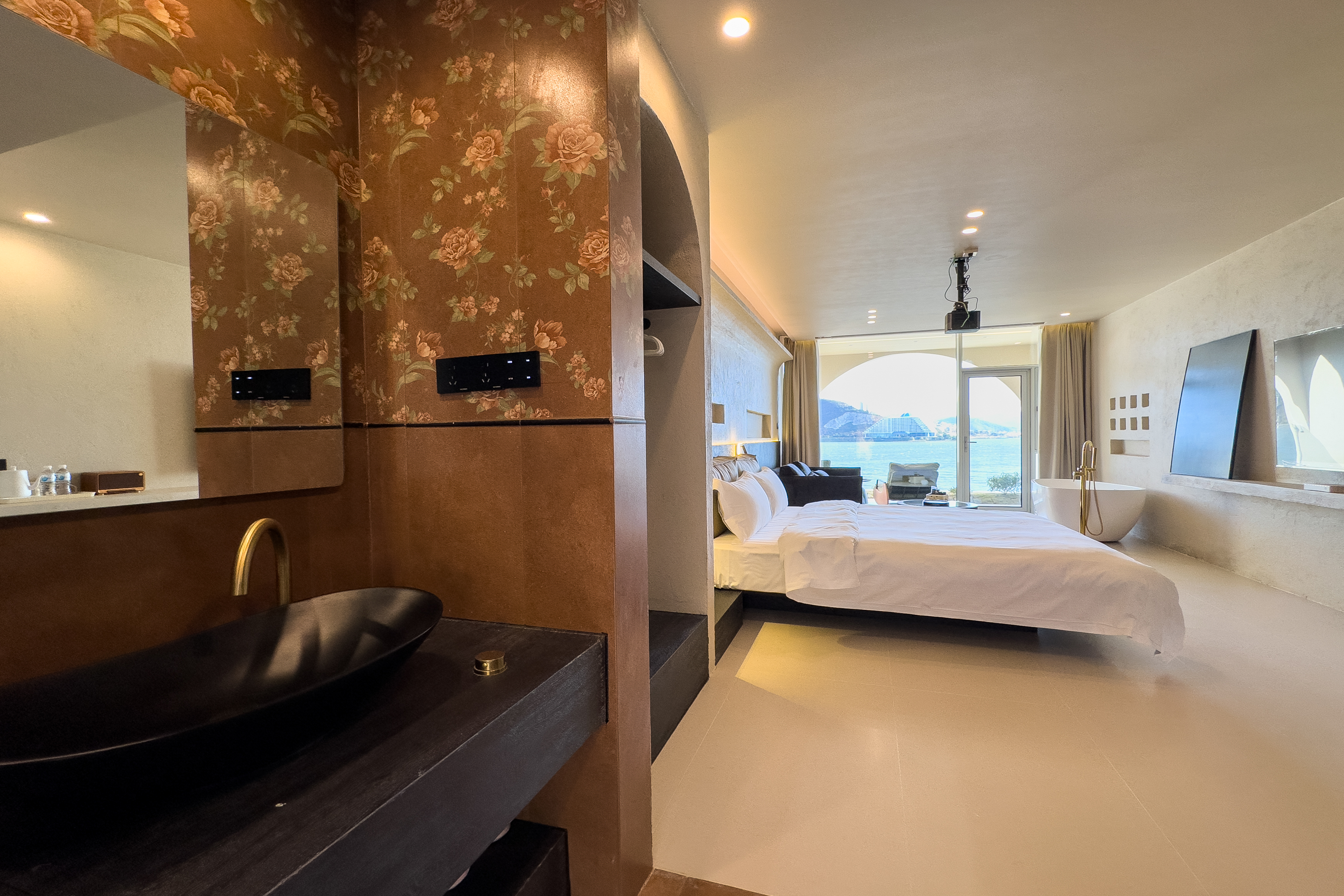 私享浴缸海景大床房Ⅱ(私人浴缸+觀景陽台+大屏投影+歐路莎智能衞浴+美國席夢思床墊+大屏電視+復古音響)