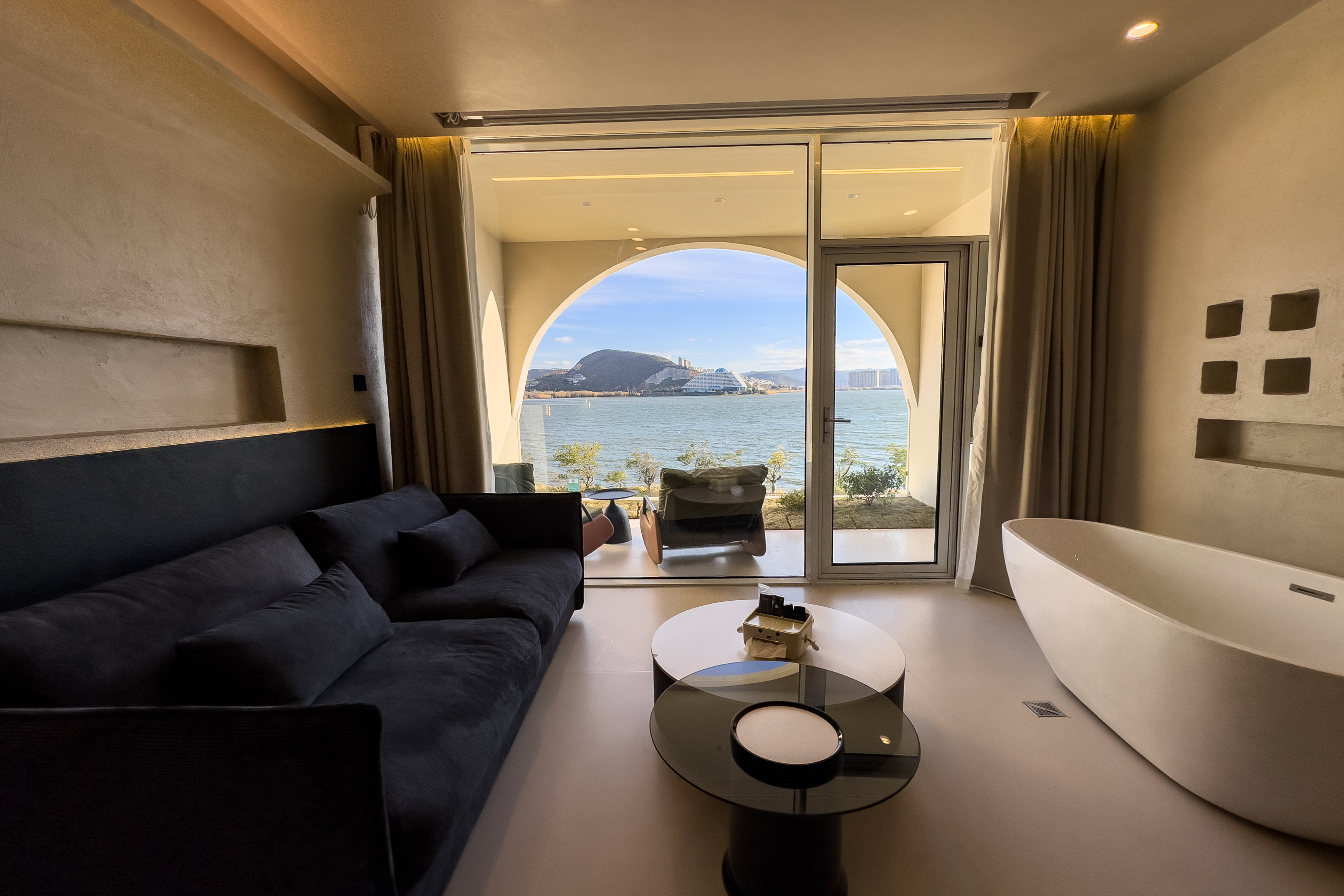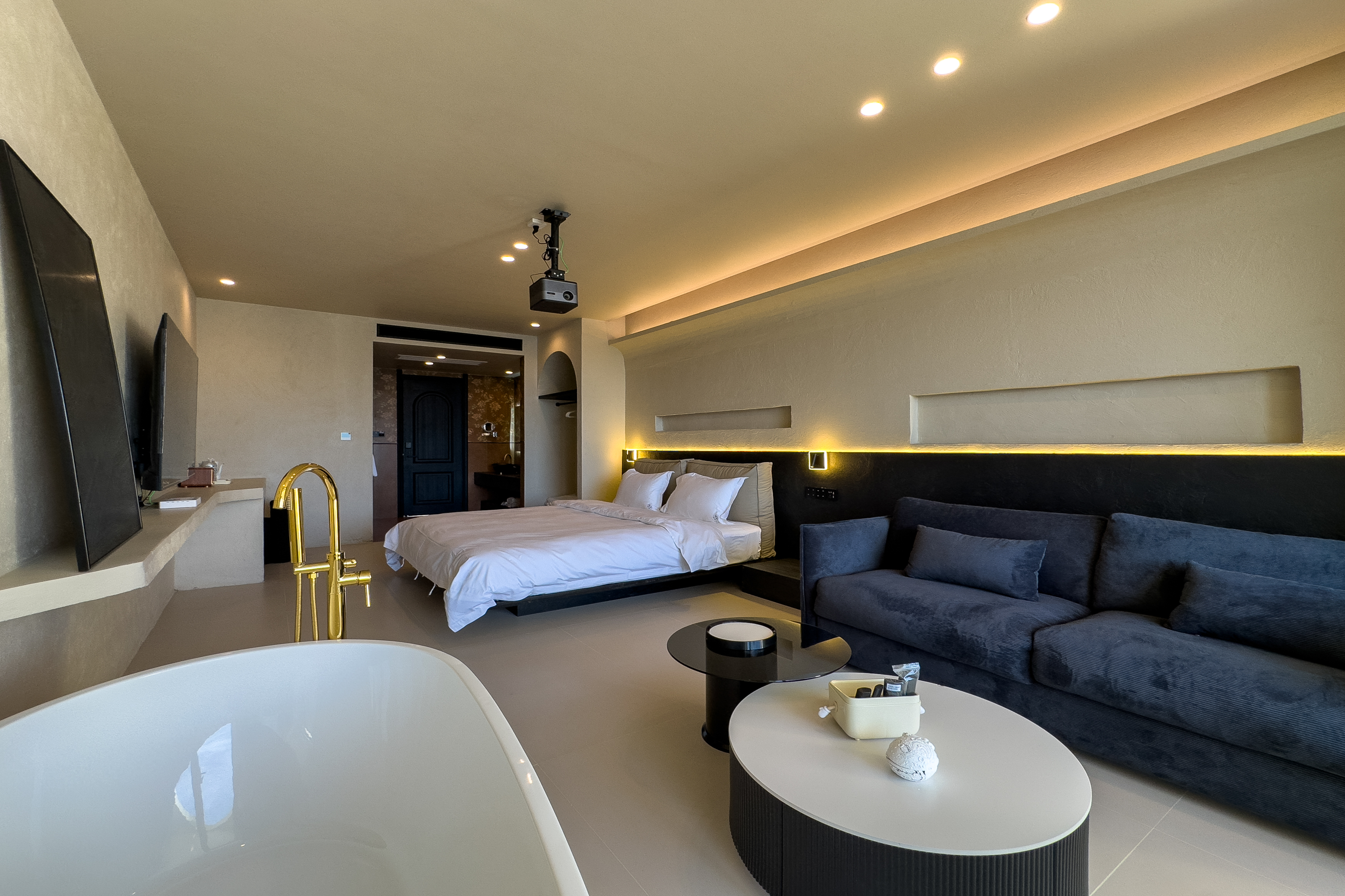 私享浴缸海景大床房(私人浴缸+觀景陽台+大屏投影+歐路莎智能衞浴+美國席夢思床墊+大屏電視+復古音響)