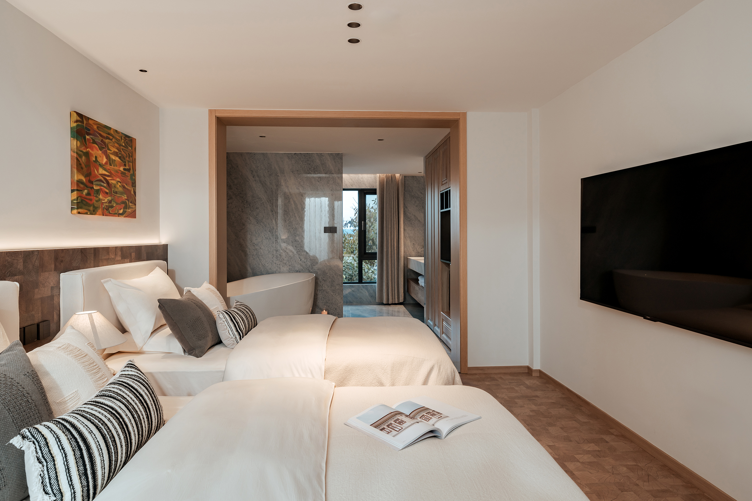 玉帶雲繞·豪華雙床房(德國Villeroyboch衞浴+瑜安悦眠記憶床墊記憶枕鵝絨被裸棉床品+深泡浴缸+Aqara智能客控+戴森吹風機+小冰櫃)